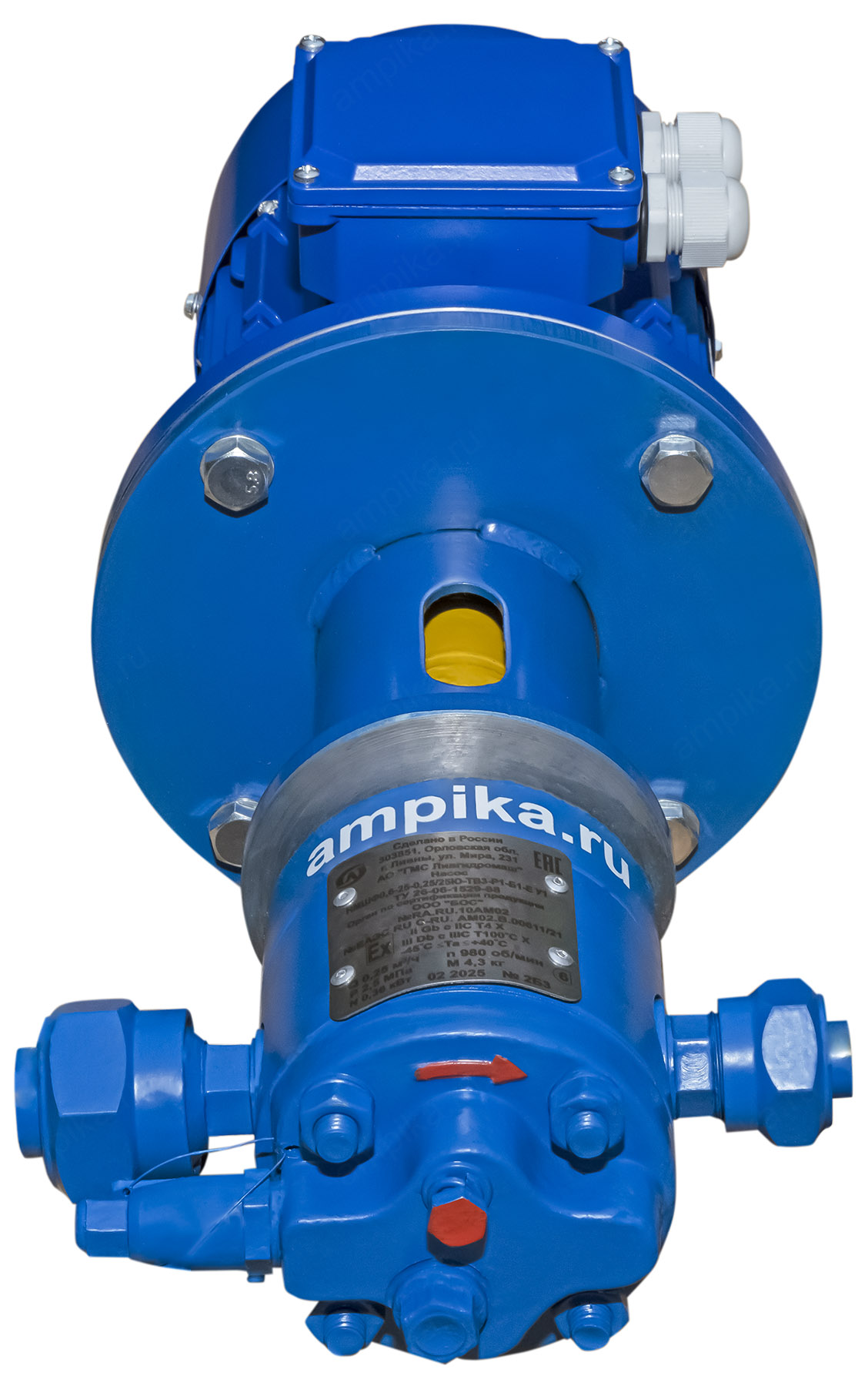 Шестерённый насос Ампика НМШФ 0,6/25-0,25/25Ю с 0,75х1000Небольшой промышленный насос для масла НМШФ 0,6/25-0,25/25Ю с 0,75х1000 представляет собой шестерённый моноблочный насос. Он предназначен для перекачивания масел, дизельного топлива, мазута подобных нефтепродуктов с вязкостью до 500 сСт при температуре до +90°С. Моноблочное исполнение делает его компактнее, чем насосы НМШ на раме. Байпасный (перепускной) клапан встроен в насосную часть. Высота всасывания - до 5 метров. Материал проточной части обозначается буквой в марке насоса: "Ю" - алюминий ("Б" - бронза). Уплотнение вала - одинарное торцевое. Электродвигатель трёхфазный общепромышленный, на 380 вольт. Возможна комплектация насосов НМШФ электродвигателями во взрывозащищённом исполнении по заказу. Другие модели этого типа