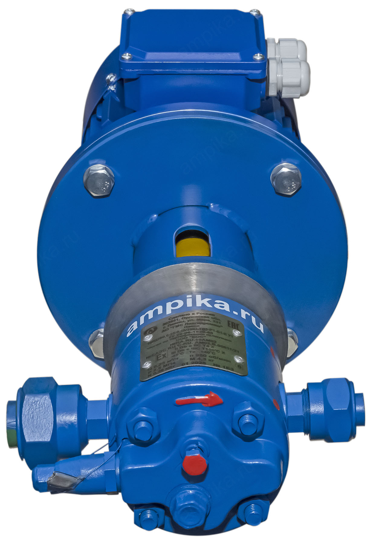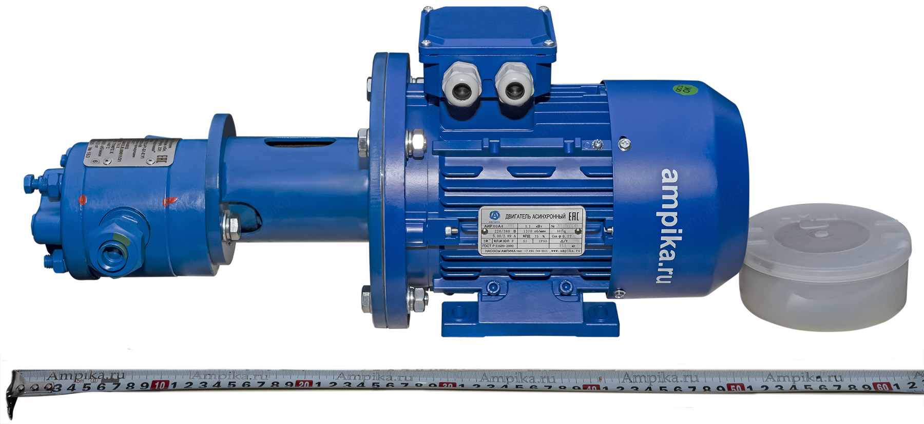Шестерённый насос Ампика НМШФ 0,6/25-0,4/25Ю c 1,1x1500Отечественный промышленный насос для масла НМШФ 0,6/25-0,4/25Ю c 1,1x1500 представляет собой шестерённый моноблочный насос. Он предназначен для перекачивания масел, дизельного топлива, мазута подобных нефтепродуктов с вязкостью до 500 сСт при температуре до +90°С. Моноблочное исполнение делает его компактнее, чем насосы НМШ на раме. Байпасный (перепускной) клапан встроен в насосную часть. Высота всасывания - до 5 метров. Материал проточной части обозначается буквой в марке насоса: "Ю" - алюминий ("Б" - бронза). Уплотнение вала - одинарное торцевое. Электродвигатель трёхфазный общепромышленный, на 380 вольт. Возможна комплектация насосов НМШФ электродвигателями во взрывозащищённом исполнении по заказу. В комплекте по советской традиции идёт набор ЗИП (запчасти и принадлежности), содержащий бронзовые втулки подшипников скольжения валов и прокладки корпуса. Другие модели этого типа