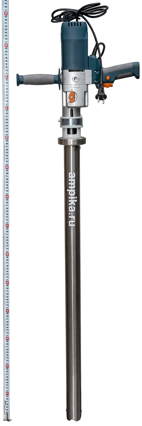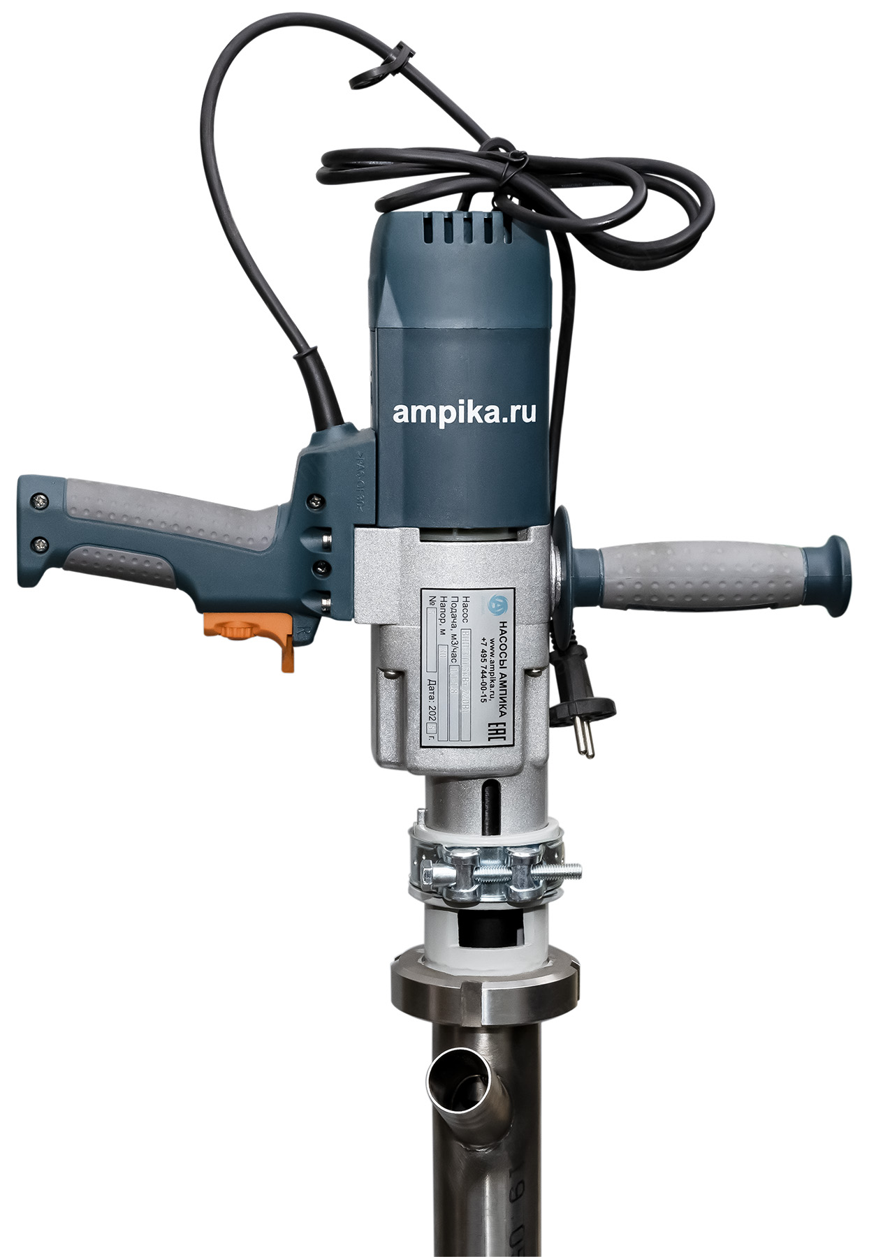 Винтовой полупогружной насос Ампика ВНП-3 (1,3 кВт_220В)Лёгкий электрический полупогружной винтовой насос с однофазным питанием ВНП-3 (1,3 кВт_220В) предназначен для выкачивания продуктов с вязкостью до 10000 мПа*с из бочек 200 л, 60 л, фляг (глубина погружения - до 1000 мм). Насос может перекачивать такие жидкости как глицерин, латекс, жидкое мыло, шампуни, гликоли, водоэмульсионные краски, лаки на водной основе, пластичные смазки, индустриальное масло, дизельное топливо, жидкое стекло, клеи на водной основе, эпоксидные смолы и подобные, химически не агрессивные к материалам проточной части жидкие вещества средней вязкости. В стандартном исполнении эта модель комплектуется статором из полиуретана и уплотнением вала из витона. ВНИМАНИЕ! Насос НЕ ПРЕДНАЗНАЧЕН!!! для полиэфирных смол, отвердителей, кислот, щелочей, растворителей!!! Уточняйте возможность его работы с каждой конкретной жидкостью у специалистов по подбору насосов Ампики!!! При этом надо учитывать не только перекачиваемую, но и промывочную жидкость. Универсальный винтовой насос на 220 вольт для выкачивания вязких веществ из бочек ВНП-3 подаёт в среднем 1,5 куба продукта в час с напором 30 метров. В качестве привода использован лёгкий и удобный в обращении электродвигатель от профессиональной дрели, позволяющий изменять скорость вращения ротора и подачу насоса в диапазоне от 1,1 до 1,8 м³/час. Помимо изменяемой скорости перекачивания, этот монофазный насос ещё и в 2 раза легче, чем аналогичный по параметрам производительности трёхфазный промышленный с асинхронным электродвигателем. Технические характеристики: • Размер пропускаемых частиц - до 3 мм, не более 10% по объёму. • Материал проточной части (погружной трубы) – нержавеющая сталь марки AISI 304. • Материал внутренних деталей (винт, торсион, наконечник вала э/д, фланец под торцевое уплотнение): сталь 40Х13. Винт закалённый. • Уплотнение вала торцевое, с парой трения из карбида кремния и эластомером из витона (фторкаучука). Возможна установка уплотнения из EPDM. • Материал обоймы: полиуретан (самый износостойкий материал). Также возможна установка обойм из: - пищевой резины 25-52-563 (NBR), - витона (фторкаучука), - износостойкой МБС резины 7-В-14. • Максимальная глубина погружения - 1 м (возможно изготовление с глубиной погружения до 2 м под заказ). • Наружный диаметр погружной части: 53 мм. • Выход насоса – штуцер под шланг Ду 32 мм. • Электродвигатель: однофазный, щёточный, от дрели, на 220 вольт, с возможностью регулировки оборотов. Режим работы периодический: 10-15 минут работа, затем перерыв до полного остывания электродвигателя. Другие модели этого типа
