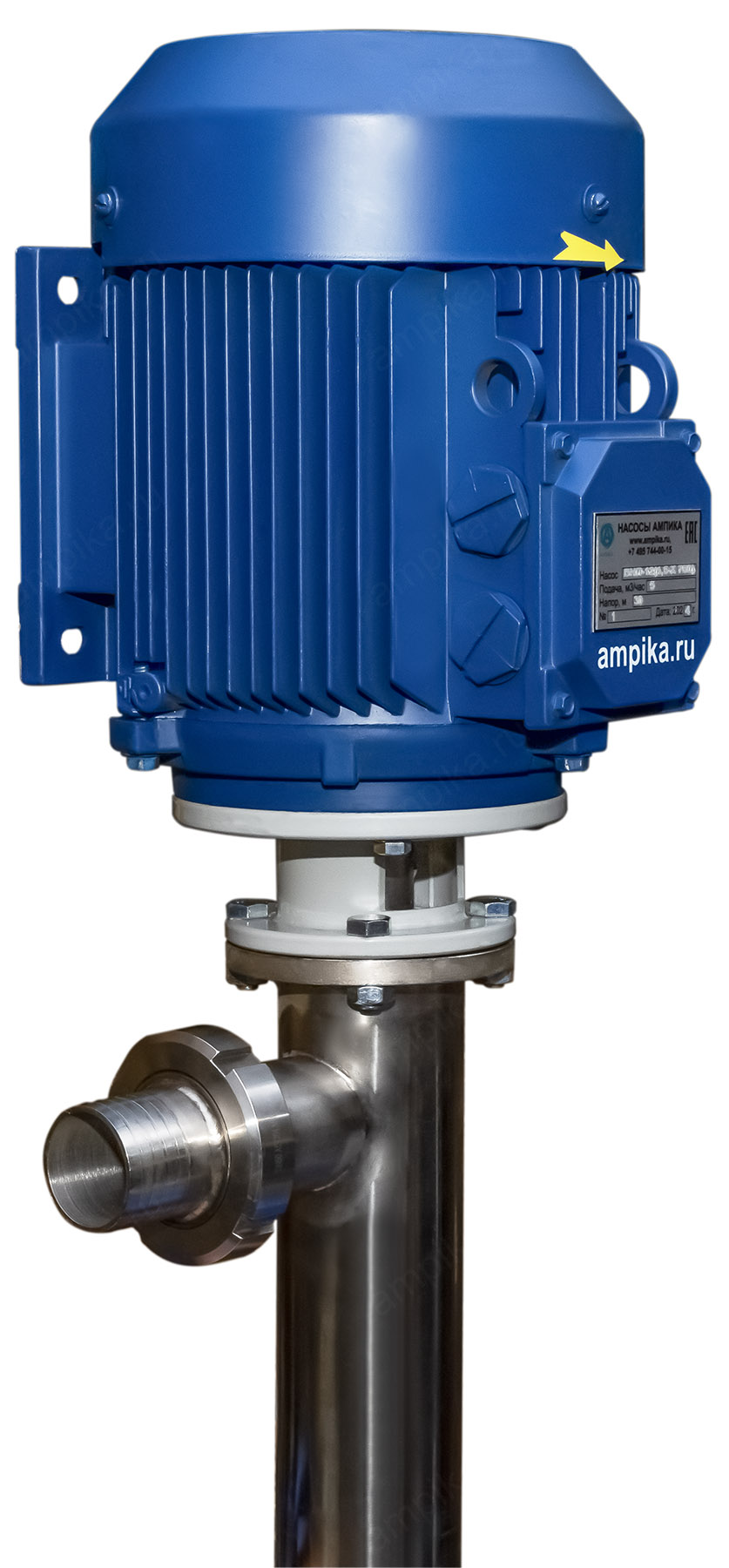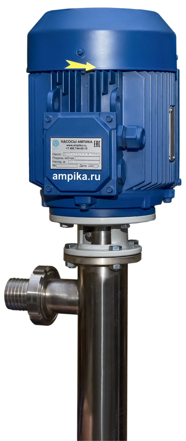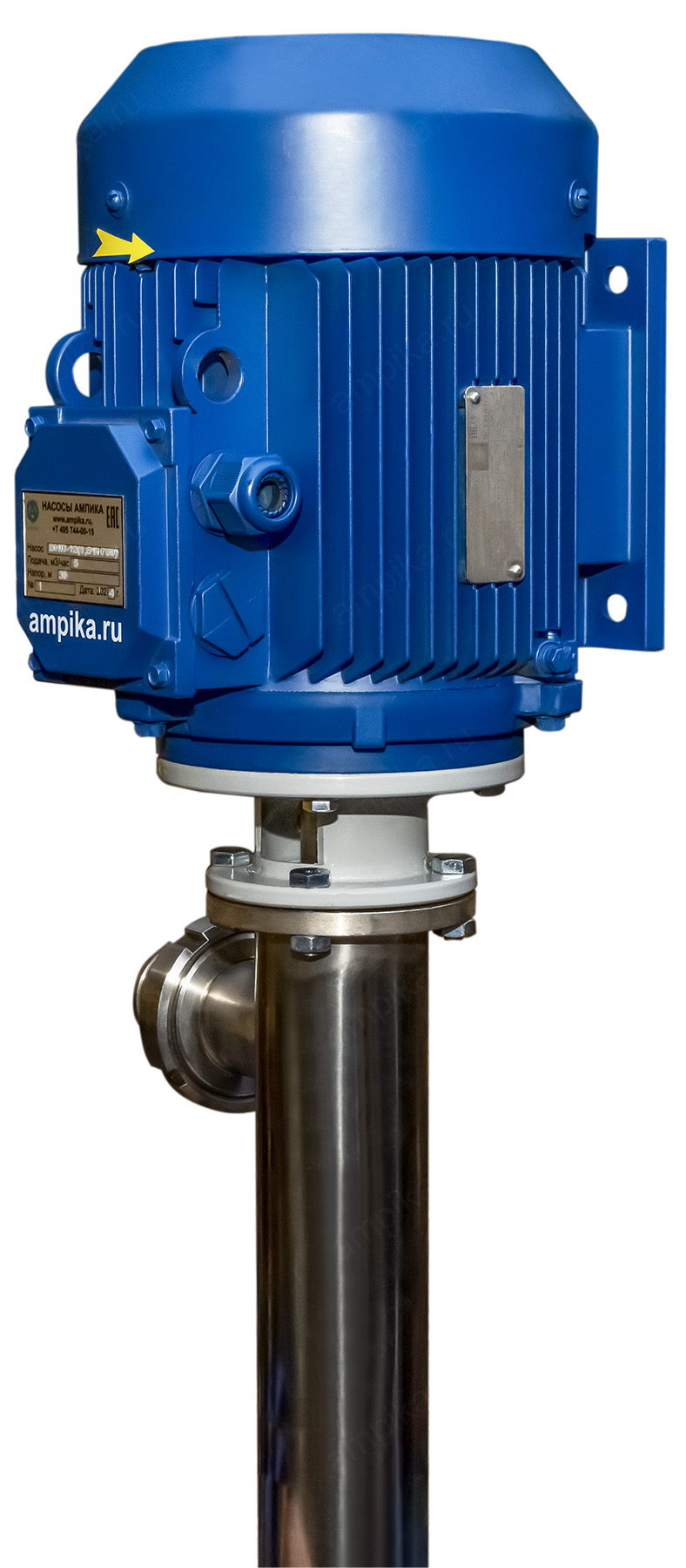 Винтовой полупогружной насос Ампика ВНП-12 (1,5х750)Промышленный электрический бочковой насос винтового принципа действия ВНП-12 (1,5х750) предназначен для выкачивания продуктов с вязкостью до 10000 мПа*с из бочек 200 л, 60 л, фляг (глубина погружения - до 1200 мм). Насос называется полупогружной потому, что верхняя часть (электродвигатель) всегда над ёмкостью. Прорези внизу трубы насосной части - для прохода жидкости к паре винт-обойма. Он может перекачивать такие жидкости как глицерин, латекс, жидкое мыло, шампуни, гликоли, водоэмульсионные краски, лаки на водной основе, пластичные смазки, индустриальное масло, дизельное топливо, жидкое стекло, клеи на водной основе, эпоксидные смолы и подобные, химически не агрессивные к материалам проточной части жидкие вещества средней вязкости. В стандартном исполнении эта модель комплектуется статором из полиуретана и уплотнением вала из витона. ВНИМАНИЕ! Насос НЕ ПРЕДНАЗНАЧЕН!!! для полиэфирных смол, отвердителей, кислот, щелочей, растворителей!!! Уточняйте возможность его работы с каждой конкретной жидкостью у специалистов по подбору насосов Ампики!!! При этом надо учитывать не только перекачиваемую, но и промывочную жидкость. Универсальный бочковой винтовой насос для выкачивания вязких веществ из бочек марки ВНП-12 подаёт до 5 кубометров продукта в час с напором 30 метров (то есть создаёт давление 3 атмосферы). Данные предоставлены для жидкостей, схожих по своим характеристикам с водой. Производительность напрямую связана с вязкостью жидкости, длиной и диаметром трубопровода. Технические характеристики: • Размер пропускаемых частиц - до 5 мм, не более 10% по объёму. • Материал проточной части (погружной трубы) – нержавеющая сталь марки AISI 304. • Материал внутренних деталей (винт, торсион, наконечник вала э/д, фланец под торцевое уплотнение): сталь 40Х13. Винт закалённый. • Уплотнение вала торцевое, с парой трения из карбида кремния и эластомером из витона (фторкаучука). Возможна установка уплотнения из EPDM. • Материал обоймы: полиуретан (самый износостойкий материал). Также возможна установка обойм из: - пищевой резины 25-52-563 (NBR), - витона (фторкаучука), - износостойкой МБС резины 7-В-14. • Максимальная глубина погружения - 1,2 м (возможно изготовление с глубиной погружения до 2 м под заказ). • Наружный диаметр погружной части: 76 мм. • Выход насоса – молочная муфта Ду50 DIN 11851 со штуцером под шланг Ду 50 мм. • Электродвигатель: общепромышленный, трёхфазный, асинхронный, на 380 вольт, IP54, с возможностью постоянной работы. Возможна комплектация электродвигателем во взрывозащищённом исполнении. Другие модели этого типа