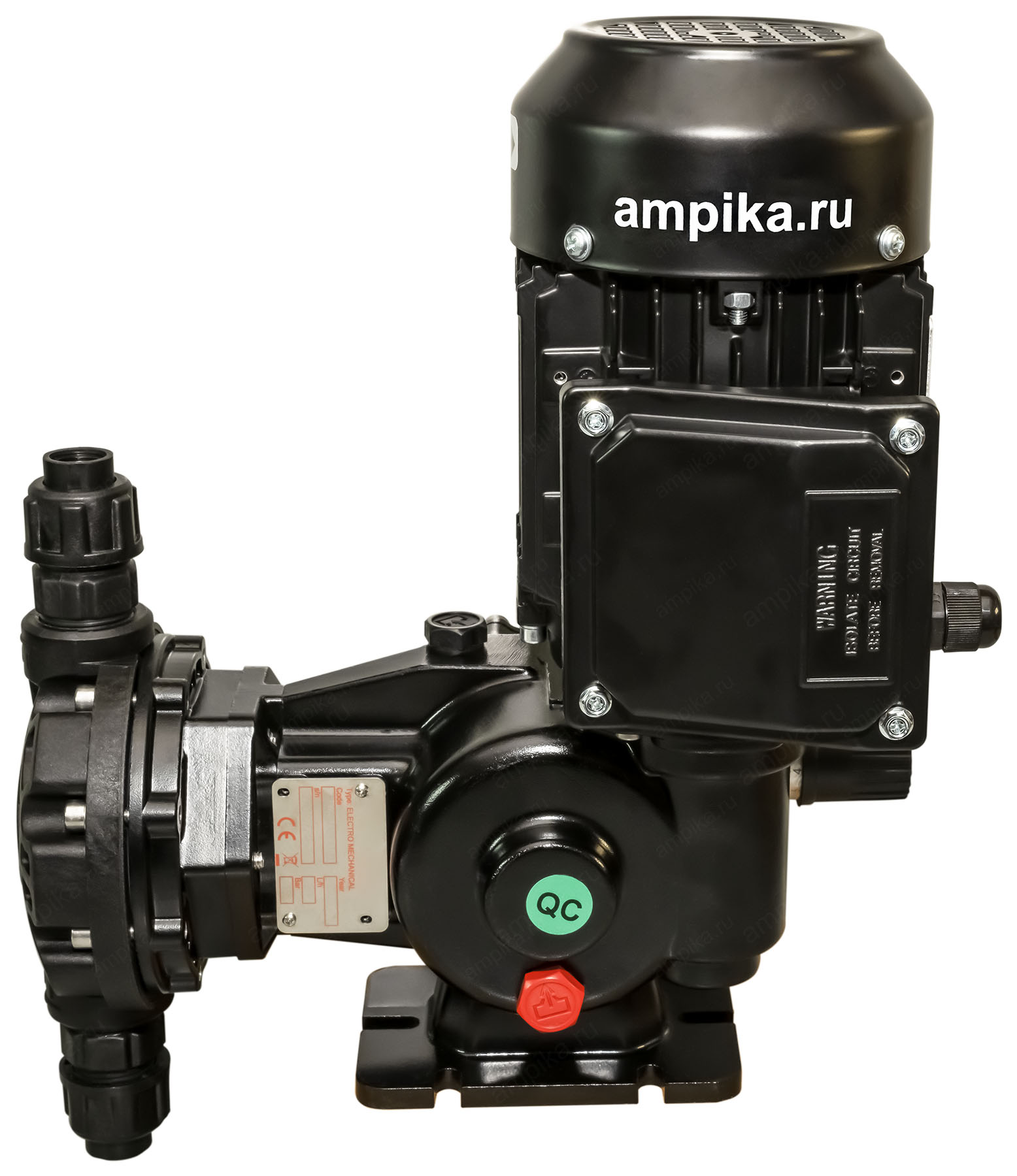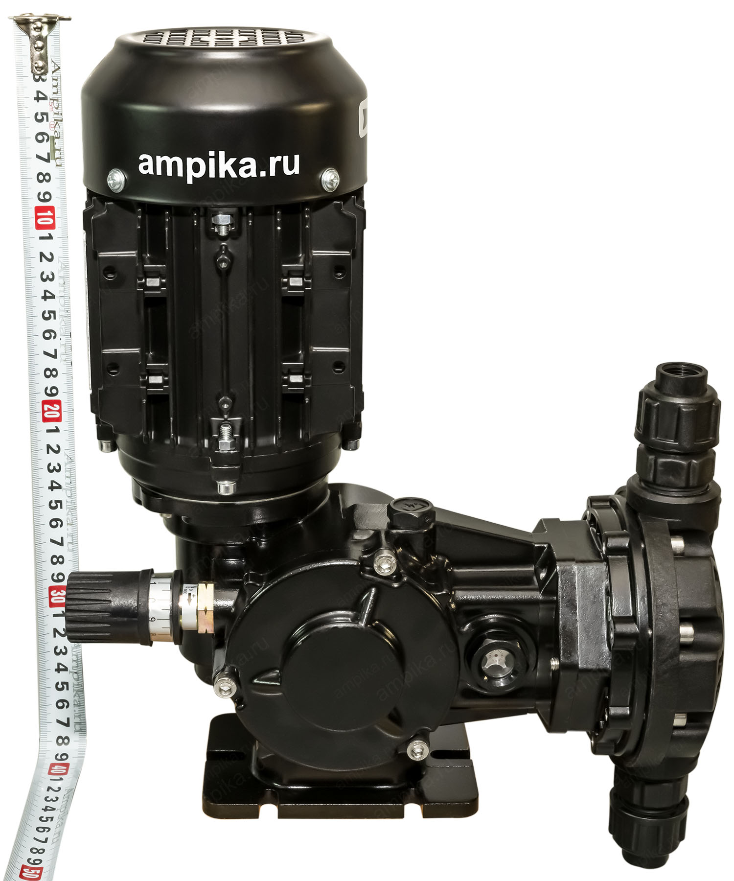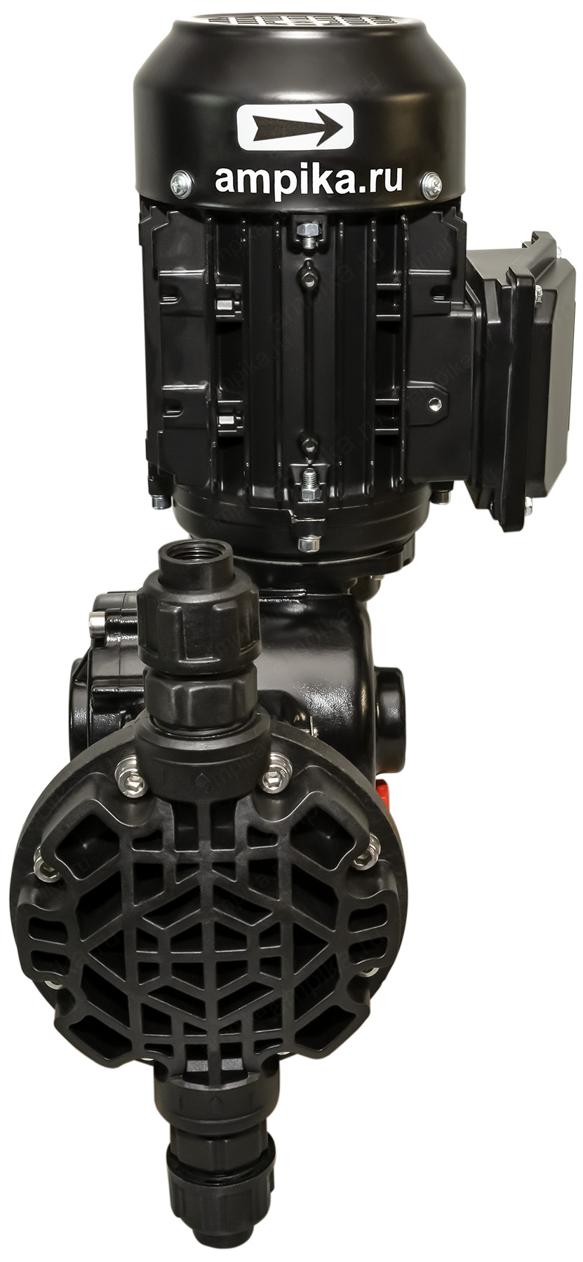 Мембранный дозирующий насос Injecta TM02094A_PP с э/д 0,18 кВтНебольшой тихоходный промышленный дозировщик TM02094A_PP - это мембранный насос с корпусом из полипропилена и регулировкой подачи "на ходу" в диапазоне от 10% до максимума (от 0,03 до 0,33 л/мин.). Рабочая температура - до +45 ºC. Материалы проточной части: - головка насоса - полипропилен, - мембрана - тефлон (PTFE), - уплотнительные кольца - FPM, - клапаны - керамика, - сёдла клапанов - тефлон (PTFE). Расшифровка обозначения марки насоса TM02094A_PP: - "TM" - мембранный насос, - "02" - длина хода мембраны в мм, - "094" - диаметр мембраны в мм, - "A" - число ходов мембраны: 58 ходов в минуту, - "PP" - материал корпуса: полипропилен. Электродвигатель: Стандартное исполнение - трёхфазный общепромышленный, на 380 вольт, IP55. Возможна поставка насоса с однофазным электродвигателем на 220 вольт (+15000 рублей к цене), а также с электродвигателем во взрывозащищённом исполнении. В таблице характеристик насоса указаны его вес и размеры в упаковочной коробке. Параметры голого насоса: • длина: 290 мм, • ширина: 210 мм, • высота: 390 мм, • вес: 10 кг. Паспорт (инструкция по эксплуатации дозировочного насоса) вложен в его упаковочную коробку. В комплекте также идёт бутылочка трансмиссионного масла для редуктора. Для управления насосом по сигналу 4-20 mA, можно использовать 2 варианта: 1) Частотный преобразователь. С его помощью можно изменять подачу от 40% до 100% с приемлемой точностью: 1-3%. При снижении подачи частотником ниже 40%, точность дозирования начинает сильно падать, и может составлять 10-20% на подачах в диапазоне 5-20%. Также, при снижении оборотов электродвигателя ниже 600 мин⁻¹, встроенный вентилятор насоса не будет эффективно охлаждать мотор. В этом случае потребуется установка дополнительного внешнего вентилятора (можно приобрести у нас). Тем не менее, это достаточно распространённый вид управления подачей, т.к. это самый дешёвый вариант, да и не всегда требуется снижать подачу ниже 20% от номинала. 2) Специальный блок управления дозированием, который позволяет изменять подачу в диапазоне от 5 до 100%, обеспечивая точность дозирования 1-3%. Другие модели этого типа
