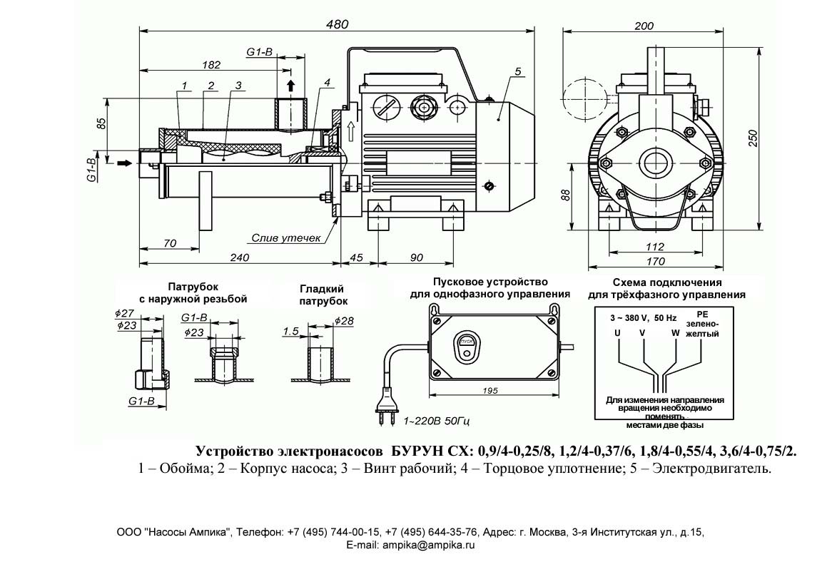 Цена с НДС 76700 ₽ насосы винтовые пищевые Назначение Бурун® серии СХ – переносной самовсасывающий винтовой насос для перекачивания воды, пищевых продуктов (тесто, сметана, масла, пищевые кремы и наполнители, соусы, джемы, мёд, варенье, кетчуп и мн. др.), где нежелательно их перемешивание и вспенивание. Конструкция данной серии электронасосов ориентирована для такого использования, когда необходимо обеспечить компактность, легкость в установке и простоту обслуживания. Рабочая температура жидкости при работе в постоянном режиме до +35С, кратковременно (не более 20 минут в час) до +70С. При установке специальной обоймы возможна кратковременная работа до +150С. Высота самовсасывания - до 5 метров. Максимальная вязкость: - до 1000 сСт у насоса Бурун СХ 3,6/4-0,75/2 во всех модификациях; Материалы: Обойма - химстойкая резина (EPDM). Винт, проточная часть - нержавеющая сталь 12Х18Н10Т. Уплотнение вала торцевое: карбид кремния - витон. Преимущества пищевых насосов серии БУРУН СХ : - равномерный не пульсирующий поток перекачиваемой жидкости. Благодаря этому работа винтовых электронасосов не приводит к разрушению структуры продукта и вспениванию: высокая способность к самовсасыванию, - простота конструкции, обеспечивающая удобство обслуживания насоса: бурун состоит из трех основных частей: нержавеющего винта, обоймы и торцевого уплотнения, - высокое давление насоса при небольшом габарите обеспечивается конструкцией обоймы с саморегулирующим зазором. Зазор между рабочей поверхностью винта и обоймы остается постоянным при увеличении давления, - возможность использования в качестве дозатора (при установке частотного преобразователя). Условное обозначение Бурун СХ 3,6/4-0,75/2-А: - "Бурун СХ" - марка, - "3,6" - МАКСИМАЛЬНАЯ производительность насоса в м3/час, - "4" - МАКСИМАЛЬНОЕ давление насоса в атм, - "0,75" - мощность э/д в кВт, - "2" - количество полюсов э/д, показывает частоту вращения вала э/д ("2" - на 2900 об/мин). - "А" - исполнение насоса по эластомеру (материал статора) - химстойкая резина (EPDM). На видео со склада Ампики в Москве - экспериментальная перекачка крема. ВНИМАНИЕ! В таблице указаны МАКСИМАЛЬНЫЕ параметры подачи при нулевом напоре. Для подбора характеристик насосов следует пользоваться диаграммой работы насосов. Скачать ее можно по ссылке под таблицей. Другие модели этого типа