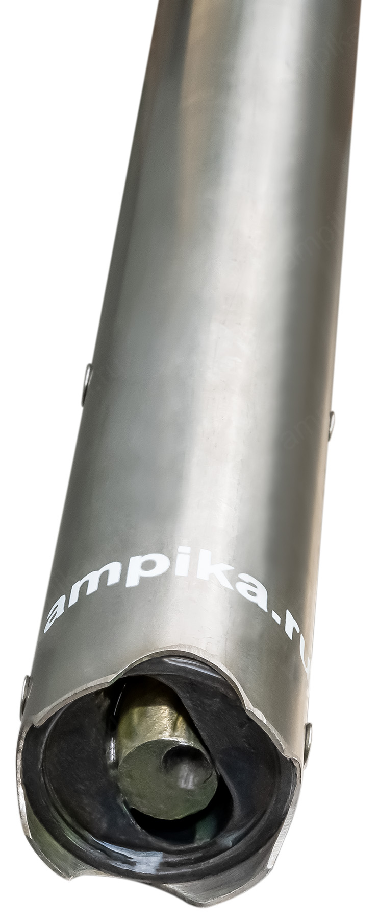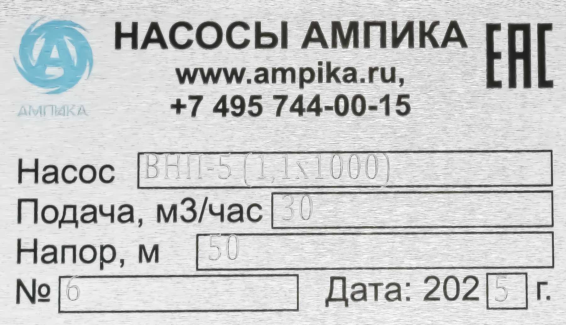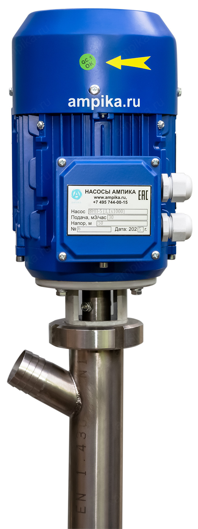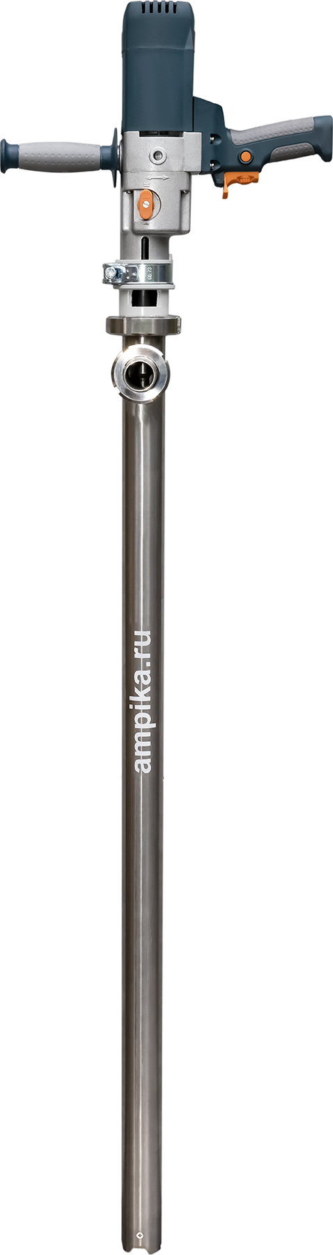 Винтовой полупогружной насос Ампика ВНП-5 (1,1х1000)Промышленный бочковой полупогружной насос ВНП-5 (1,1х1000) предназначен для выкачивания продуктов с вязкостью до 10000 мПа*с из бочек 200 л, 60 л, фляг. Насос называется полупогружным потому, что верхняя часть (электродвигатель) всегда над ёмкостью. Насос может использоваться например перекачки для таких жидкостей, как краски на водной основе, лаки на водной основе, трансмиссионные, моторные и гидравлические масла, дизельное топливо, мазут, клеи на водной основе, этиленгликоль, пропиленгликоль, жидкие эпоксидные смолы и подобных жидкостей, не агрессивных к материалам насоса. В стандартном исполнении эта модель комплектуется статором из полиуретана и уплотнением вала из витона. Размер пропускаемых частиц - до 3 мм, не более 10% по объёму. В качестве привода устанавливается трёхфазный электромотор с оборотами выходного вала 910 мин⁻¹. Это позволяет перекачивать жидкости средней вязкости, например трансмиссионные масла. Рекомендуем запитывать насос через частотный преобразователь, т.к. он позволяет подстраивать обороты ротора в зависимости от вязкости жидкости, которая может меняться. Следует помнить, что чем больше будет вязкость (максимальная - 10000 сПз), тем ниже будет производительность насоса (подача в таблице указана на воде). ВНИМАНИЕ! Этот насос НЕ ПРЕДНАЗНАЧЕН для полиэфирных смол, отвердителей, кислот, щелочей, растворителей!!! Уточняйте возможность работы насоса с конкретной жидкостью у поставщика!!! Технические характеристики: 1) Принцип действия - винтовой (героторный насос). 2) Глубина погружения - 1000 мм (возможно изготовление с глубиной погружения до 2000 мм под заказ). 3) Материал проточной части (трубы) – нержавеющая сталь марки AISI 304. 4) Материалы внутренних деталей (винт, торсион, наконечник вала двигателя, фланец под торцевое уплотнение): 40Х13 (винт закалённый). 5) Уплотнение вала торцевое, с парой трения из карбида кремния и эластомером из витона (фторкаучук). Возможна установка уплотнения из EPDM. 6) Материал обоймы: полиуретан (самый износостойкий материал). Возможна установка обойм из: - пищевой резины 25-52-563 (NBR), - витона (фторкаучука), - износостойкой МБС резины 7-В-14. 7) Диаметр погружной части: 53 мм. 8) Выход насоса – штуцер под шланг 38 мм (возможна установка молочной муфты Ду38 DIN 11851 под заказ). 9) Электродвигатель: общепромышленный, на 380 вольт, 1,1 кВт, IP54, с возможностью постоянной работы. Возможна комплектация электродвигателем во взрывозащищённом исполнении. Другие модели этого типа