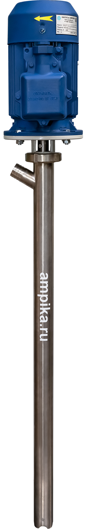 Винтовой полупогружной насос Ампика ВНП-5 (1,5х1500)Назначение: Полупогружные винтовые (героторные) насосы серии ВНП предназначены для выкачивания продуктов с вязкостью до 10000 мПа*с из бочек 200 л, 60 л, фляг (глубина погружения 1000 мм) и из еврокубов (глубина погружения 1200 мм) с горловиной не менее 53 мм. Выпускаются в двух исполнениях: промышленном и пищевом. Промышленные насосы предназначены для таких жидкостей как краски на водной основе, лаки на водной основе, масла, дизельное топливо, клеи на водной основе, эпоксидные смолы и т.п. жидкости. ВНИМАНИЕ! Насосы НЕ ПРЕДНАЗНАЧЕНЫ!!! для полиэфирных смол, отвердителей, кислот, растворителей!!! Насосы в пищевом исполнении могут применяться для таких продуктов как: пищевые масла, концентраты соков, майонез, сметана, мед, некоторые щелочные жидкости и т.п. Насосы с мотор-редуктором способны перекачивать жидкости с вязкостью до 30000 мПа*с. В стандартном исполнении обороты винта 490 об/мин. Под заказ возможно изготовление насосов с более низкими оборотами. Насосы в кислотостойком исполнении (с проточной частью, винтом и торсионом из 12Х18Н10Т, обоймой и уплотнением из FKM (витона), исполнение AISI304, FKM могут перекачивать некоторые (не любые!!!) кислотные жидкости с PH до 3, такие как: азотная кислота до 50%, ортофосфорная кислота до 70%, масла, топливо и т.п. жидкости, не вступающие в реакцию с материалами насоса. ВНИМАНИЕ! Насос в таком исполнении не может применяться для перекачки растворителей, щелочей, хлорсодержащих жидкостей. Уточняйте возможность работы насоса с конкретной жидкостью у поставщика!!! Размер частиц: до 1 мм для ВНП-1, до 3 мм для ВНП-3, ВНП-5 (до 10% по объему). Технические характеристики: 1) глубина погружения: - 1000 мм для промышленного исполнения, - 1200 мм для пищевого исполнения, кислотостойкого исполнения (AISI304, FKM) и насосов с мотор-редуктором. Возможно изготовление с глубиной погружения до 2000 мм под заказ. 2) Материал проточной части (трубы) – AISI 304, 3) Материалы внутренних деталей (винт, торсион, наконечник вала э/д, фланец под торцевое уплотнение): - для промышленного исполнения: 40Х13. Винт закаленный, - для пищевого и кислотостойкого исполнения: AISI304, 12Х18Н10Т, 4) Уплотнение вала торцевое, с парой из карбида кремния. Эластомеры: - для промышленного и кислотостойкого исполнения: витон (фторкаучук), - для пищевого исполнения:EPDM, 5) Материал обоймы: - для промышленного исполнения: полиуретан (самый износостойкий материал). Возможна установка черной МБС резины. - для пищевого исполнения: 25-52-563 (МБС), - для кислотостойкого исполнения: FKM (витон). 6) Диаметр погружной части: 53 мм, 7) выход насоса – штуцер под шланг (размер смотрите в таблице). Для насосов с мотор-редуктором (ВНП-МР) и насосов в пищевом исполнении дополнительно устанавливается молочная муфта для возможности быстрого снятия/установки шланга. 8) Электродвигатель: по умолчанию асинхронный, 380В, IP54, с возможностью постоянной работы. В моделях на 220В (прописано в маркировке) – привод от дрели. Возможна периодическая работы. Возможна комплектация электродвигателем во взрывозащищенном исполнении (только на 380В). *Насосы ВНП-3 могут изготавливаться с увеличенным давлением нагнетания (см. таблицу). Аналоги насосов типа ОНВБ: - ВНП-3 (1,1х1000) - аналог ОНВБ 1-01 - ВНП-5 (1,1х1000) - аналог ОНВБ 3-01 Для просмотра запчастей, нужно зайти в конкретную модель насоса и посмотреть вкладку "запчасти"