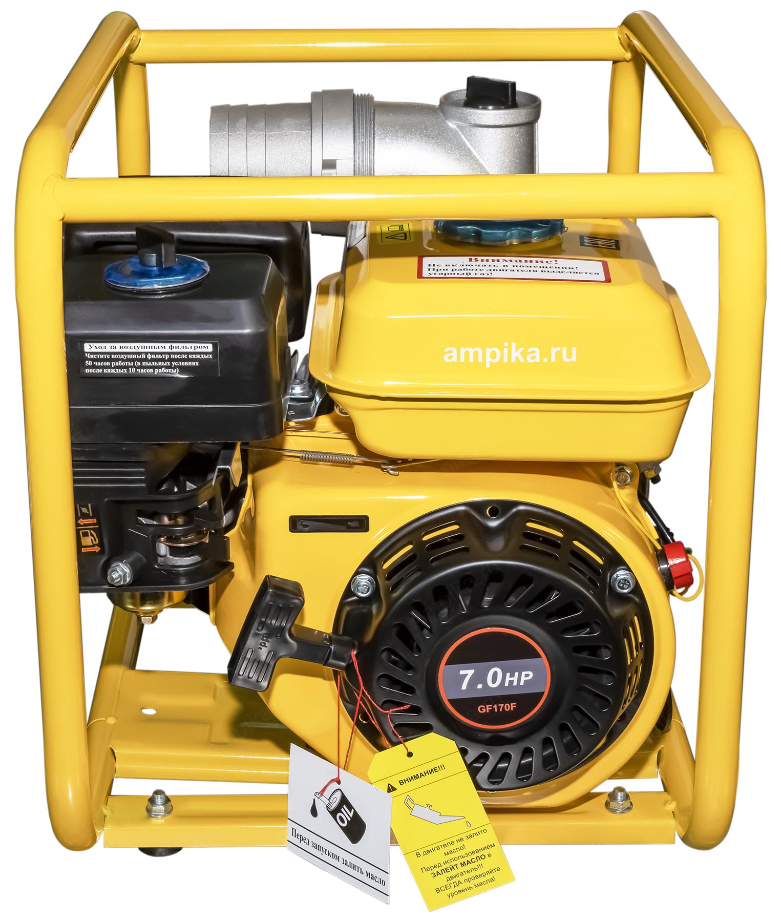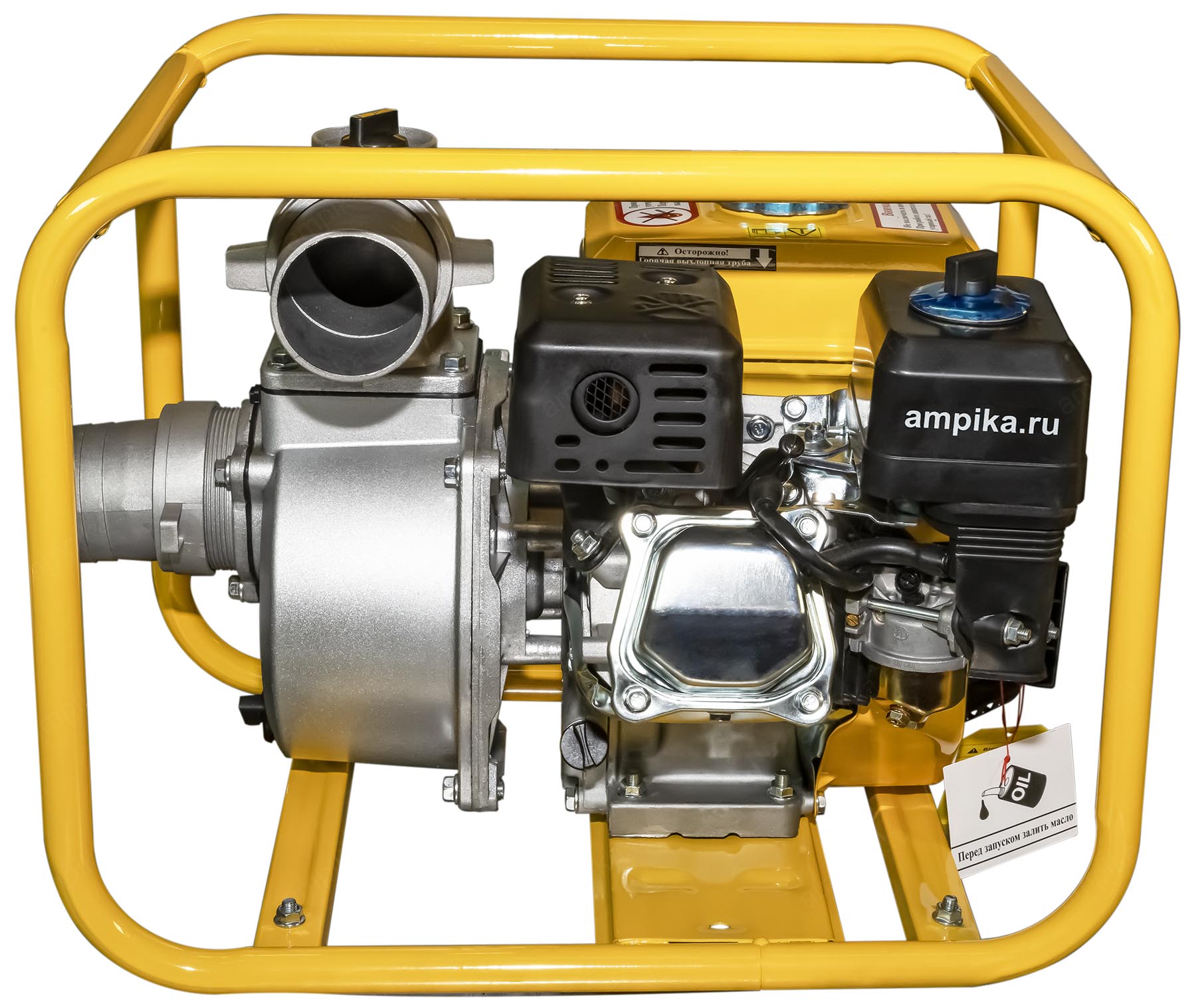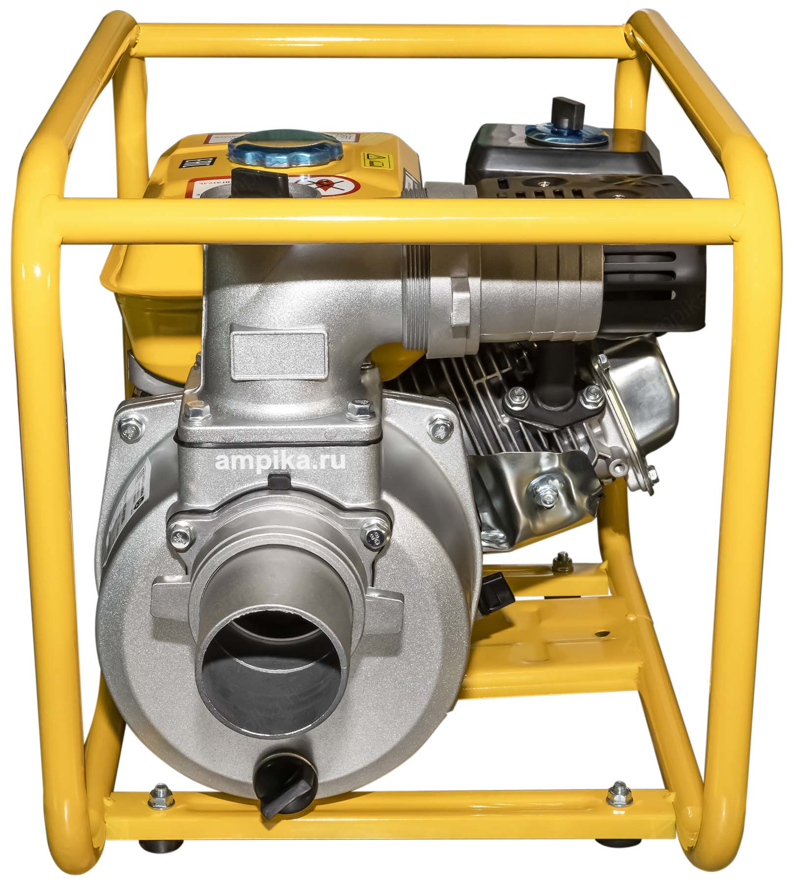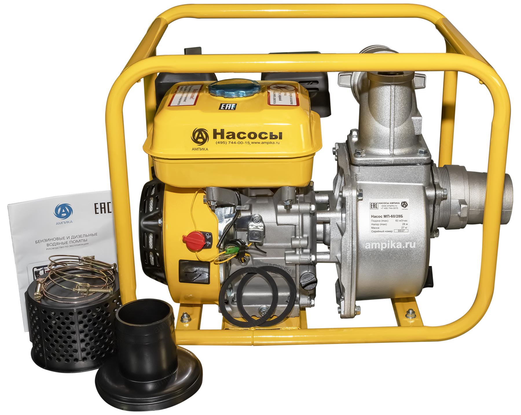 Мотопомпа бензиновая МП-60/28БЛёгкая и высокопроизводительная переносная бензиновая мотопомпа МП 60/28 Б при весе всего 20 кг перекачивает до кубометра воды за минуту. Она предназначена для перекачивания чистых и слегка загрязненных дренажных вод с концентрацией твёрдых частиц до 5-10% и размером не более 10 мм. В двигатель встроен датчик уровня масла - без достаточного уровня масла в картере мотора блок управления не даёт искры, помпа не заводится. Масло - любое моторное четырёхтактное, согласно температуре окружающей среды. В средней полосе рекомендуется SAE 10W30. Насос является самовсасывающим, т.е. для того, чтобы он начал работать (всасывать жидкость), нет необходимости заполнения водой всей всасывающей магистрали, достаточно залить жидкостью только корпус насоса перед его запуском (через отверстие сверху напорного патрубка). После начала работы мотопомпа сама через какое-то время высосет весь воздух из заборного шланга и начнёт качать уже непосредственно воду. Высота самовсасывания - до 7 метров. Расшифровка маркировки МП-60/28Б : - МП - мотопомпа (моноблочный насос с двигателем внутреннего сгорания); - 60 - максимальная подача в м³/час (1000 литров в минуту); - 28 - максимальный напор в метрах (максимальное давление насоса - 2,8 атм.); - Б - бензиновая (бензин АИ-92). Комплект поставки: - насос в сборе с бензиновым четырёхтактным двигателем внутри переносной рамы; - штуцеры под шланг, всасывающий фильтр и хомуты; - свечной ключ; - инструкция по эксплуатации. Техническое описание: - тип двигателя - бензиновый четырёхтактный одноцилиндровый верхнеклапанный; - питание топливом - карбюратор; - стартёр - ручной; - тип насоса - центробежный самовсасывающий; - уплотнение вала - торцевое: керамика-NBR; - материал корпуса проточной части - алюминий; - рабочее колесо - из чугуна. В таблице характеристик мотопомпы указаны её вес и размеры в упаковочной коробке. Параметры помпы без упаковки: • длина: 510 мм, • ширина: 370 мм, • высота: 420 мм, • вес: 20 кг. Рекомендуем также приобрести шланги: армированный на всасывание и пожарный на напор. |
