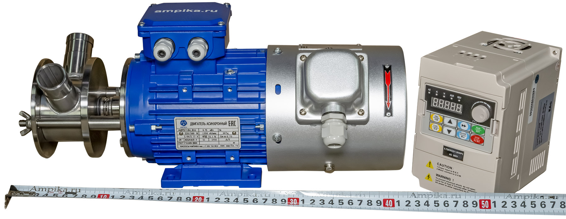 Импеллерный насос Ампика НСУ-3/16-0,75-АМ_380В с ЧРПИзменение скорости подачи насоса осуществляется регулированием частоты питающего электродвигатель тока вращением регулятора на частотном преобразователе. Основное преимущество насосов НСУ-АМ - при транспортировке продукта целостность структуры не нарушается, что особенно важно на пищевом производстве. Перекачиваемый продукт всасывается без предварительной заливки в камеру насоса. НСУ-АМ надёжен и удобен в обслуживании, его легко разбирать, промывать и собирать обратно. Он подходит для перекачивания с различной скоростью горячих пищевых продуктов. Температура перекачиваемой жидкости - до +90ºC. Высота самовсасывания - до 2-5 метров, в зависимости от условий и оборотов ротора. Уплотнение вала - одинарное торцевое, материалы зависят от конкретного исполнения, подбираются под жидкость. Возможна установка трёх различных импеллеров (крыльчаток): - из маслобензостойкой (МБС) резины, - из пищевой резины, - из щелочестойкой резины. МАРКИРОВКА: НСУ-3/16-0,75-АМ (с ЧРП) - НСУ - насос самовсасывающий универсальный (крыльчатка 74х51 мм), - 3 - производительность в кубометрах в час (номинальная, по воде), - 16 - напор в метрах водяного столба (номинальный, по воде), - 0,75 - мощность электродвигателя, кВт, - АМ - производство Ампика, - c ЧРП - с частотно-регулируемым приводом и дополнительным вентилятором принудительного охлаждения. Вентилятор обязательно нужен, т.к. при снижении оборотов эффективность встроенного вентилятора электромотора падает, и он не может нормально охлаждать двигатель. ПРЕИМУЩЕСТВА: - за счет использования малого фланца, уменьшаются габариты насоса (только в общепромышленном исполнении, 71 высоты), - вал насоса цельный, без наконечников и удлинителей, - насосная часть разбирается путем откручивания просто руками двух гаек-барашков на 5 частей (2 фланца, импеллер, торцевое уплотнение и корпус насоса), что позволяет быстро разбирать насос для промывки, - проточная часть изготовлена из нержавеющей стали 12Х18Н10Т, - импеллер (крыльчатка) имеет металлическую втулку со шлицевым соединением, что увеличивает его ресурс (в отличии от импеллеров без втулки), а также позволяет его снимать без использования специального инструмента, - на фланце, который крепится к э/д, установлено дополнительное манжетное уплотнение, что исключает попадание продукта в электродвигатель при выходе из строя основного торцевого уплотнения вала, - российское производство (Насосы Ампика), что гарантирует поставки любых запчастей и сервисное обслуживание в Москве, - минимальные сроки изготовления и поставки, складское наличие, - возможность изготовления по ТУ заказчика. В стандартном исполнении насосы НСУ поставляются со штуцерами под шланг Ду32 мм, расположенными по схеме "V". Возможно изготовления с молочными гайками и с расположением патрубков по схеме "L". Возможно изготовление с пищевыми гайками на патрубках. Вы можете скачать/просмотреть 3D модель насоса, перейдя по ссылкам ниже (ПКМ - "правая кнопка мыши"): 1. Модель НСУ-3/16-0,75-АМ исполнение V - Скачать (формат step, ПКМ->сохранить) 2. Модель НСУ-3/16-0,75-АМ исполнение L - Скачать (формат step, ПКМ->сохранить) Другие модели этого типа