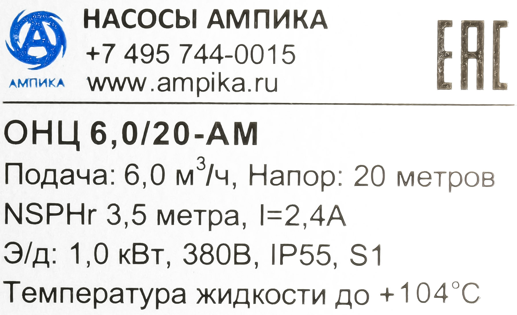 Пищевой насос из нержавейки Ампика ОНЦ 6,0/20-АМ_380ВПищевой нержавеющий насос ОНЦ-6,0/20-АМ_380 предназначен для перекачивания воды и жидких продуктов без сгустков. Его рабочие параметры соответствуют типичным потребностям пищевых производств. Он хорошо подходит для перекачки горячих жидкостей. Примеры перекачиваемых этим насосом субстанций: молоко, сок, чистое пивное сусло, питьевая и техническая вода, моющие средства, дезинфицирующие растворы и подобные жидкости, обеспечивающие скорость проникновения коррозии в материал проточной части не более 0,1 мм/год. Этот насос не предназначен для перекачивания растворителей и прочих взрывоопасных жидкостей!!! Описание Принцип действия насоса ОНЦ-6/20 - центробежный, одноступенчатый. Рабочее колесо закрытого типа. При перекачивании продуктов допускаются абразивные включения размером не более 0,2 мм и концентрацией до 0,3% по объёму. Если нужно перекачивать жидкости с включениями большего размера, то следует выбирать насосы с открытым рабочим колесом, серии ОНЦ-ОРК. Присоединительные патрубки этого насоса - со стандартной трубной дюймовой внутренней резьбой типа BSP. С переднего торца насоса расположен всасывающий патрубок, в нём резьба "дюйм с четвертью". Ссылка на штуцер под шланг внутренним диаметром 32 мм - 1 1/4`` нар. х 32 мм (НЕРЖ). Напорный патрубок находится сверху, резьба "один дюйм". Штуцер под 25 шланг - 1`` нар. х 25 мм (НЕРЖ). Возможна комплектация насоса муфтами с молочными гайками DIN 11851 (см. вкладку Запчасти). Технические характеристики • температура перекачиваемых продуктов: от -15 °С до +104 °С, • максимально допустимая плотность жидкости: 1050 кг/м³, • максимальная подача: 9 кубометров в час, • максимальное давление насоса: 3 атмосферы, • подпор на входе в насос: не более 2 атм., • максимально допустимое давление в корпусе насоса: 10 атм., • максимальная высота всасывания: не более 6-7 метров (после полного заполнения всасывающего трубопровода и корпуса насоса перекачиваемой жидкостью), • электродвигатель общепромышленный асинхронный, трёхфазный, • мощность: 1000 ватт, • приведённая частота вращения вала: 2900 об./мин., • напряжение сети: 380 вольт, три фазы. Частота тока 50 Гц. Степень защиты IP55, • вход/выход: внутренняя дюймовая резьба BSP (позволяет без применения сварки подсоединить насос к трубопроводам с обычной трубной резьбой), • материал корпусных деталей проточной части, рабочего колеса: пищевая хромоникелевая сталь AISI 304, • уплотнение вала: торцевое, керамика-графит-FPM. По требованию заказчика насос может комплектоваться торцовыми уплотнениями из этиленпропиленового каучука (EPDM) – под щелочные жидкости (средства для мойки пищевых систем, CIP-мойки). В таблице характеристик насоса указаны его вес и размеры в упаковочной коробке. Параметры насоса ОНЦ-6-20-АМ-380 без упаковки: • длина: 320 мм, • ширина: 210 мм, • высота: 230 мм, • вес: 10 кг. Паспорт (инструкция по эксплуатации насоса) вложен в его упаковочную коробку. Другие модели этого типа