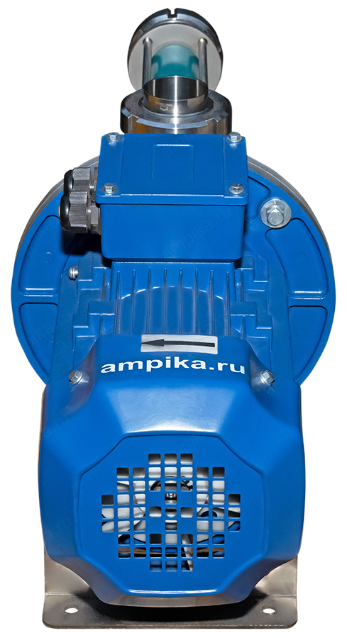 Винтовой насос Ампика ОВН-4-2,0/6 с 1,1 кВтНебольшой промышленный универсальный винтовой насос ОВН-4-2,0/6 с 1,1 кВт предназначен для перекачивания относительно вязких жидкостей в пищевой и химической промышленности. Насос представляет собой моноблочную конструкцию, что позволило снизить его цену по сравнению с традиционным конструктивным решением, когда в приводе героторной пары используется выносная промежуточная подшипниковая стойка. Уплотнение вала - торцевое. Материал проточной части - нержавеющая сталь марки AISI 304. Температура перекачиваемой жидкости - до +80ºC в стандартном исполнении, возможно изготовление с рабочей температурой до +140ºC под заказ. Допустимый размер частиц в перекачиваемой жидкости: твёрдые до 6 мм, мягкие - до 9 мм. Расшифровка условного обозначения марки насоса ОВН-4-2,0-6: - "О" - насос для молочной промышленности по советской классификации, - "ВН" - винтовой насос, - "4" - номинальная производительность статора (обоймы) на 100 оборотов винта в литрах, - "2,0" - производительность насоса в м³/час, - "6" - давление насоса в атмосферах. Электродвигатель общепромышленного исполнения, трёхфазный, на 380 вольт, IP54. Возможные варианты исполнения: - с байпасом (дает возможность работы на закрытый выход, например, для дозирования), - с дополнительным штуцером для CIP мойки, - во взрывозащищённом исполнении, - со шнековым питателем, - с мотор-редуктором. ВНИМАНИЕ! Если требуется работа с частотным преобразователем, об этом нужно сообщать при заказе, т.к. со стандартным электродвигателем насос может не запускаться от частотника. В этом случае может потребоваться установка более мощного электродвигателя, а также дополнительного внешнего вентилятора, т.к. при снижении оборотов встроенная в э/д крыльчатка может перестать эффективно охлаждать электродвигатель, и это может привести к его перегреву. Частотный регулятор следует выбирать на одну ступень больше, чем мощность электродвигателя, и обязательно использовать частотный преобразователь с векторным управлением. Другие модели этого типа