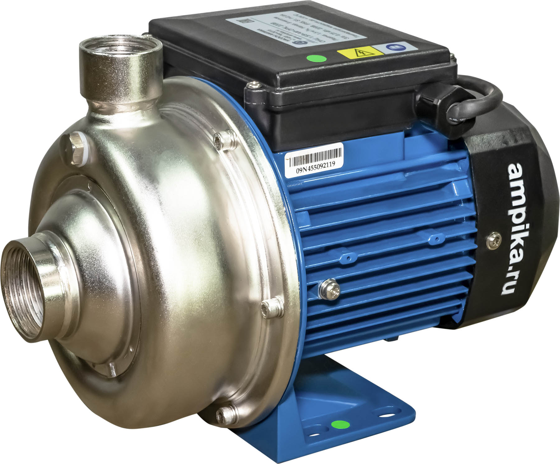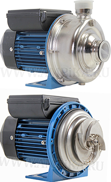 Пищевой насос из нержавейки Ампика ОНЦ 20,0/14-АМ-ОРК_220ВЭлектронасосы серии ОНЦ-ОРК (с Открытым Рабочим Колесом) предназначены для перекачивания пищевых продуктов: молока, сока, питьевой и технической воды, пивного затора, горячего пивного сусла и других схожих с ними по вязкости и плотности. Допускается перекачивание слабокислых и слабощелочных жидкостей (в т.ч. моющих средств, дезинфицирующих растворов и др. жидкостей, обеспечивающих скорость проникновения коррозии в материал проточной части не более 0,1 мм/год). Максимальная плотность перекачиваемой жидкости: 1050 кг/м³. Большой выбор насосов этой серии позволяет точно выбрать по параметрам ту модель, которая будет работать в своём оптимальном режиме под каждую конкретную ситуацию, под каждый тип электропитания. Эти насосы не предназначены для перекачивания растворителей и взрывоопасных жидкостей!!! Максимально допустимая высота всасывания – не более 6 метров (после полного заполнения всасывающего трубопровода и корпуса насоса перекачиваемой жидкостью). Внимание! Высота всасывания зависит от температуры перекачиваемой жидкости и её плотности! Открытое рабочее колесо позволяет перекачивать жидкости, содержащие неабразивные и мягкие включения. Размер перекачиваемых частиц у моделей ОНЦ 1,5/9-АМ-ОРК и ОНЦ 3,0/10-АМ-ОРК составляет до 6мм. Начиная с модели ОНЦ 10,0/10-АМ-ОРК и больше - до 19мм. Технические характеристики: - рабочая температура перекачиваемой жидкости: от -15 °С до +104 °С, - подпор на входе в насос: не более 2,0 атм., - максимальное давление в корпусе насоса: до 10 атм., - приведенная частота вращения вала электродвигателя: 2900 об./мин., - напряжение сети: 220 В или 380 В (в зависимости от модели), частота тока: 50 Гц, - степень защиты электродвигателя: IP55, класс изоляции F, - корпус проточной части насоса и рабочее колесо изготовлены из пищевой хромоникелевой стали AISI 304 (08Х18Н10Т), - уплотнительная прокладка корпуса: viton, - уплотнение вала: торцевое, керамика-графит-viton. По просьбе заказчика, насос, платно, может комплектоваться торцовыми уплотнениями из этиленпропиленового каучука (EPDM) – подбирается под перекачиваемую жидкость. При необходимости, за доплату возможна комплектация насоса муфтами с молочными гайками DIN 11851. Дополнение к описанию: Насос для перекачивания пищевых жидкостей ОНЦ-20,0/14-АМ-ОРК - самый большой из линейки на 220 вольт с центробежной крыльчаткой открытого типа. Открытое рабочее колесо позволяет ему перекачивать жидкости, например соки с мякотью, содержащие неабразивные и мягкие включения (сгустки, комки, жмых) размером до 19 мм. Для однофазного насоса, включающегося в стандартную розетку, у него довольно солидные параметры производительности (см. график на последней картинке): - максимальная подача: 38 кубометров в час, - максимальный напор: 1,7 атмосферы, - рабочая точка (лучший режим работы): 20 кубов в час с напором 1,4 атм. Подключение к трубопроводам резьбовое, стандартная трубная резьба, с переднего торца всасывающий патрубок "два с половиной дюйма", сверху напорный "два дюйма". Рекомендуем сразу приобретать соответствующие штуцеры под шланги, если эксплуатация насоса предполагает нежёсткий монтаж. Другие модели этого типа