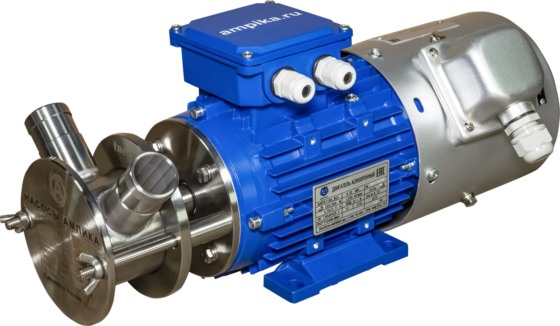 Молочные муфты Ду40 мм (2 шт, с приваркой)Насос импеллерный марки НСУ-АМ предназначен для перекачивания жидких и средневязких веществ, неагрессивных к материалам насоса, а также веществ, содержащих твердые включения с размером частиц до 3 мм. Например: молоко, кефир, йогурт, жидкая сметана, майонез, соус, яблочное пюре, масло, дизельное топливо, бензин, нефть, и т.п. Основным преимуществом данной марки насосов заключается в том, что при транспортировке продукта целостность структуры не нарушается. Перекачиваемый продукт всасывается без предварительной заливки в камеру насоса. НСУ-АМ надёжен и удобен в обслуживании, его легко разобрать, промыть и собрать обратно. Высота самовсасывания НСУ-АМ - до 2-5 метров, в зависимости от условий и оборотов ротора. Температура перекачиваемой жидкости - до +90С. Уплотнение вала - одинарное торцевое (в стандартном исполнении - витон. Не обозначается в маркировке). Материалы зависят от конкретного исполнения. Для жидкостей со взвешенными частицами и липких веществ возможно исполнение с сальниковым уплотнением. Стандартное исполнение - со штуцерами под шланг внутренним диаметром 32 мм, возможно изготовление с пищевыми гайками. Возможна установка различных импеллеров: - из маслобензостойкой, кислотостойкой резины (витон), - из пищевой резины неопрен (стандартное исполнение, не обозначается в маркировке), - из щелочестойкой резины EPDM. МАРКИРОВКА: НСУ-1,8/12-0,25-АМ (крыльчатка, уплотнение EPDM)(с ЧРП) - НСУ - Насос Самовсасывающий Универсальный (крыльчатка 74х51 мм), - 1,8 - производительность в кубометрах в час (номинальная, по воде), - 12 - напор в метрах водяного столба (номинальный, по воде), - 0,25 - мощность электродвигателя, кВт, - АМ - производство Ампика, - (крыльчатка, уплотнение EPDM) - материалы крыльчатки и уплотнения вала - EPDM. Без обозначения: крыльчатка неопрен, уплотнение вала - витон. - взр. - взрывозащищенный электродвигатель, - МВ - с механическим вариатором, - c ЧРП - с частотно-регулируемым приводом и дополнительным вентилятором принудительного охлаждения, (вентилятор нужен, т.к. при снижении оборотов эффективность встроенного вентилятора падает и он не может нормально охлаждать двигатель), - большой фланец - фланец выполнен по ГОСТ исполнение IM2081, с наконечником вала. ПРЕИМУЩЕСТВА: - за счет использования малого фланца, уменьшаются габариты насоса (только в общепромышленном исполнении, 71 высоты), - вал насоса цельный, без наконечников и удлинителей, что положительно сказывается на долговечности, - насосная часть разбирается путём откручивания просто руками двух гаек-барашков на 5 частей (2 фланца, импеллер, торцевое уплотнение и корпус насоса), что позволяет быстро разбирать насос для промывки, - проточная часть изготовлена из нержавеющей стали 12Х18Н10Т, - импеллер (крыльчатка) имеет металлическую втулку со шлицевым соединением, что увеличивает его ресурс (в отличии от импеллеров без втулки), а также позволяет его снимать без использования специального инструмента, - на фланце, который крепится к э/д, установлено дополнительное манжетное уплотнение, что исключает попадание продукта в электродвигатель при выходе из строя основного торцевого уплотнения вала, - российское производство (производитель - фирма Насосы Ампика), что гарантирует поставки любых запчастей и сервисное обслуживание в Москве, - минимальные сроки из