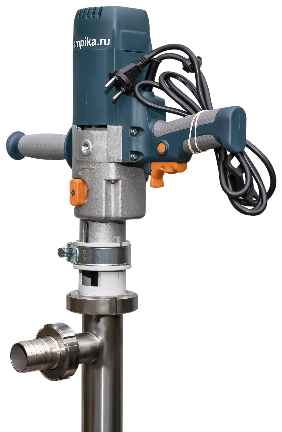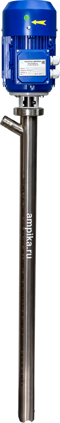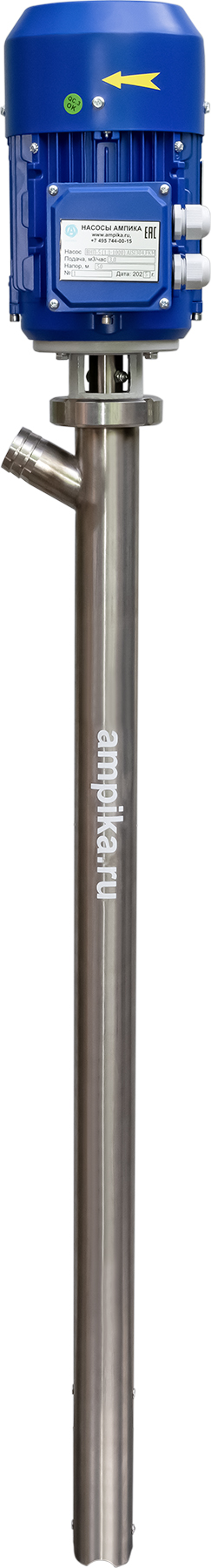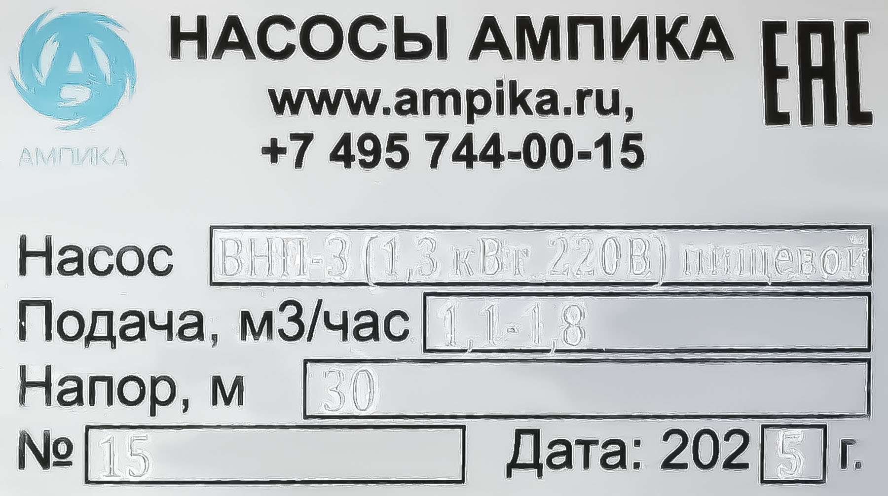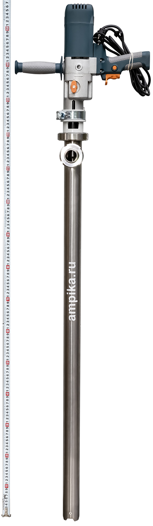 Винтовой полупогружной насос Ампика ВНП-3 (1,3 кВт_220В) пищевойЛёгкий электрический бочковой полупогружной насос ВНП-3 (1,3 кВт_220В) предназначен для выкачивания жидких пищевых продуктов с вязкостью до 10000 мПа*с из бочек 200 литров, 60-литровых бочонков, фляг и любых других емкостей глубиной до 1,2 метра. Насос называется полупогружным потому, что верхняя часть (электродвигатель) всегда над ёмкостью. В качестве привода устанавливается однофазный электромотор от дрели с регулируемыми оборотами выходного вала 650-1000 мин⁻¹, питающийся от обычной бытовой розетки. Тихоходность позволяет перекачивать жидкости средней вязкости, например растительные масла. В стандартном исполнении эта модель комплектуется обоймой (статором) из белой пищевой резины и уплотнением вала из витона. Такой насос может использоваться например перекачки для таких жидкостей, как пищевые масла, концентраты соков, майонез, сметана, мёд, ягодные и фруктовые пюре, молочные продукты (кефир, ряженка, сметана, сгущёное молоко), томатная паста, для некоторых щелочных жидкостей и любых других химически неагрессивных к материалам насоса. Примеры непищевых жидкостей, которые может качать этот насос: косметическое сырьё, глицерин, шампунь, жидкое мыло, лауретсульфат натрия, бутилгликоль, жидкое стекло, различные ПАВы. ВНИМАНИЕ! Этот насос НЕ ПРЕДНАЗНАЧЕН для полиэфирных смол, отвердителей, кислот, щелочей, растворителей!!! Уточняйте возможность работы насоса с конкретной жидкостью у наших менеджеров!!! Следует также помнить, что чем больше будет вязкость перекачиваемой жидкости (максимальная - 10000 сПз), тем ниже будет производительность насоса (подача в таблице указана на воде). Максимальная температура перекачиваемой жидкости: +80ºC. Размер пропускаемых частиц - до 3 мм, не более 10% по объёму. Насос можно промывать дезрастворами с концентрацией 1-2%. Технические характеристики: 1) Принцип действия - винтовой (героторный насос). 2) Глубина погружения - 1200 мм (возможно изготовление с глубиной погружения до 2000 мм под заказ). 3) Материал проточной части (трубы) – нержавеющая сталь марки AISI 304. 4) Материалы внутренних деталей (винт, торсион, наконечник вала двигателя, фланец под торцевое уплотнение): 40Х13 (винт закалённый). 5) Уплотнение вала торцевое, с парой трения из карбида кремния и эластомером из витона (фторкаучук). Возможна установка уплотнения из EPDM. 6) Материал обоймы - пищевая резина 25-52-563 (NBR). Возможна установка обойм из: - полиуретана (самый износостойкий материал), - витона (фторкаучука), - износостойкой МБС резины 7-В-14. 7) Диаметр погружной части: 53 мм. 8) Выход насоса – с ёлочкой под шланг внутренним диаметром 38 мм, крепится к корпусу насоса через молочную муфту, что позволяет быстро отсоединять шланг при необходимости.. 9) Электродвигатель: коллекторный, 2-х скоростной, с возможностью регулировки оборотов. Мощность 1,3 кВт, напряжение питания 220 вольт (стандартный электродвигатель от профессиональной дрели). Режим работы периодический: 10-15 минут работа, затем остановка до полного остывания щёточного мотора. Другие модели этого типа