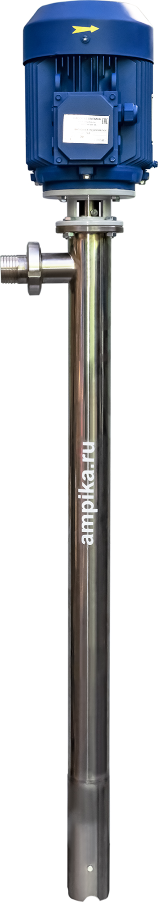 Винтовой полупогружной насос Ампика ВНП-25 МР (вязкость до 70 000 мПа*с)Назначение: Полупогружные насосы ВНП-25-МР (с мотор-редуктором) предназначены для выкачивания высоковязких продуктов с вязкостью до 70 000 мПа*с из бочек 200 л (со съемной крышкой) и еврокубов (глубина погружения 1200 мм). Насосы предназначены для таких жидкостей как краски на водной основе, лаки на водной основе, трансмиссионные масла, клеи на водной основе, патока, сорбитол, глюкозный сироп, томатная паста и т.п. жидкости, не агрессивные к материалам насоса. В стандартном исполнении эта модель комплектуется статором из белой пищевой резины и уплотнением вала из витона. Размер пропускаемых частиц - до 5 мм, не более 10% по объему. В качестве привода устанавливается мотор-редуктор типа TRC с оборотами вала 181 об/мин. Это позволяет перекачивать высоковязкие жидкости, например патоку при температуре +10 С. Данный насос был специально разработан для патоки и показал очень хорошие результаты во время эксплуатации при работе с этим продуктом. Для работы с такими жидкостями требуются пониженные обороты винта, т.к. иначе продукт не будет успевать затекать в насосную часть из-за большой вязкости и героторная пара будет работать "с голоданием", что приведет к преждевременному износу обоймы. Рекомендуем также работать в паре с частотным преобразователем, т.к. он позволяет подстраивать обороты ротора в зависимости от вязкости жидкости, которая может меняться. Следует помнить, что чем больше будет вязкость, тем ниже будет производительность насоса (подача насоса указана на воде). ВНИМАНИЕ! Насосы НЕ ПРЕДНАЗНАЧЕНЫ!!! для полиэфирных смол, отвердителей, кислот, растворителей!!! Уточняйте возможность работы насоса с конкретной жидкостью у поставщика!!! Технические характеристики: Модель ВНП-25-МР (вязкость до 70 000 мПа*с) 1) глубина погружения - 1200 мм, Возможно изготовление с глубиной погружения до 2000 мм под заказ. 2) Материал проточной части (трубы) – AISI 304, 3) Материалы внутренних деталей (винт, торсион, наконечник вала э/д, фланец под торцевое уплотнение): 40Х13. Винт закаленный, 4) Уплотнение вала торцевое, с парой из карбида кремния и эластомером из витона (фторкаучук). Возможна установка уплотнения из EPDM. 5) Материал обоймы: пищевой резины 25-52-563 (NBR), Возможна установка обойм из: - износостойкой МБС резины 7-В-14, 6) Диаметр погружной части: 120 мм, 7) Выход насоса – молочная муфта Ду50 DIN 11851 со штуцером под шланг Ду50 мм, 8) Мотор-редуктор с оборотами вала 181 об/мин. 8) Электродвигатель: 380В, IP54, с возможностью постоянной работы. Возможна комплектация электродвигателем во взрывозащищенном исполнении. Другие модели этого типа