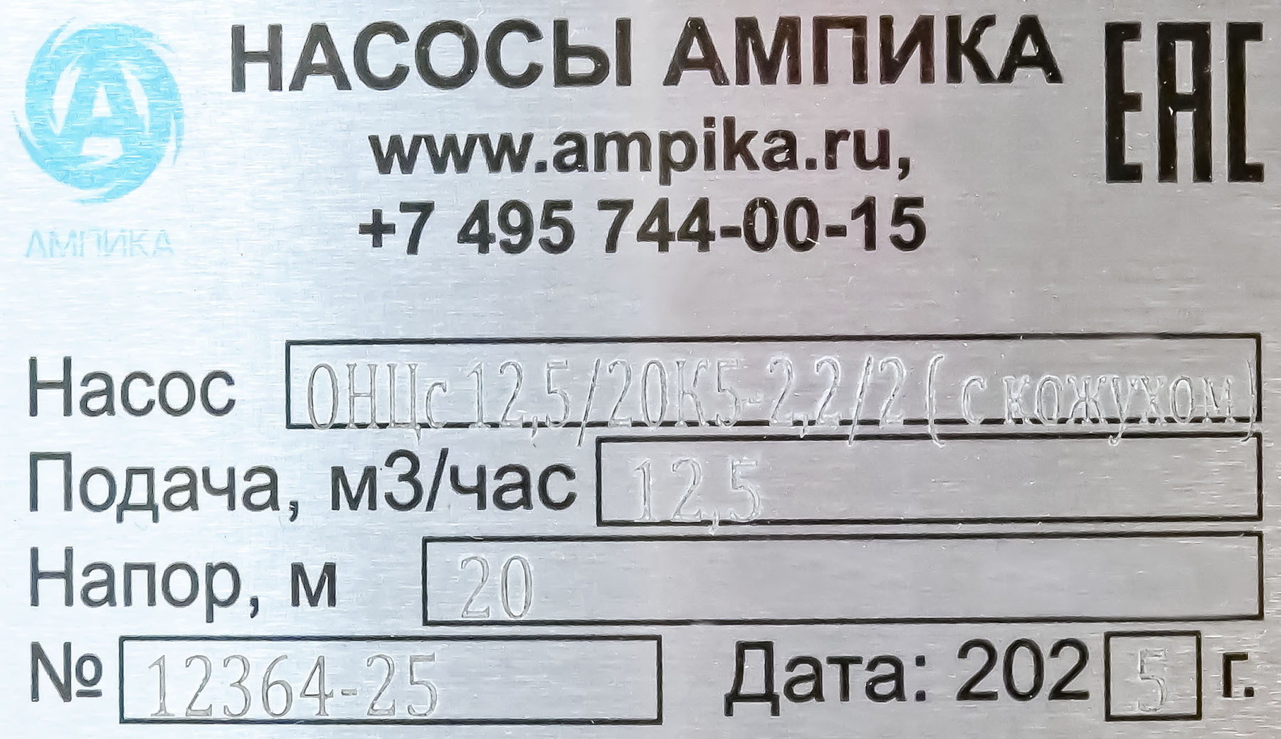Цена с НДС 114200 ₽ Небольшой промышленный центробежный самовсасывающий пищевой насос ОНЦс-12,5/20К5-2,2/2 (с кожухом) – это моноблочный, горизонтальный, одноступенчатый насосный агрегат. Отличительной особенностью пищевых насосов ОНЦс является возможность всасывать жидкость без предварительного заполнения входной магистрали: для осуществления самовсасывания (выкачивания воздуха из всасывающего трубопровода) достаточно наличия жидкости только в корпусе проточной части насоса. Высота самовсасывания - до 7 метров. ВНИМАНИЕ! Высота самовсасывания зависит от температуры жидкости и её плотности! При подборе насосов всегда консультируйтесь со специалистами Ампики. Насос предназначен для перекачивания подсолнечного масла, вина, пива, соков, а также других пищевых продуктов, сходных с ними по вязкости и плотности. Температура перекачиваемой среды от +4 до +95 ºC (возможно изготовление версии до +140 ºC). Допускается использовать этот электронасос для перекачивания слабокислых и слабощелочных сред (CIP-растворов), обеспечивающих скорость коррозии проточной части не более 0,1 мм/год. Концентрация механических примесей - не более 0,1% по объёму, максимальный размер частиц - 0,2 мм. Электродвигатель трёхфазный общепромышленный, на 380 вольт, мощностью 2,2 кВт. Уплотнение вала - одинарное торцевое (возможно изготовления с двойным торцевым уплотнением и бачком с затворной жидкостью). Проточная часть выполнена из нержавеющей стали 12Х18Н10Т и AISI304. Всасывающий патрубок (с переднего торца насоса) – с молочной муфтой Ду50, со штуцером под сварку. Напорный (сверху) - Ду32. Для защиты электродвигателя от брызг жидкости при мойке оборудования насос комплектуется защитным кожухом из нержавеющей стали. Также в комплекте идёт запасная прокладка корпуса. При комплектации электродвигателем во взрывозащищённом исполнении, такой насос можно использовать для перекачивания спирта, водки. Цена указана за насос с общепромышленным электродвигателем. Другие модели этого типа