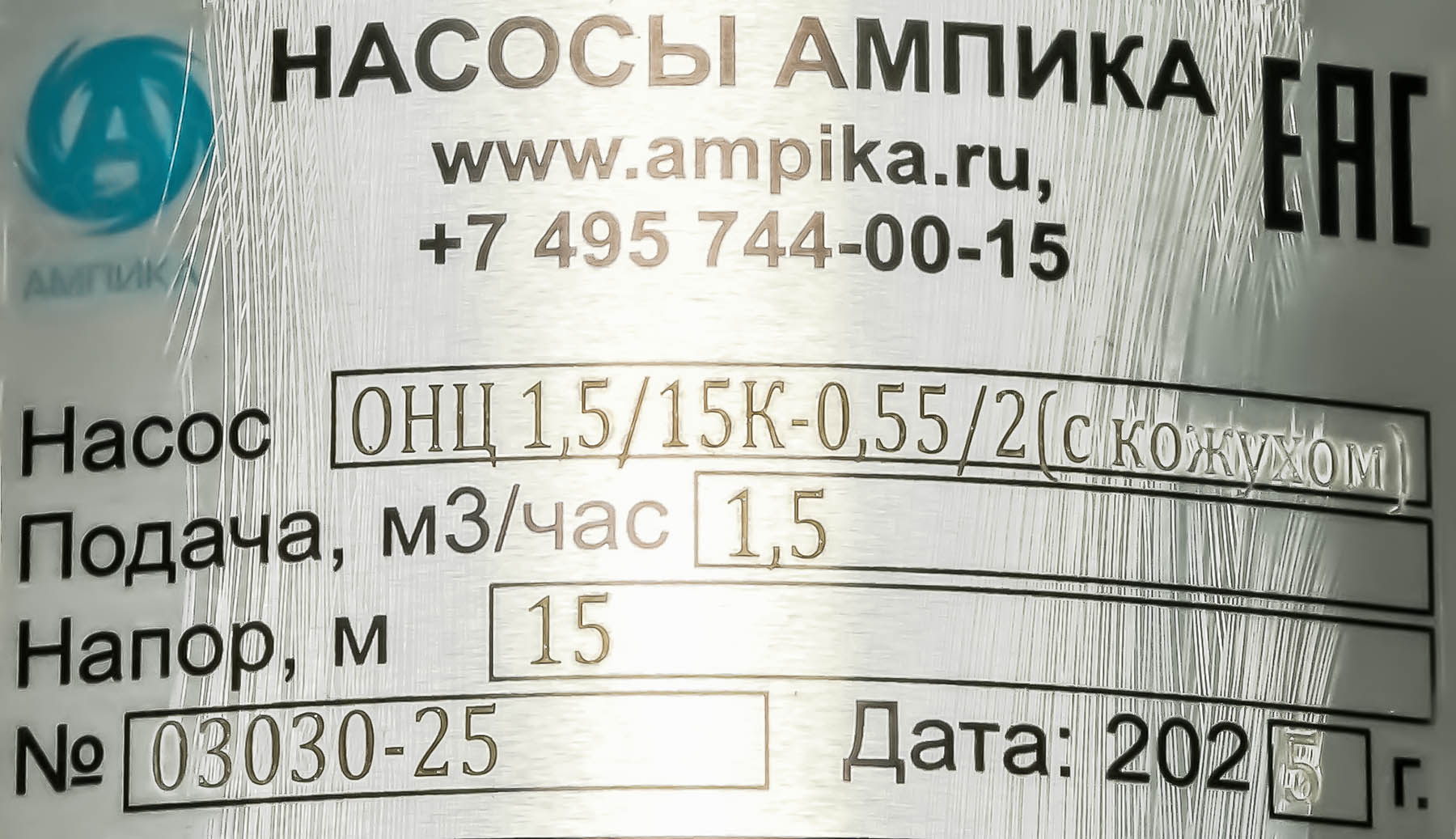 Пищевой центробежный насос ОНЦ 1,5/15К-0,55/2 (с кожухом)
