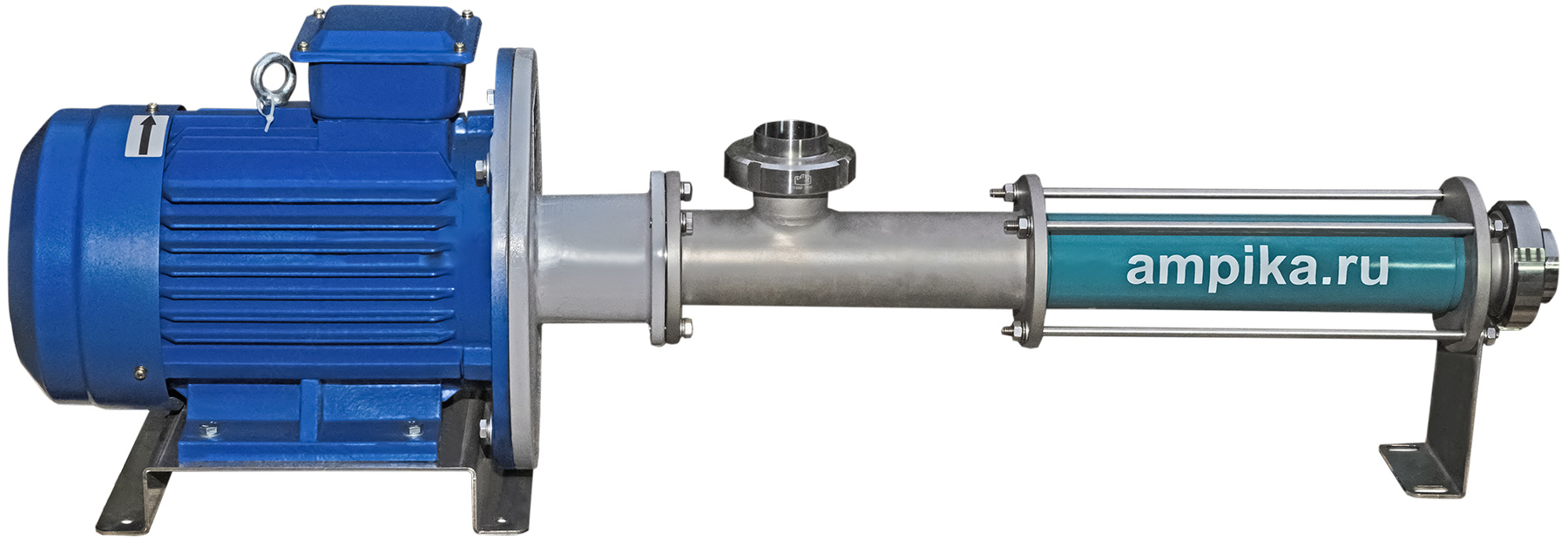 Винтовой насос Ампика ОВН-18-9,0/6 с 3,0 кВтПромышленный винтовой насос ОВН-18-9,0/6 с 3,0 кВт предназначен для перекачивания вязких жидкостей в пищевой и химической промышленности. Мощный и тихоходный электромотор позволяет ему бережно перекачивать вязкие продукты. Насос представляет собой моноблочную конструкцию, что позволило снизить цену по сравнению с традиционным решением, когда используется выносная промежуточная подшипниковая стойка. Уплотнение вала - торцевое. Материал проточной части - нержавеющая сталь марки AISI 304. Температура перекачиваемой жидкости - до +80ºC в стандартном исполнении, возможно изготовление с рабочей температурой до +140ºC под заказ. Допустимый размер частиц в перекачиваемой жидкости: твёрдые до 9 мм, мягкие - до 13 мм. Расшифровка обозначения маркировки насоса ОВН-18-9,0-6: - "О" - насос для молочной промышленности по советской классификации, - "ВН" - винтовой насос, - "18" - номинальная производительность статора (обоймы) на 100 оборотов винта в литрах, - "9,0" - производительность насоса в м³/час, - "6" - давление насоса в атмосферах. Электродвигатель общепромышленного исполнения, трёхфазный, на 380 вольт, IP55. Возможные варианты исполнения: - с байпасом (дает возможность работы на закрытый выход, например, для дозирования), - с дополнительным штуцером для CIP мойки, - во взрывозащищённом исполнении, - со шнековым питателем, - с мотор-редуктором. ВНИМАНИЕ! Если требуется работа с частотным преобразователем, об этом нужно сообщать при заказе, т.к. со стандартным электродвигателем насос может не запускаться от частотника. В этом случае может потребоваться установка более мощного электродвигателя, а также дополнительного внешнего вентилятора, т.к. при снижении оборотов встроенная в э/д крыльчатка может перестать эффективно охлаждать электродвигатель, и это может привести к его перегреву. Частотный регулятор следует выбирать на одну ступень больше, чем мощность электродвигателя, и обязательно использовать частотный преобразователь с векторным управлением. Другие модели этого типа