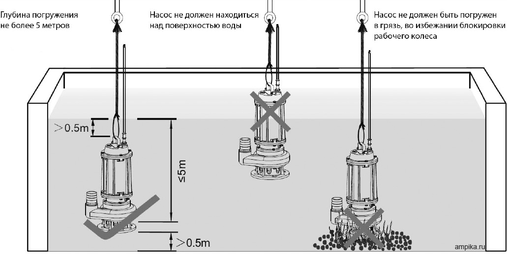 Фекальный насос с измельчителем Ампика ЦМФ 8-15 РМ_220ВПогружные моноблочные центробежные электронасосы типа ЦМФ с режущим механизмом предназначены для откачивания бытовых (фекальных) и производственных сточных вод температурой до +40°С, с уровнем кислотности PН 4 ~ 10, плотностью до 1200 кг/м³, в том числе и содержащих длинноволокнистые включения. Данные насосы могут не только резать волокна, но и пропускать твёрдые частицы размером до 35 мм. Глубина погружения насосов: 0,5 ~ 5 м. Насосы линейки ЦМФ могут использоваться в качестве передвижного средства для аварийной откачки сточных вод из канализационных колодцев, подвалов, сборников и т.п., а также для стационарной установки в специально приспособленных канализационных колодцах, включенных в малые и средние системы канализации. В новом дизайне насосы более надёжны и имеют улучшенный механизм резки волокон. Технические характеристики: - материал корпуса, проточной части и рабочего колеса - чугун, - электродвигатель асинхронный, на 380 В (если не указано иное). Класс изоляции: E. Степень защиты: IP X8, - выход фланцевый, прокладка и болты идут в наборе, - в комплекте даётся штуцер для подсоединения шланга во всех моделях, - двойное торцевое уплотнение вала: керамика-графит-NBR с масляной камерой. Камера между уплотнениями заполнена маслом, что позволяет валу насоса некоторое время вращаться без воды без риска быстрого перегрева и повреждения уплотнения. Совместимость насосов с автоматическими муфтами (донными устройствами): 1. Ду50 (максимальный вес насоса до 150 кг): ЦМФ 10-14 РМ, ЦМФ 8-15 РМ_220В, ЦМФ 20-18 РМ, ЦМФ 20-9 РМ_220В (АМПИКА). 2. Ду65 (максимальный вес насоса до 200 кг): ЦМФ 40-14 РМ, НПК 20-22 (Ампика). 3. Ду80 (максимальный вес насоса до 200 кг): ЦМФ 50-15 РМ, НПК 30-30 (Ампика) 4. Ду100 (максимальный вес насоса до 350 кг): ЦМФ 60-15 РМ, ЦМФ 85-17 РМ. Дополнение к описанию: Бытовой фекальный погружной насос с режущим механизмом ЦМФ-8-15-РМ-220 оснащён однофазным электродвигателем мощностью 1100 ватт. Максимальная подача (если напор не нужен) - 14 кубов в час. Максимальный напор (при минимальной подаче) - 2 атм. Насос способен работать в непрерывном режиме. Другие модели этого типа