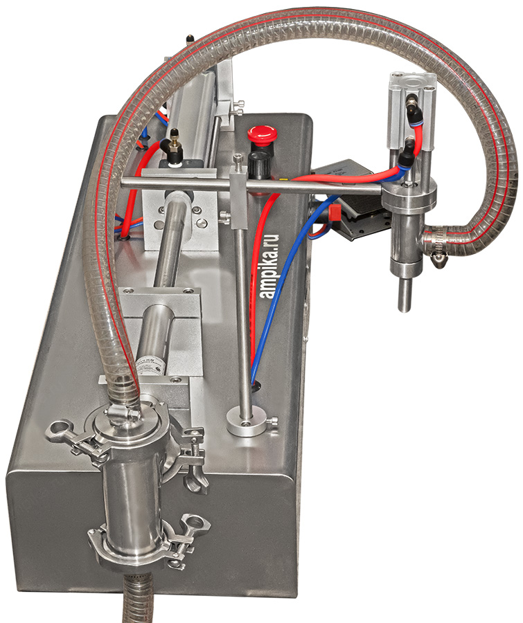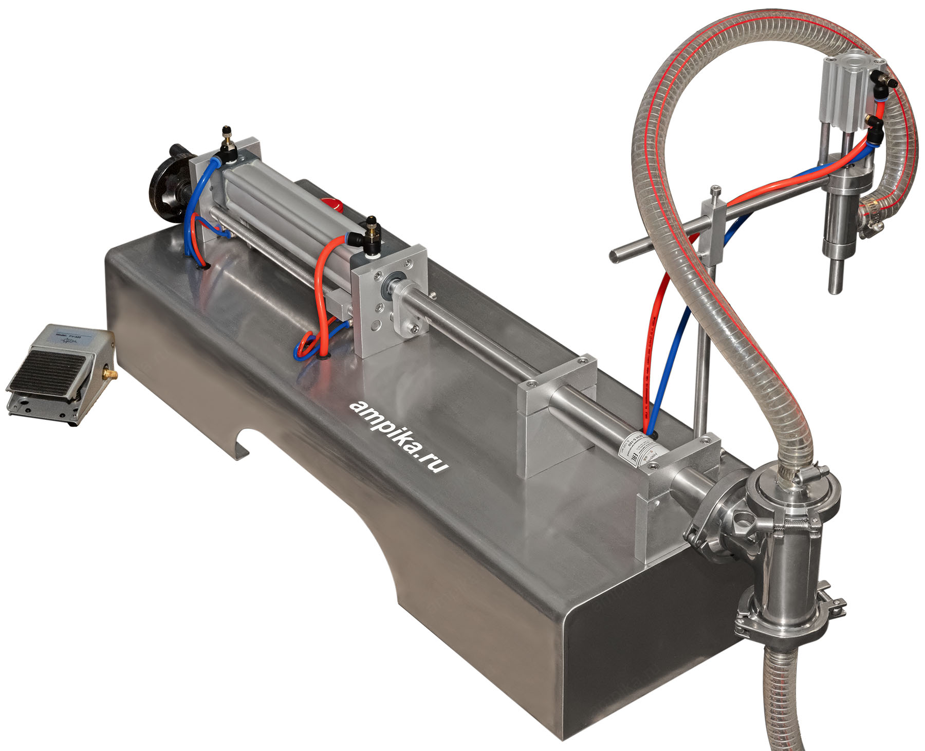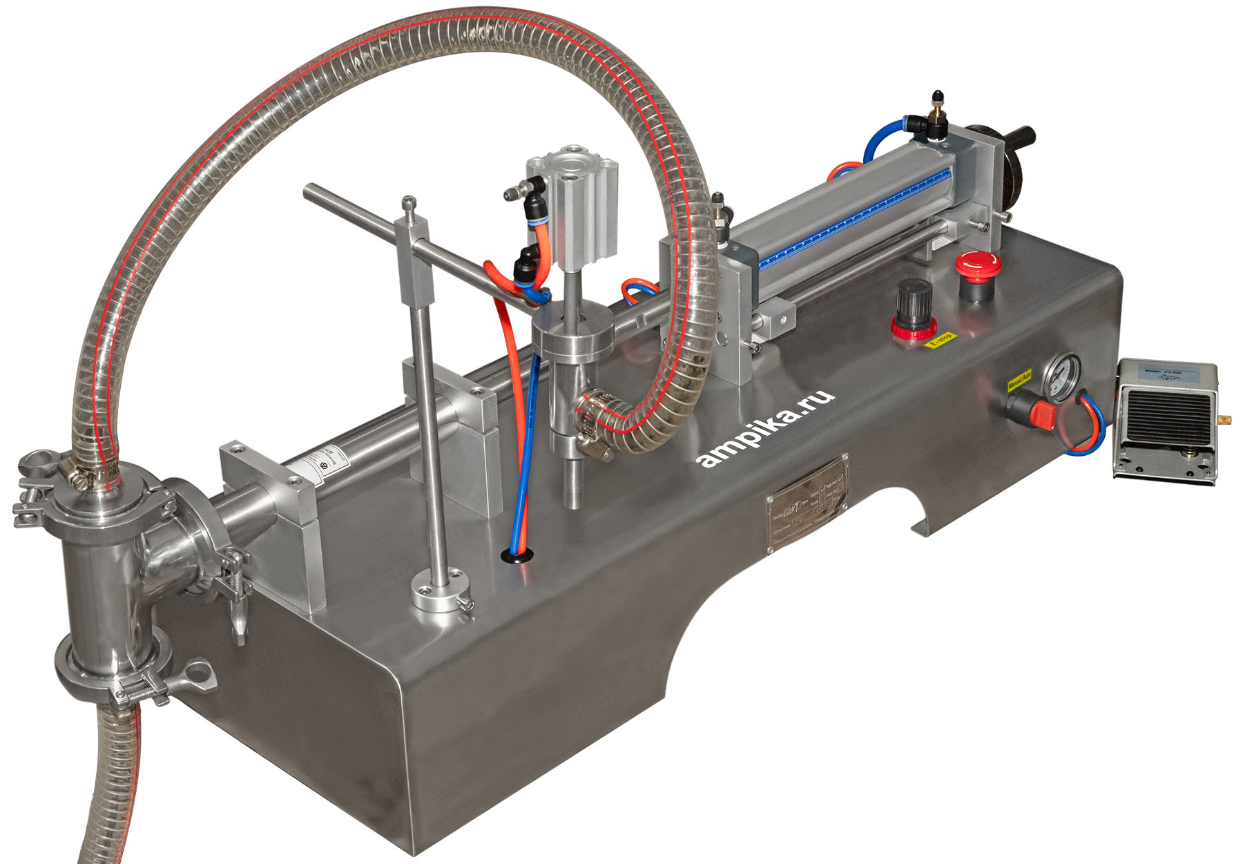 Дозировщик пневматический промышленный Ампика ДПП 5-100Дозатор малых доз пневматический ДПП 5-100 предназначен для розлива жидкостей средней вязкости (до 1000 мПа*с) таких как: молоко, алкоголь, масло, шампунь и т.п. при температуре до +60ºC. Конструктивно он представляет собой поршневой насос с пневмоприводом и возможностью регулировки хода поршня. Установка дозы происходит за счет выставления длины хода пневмопривода, которая выставляется вращением чёрной рукоятки в торце пневмоцилиндра. Также возможна регулировка скорости выдачи дозы (производительности), паузы между дозами и давления. Возможна работа в 2-х режимах: ручном и автоматическом. При работе в ручном режиме выдача одной единственной дозы производится после одного нажатия на педаль, которая идёт в комплекте. В автоматическом режиме дозатор работает непрерывно, выдавая одну за одной настроенную дозу через настроенный промежуток времени. Более доходчиво всё описано в шестиминутном видеоролике ниже. Дозатор самовсасывающий (не требует предварительной заливки). Для подъёма жидкости в дозатор достаточно просто опустить всасывающий шланг в ёмкость с продуктом. Точность дозирования: +/- 0,5%. Давление компрессора: 4-6 атм., нужен ресивер не менее 30 литров (компрессор приобретается отдельно). Расшифровка условного обозначения дозировщика ДПП-5-100: "ДПП" - дозатор поршневой пневматический, "5-100" - минимальная и максимальная выдаваемые дозы в мл (то есть возможна установка любой дозы в диапазоне от 5 до 100 мл). Комплект поставки: - дозатор в сборе, - всасывающий шланг длиной 1,5 метра, - педаль, - держатель раздаточной насадки с возможностью регулировки высоты и вылета, - комплект ЗИП. В таблице характеристик дозировщика указаны его вес и размеры в упаковочной коробке. Параметры собранного агрегата без упаковки: • длина: 1000 мм, • ширина: 280 мм, • высота: 300 мм, • вес: 18,4 кг. Паспорт (инструкция по эксплуатации дозатора) вложен в его упаковочную коробку. |