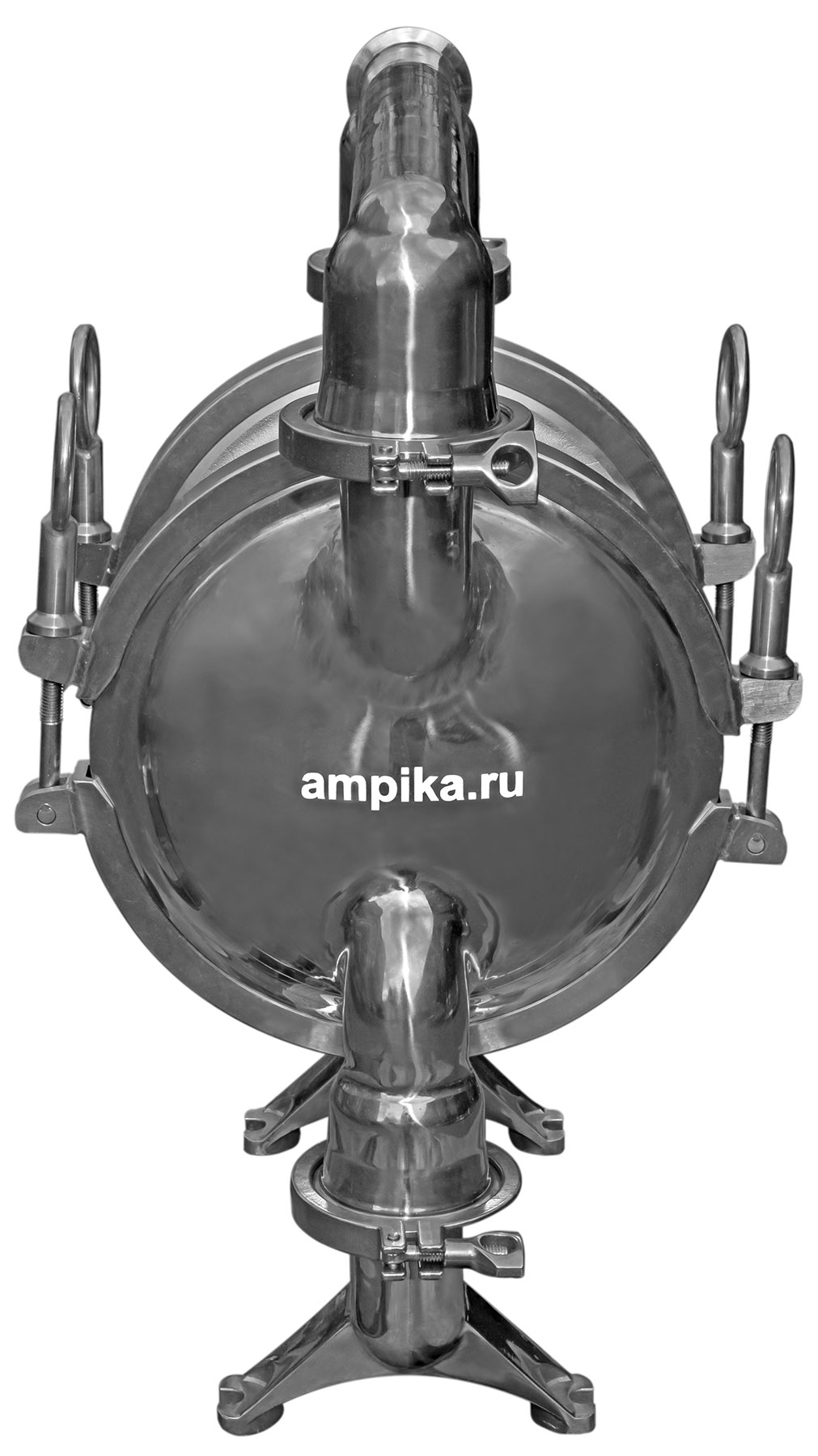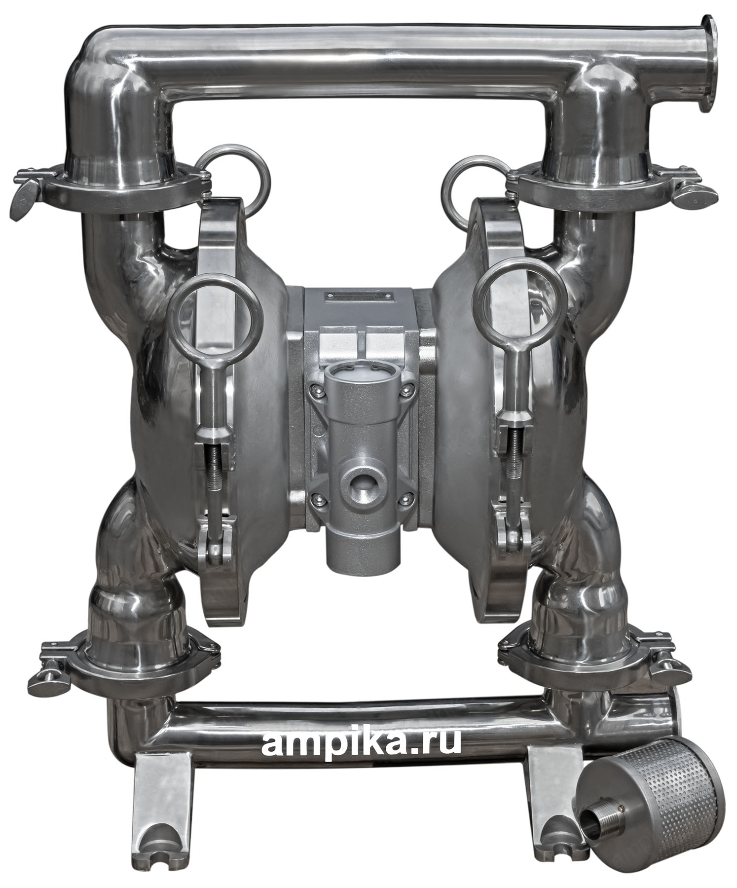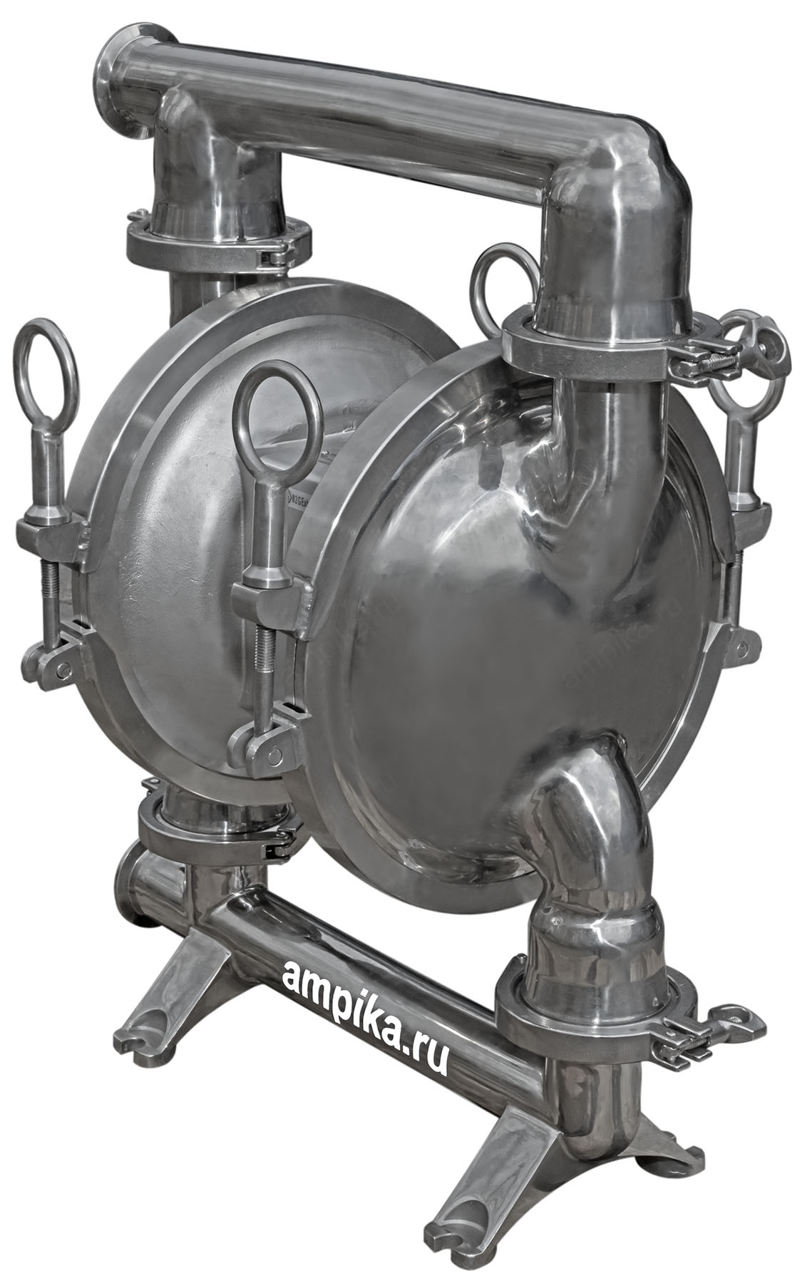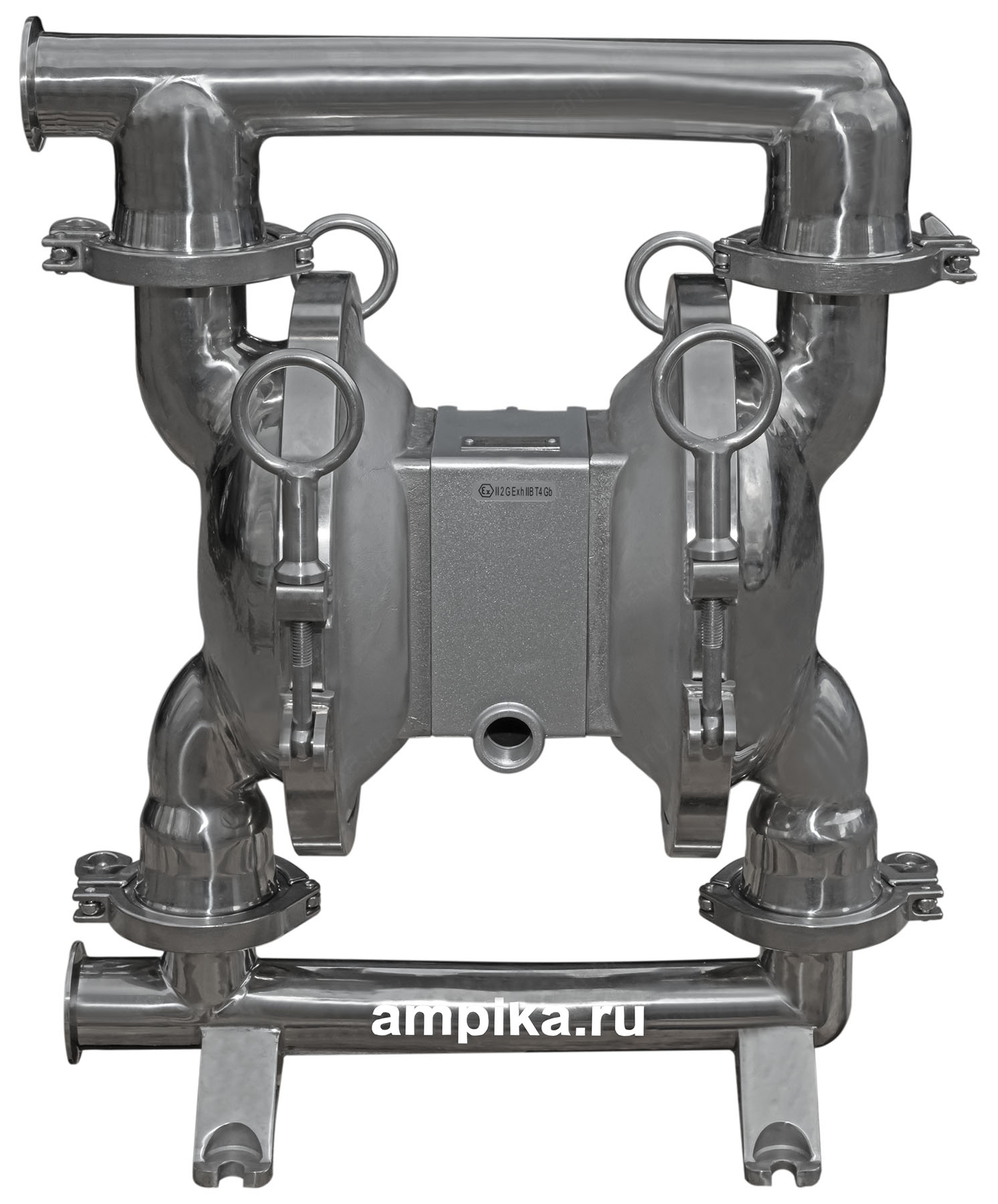 Мембранный пищевой насос Ампика МП-64-Д-32Промышленный пищевой мембранный пневматический насос МП-64-Д-32 предназначен для перекачки различных пищевых жидкостей с большими кусочками продукта на пищевых производствах, например йогуртов с фруктами, варенья с косточками, соков с ягодами. Насос приводится в действие сжатым воздухом, его производительность зависит от давления в пневматической магистрали. Его можно назвать пищевым насосом переменной производительности: установив перед насосом воздушный фильтр-редуктор, можно подстраивать подачу и давление насоса под текущие производственные нужды. Благодаря отсутствию электродвигателя насос отвечает требованиям взрывозащиты. Немаловажная особенность мембранного пищевого насоса МП - возможность быстрой сборки/разборки проточной части насоса для очистки и промывки (на фото ниже представлен насос в разобранном виде). Процесс сборки/разборки не требует специальных инструментов и может быть выполнен вручную.