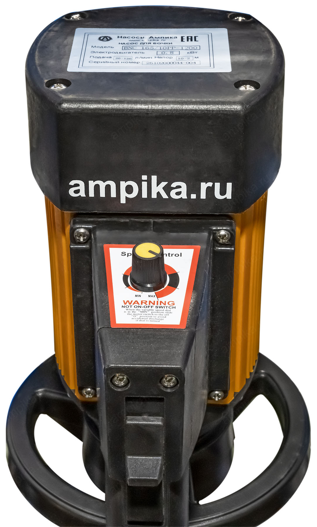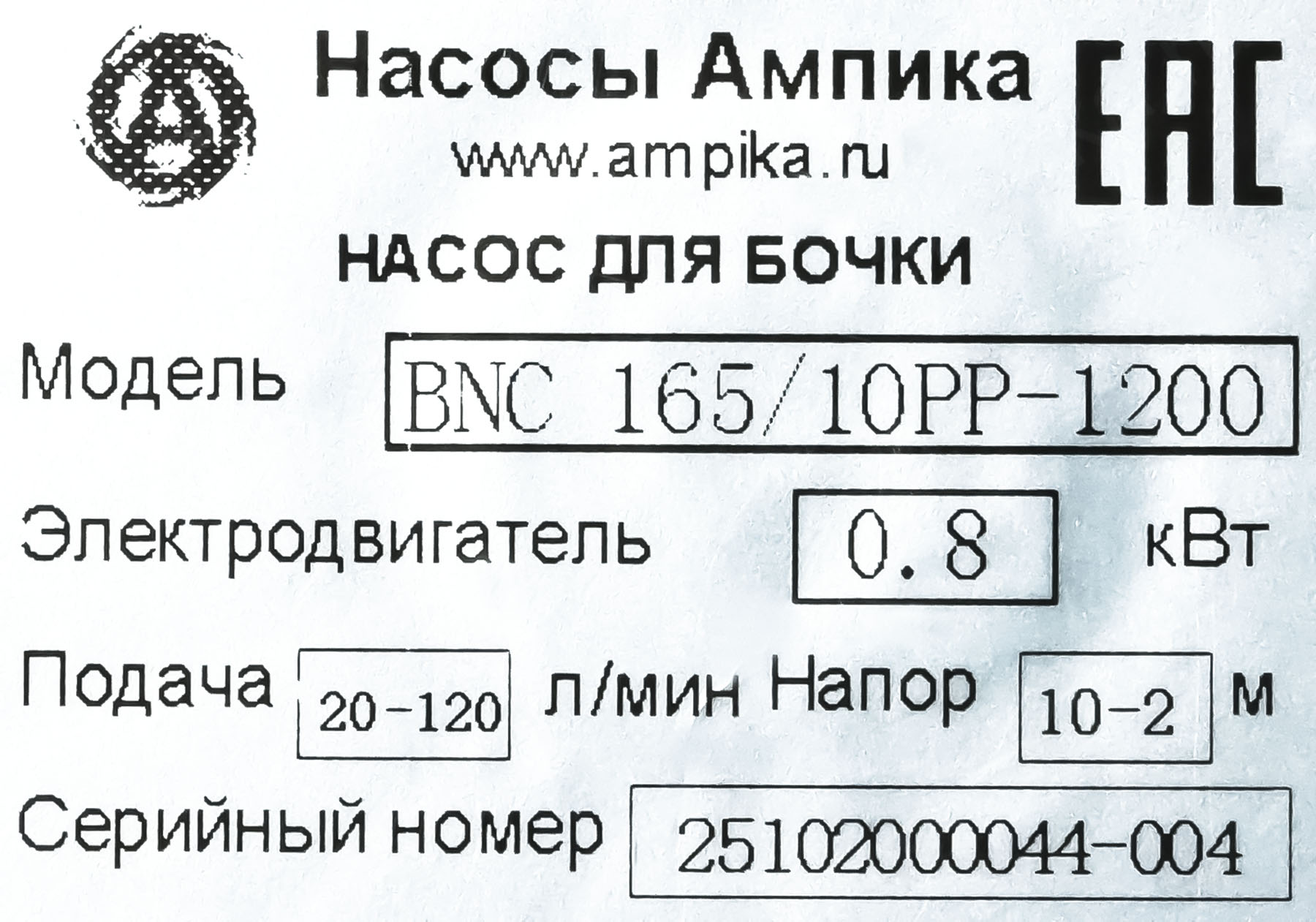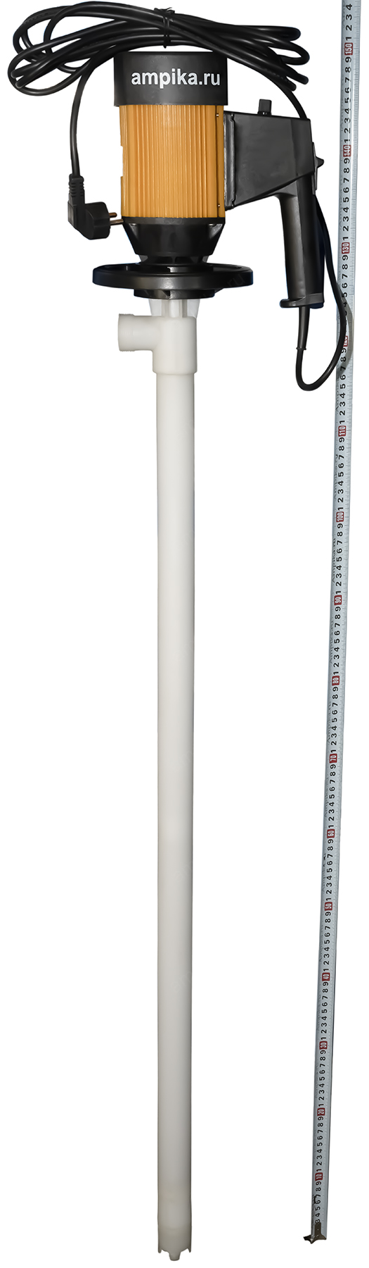 Бочковой химический насос Ампика BNC 165/10PP-1200Назначение Бочковой насос BNС-165/10PP-1200 предназначен для перекачивания различных химически активных жидкостей без механических примесей из 60-литровых бочек (700 мм), 200-литровых бочек (1000 мм) и еврокубов (максимальная глубина погружения - 1200 мм). Максимальная вязкость перекачиваемой жидкости - 500 мПа*с. Следует помнить, что при перекачке вязких жидкостей может сильно уменьшиться производительность (подача и напор) насоса. Диаметр погружной части - 42 мм, штуцер под шланг 25 мм. Насосы без уплотнений вала (при работе насоса жидкость не доходит до подшипникового узла). ВНИМАНИЕ! При работе насоса в паре с пневматическим двигателем, рабочие параметры подачи и напора химического бочкового насоса уменьшаются примерно на 50%. При выборе насоса ОБЯЗАТЕЛЬНО проконсультируйтесь с нашими специалистами! Расшифровка обозначения: BNС 165/10PP-1200 «BNС» – бочковой насос химический, «165» - максимальная производительность 100 л/мин., «10» - максимальный напор, м, «PP» - корпус из полипропилена, вал из хастеллоя, крыльчатки из PTFE, «1200» - длина погружной части в миллиметрах. Насосы серии BNC поставляются в сборе с электродвигателями мощностью 800 Вт и оборотами 10000 об./мин. (IP44), с возможностью регулировки оборотов. *Возможна комплектация любого насоса пневматическим двигателем 375 Вт х 1000 об./мин. или взрывозащищенным электродвигателем. ВНИМАНИЕ! Электродвигатели коллекторного типа. Режим работы - кратковременный: на максимальных оборотах не более 3 минут (достаточно, чтобы откачать бочку 200 литров), на оборотах 80% от номинала - не более 10-15 минут с перерывом на охлаждение. ВНИМАНИЕ! Насосы следует хранить только в вертикальном положении!!! Хранение в горизонтальном положении может привести к попаданию перекачиваемой жидкости в подшипниковый узел. В таблице даны габариты и вес упаковки с насосом. Параметры собранного насоса без коробки: • длина: 250 мм, • ширина: 170 мм, • высота: 1500 мм, • вес: 5 кг. Другие модели этого типа