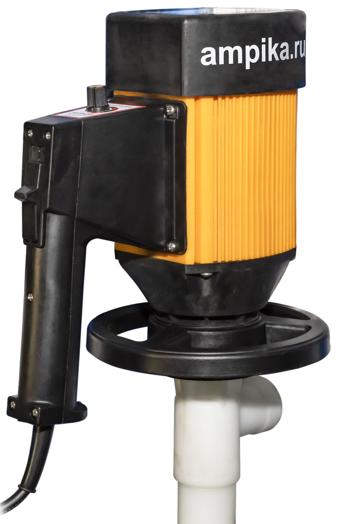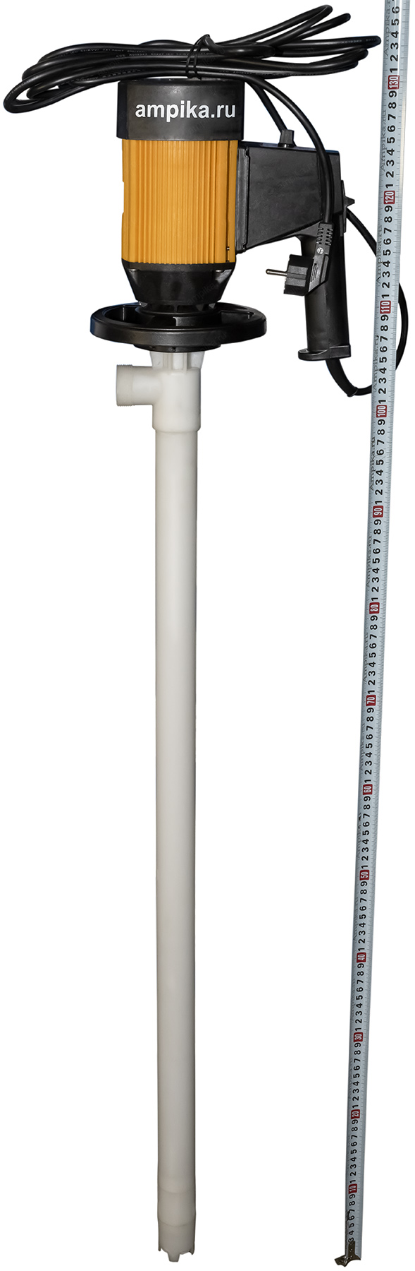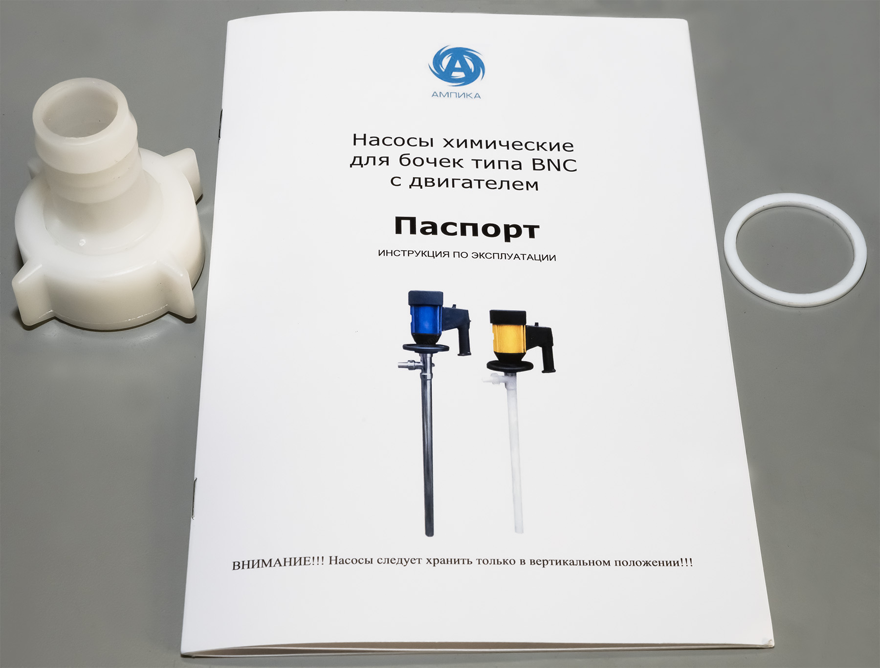 Бочковой химический насос Ампика BNC 100/28PP-1000Назначение Электрический бочковой насос BNС-100/28PP-1000 предназначен для выкачивания различных химически активных жидкостей без механических примесей из 60-литровых бочек (глубина - 700 мм) и из 200-литровых бочек (глубиной до 1000 мм). Максимальная вязкость перекачиваемой жидкости - 500 мПа*с. Следует помнить, что при перекачке вязких жидкостей может сильно уменьшиться производительность (подача и напор) насоса. Диаметр погружной части - 42 мм, штуцер на выходе из насоса - под шланг внутренним диаметром 25 мм. Этот насос не имеет уплотнения вала (при работе насоса жидкость не доходит до подшипникового узла). ВНИМАНИЕ! Насос следует хранить только в вертикальном положении!!! Хранение в горизонтальном положении может привести к попаданию перекачиваемой жидкости в подшипниковый узел. ВНИМАНИЕ! При работе насоса в паре с пневматическим двигателем, рабочие параметры подачи и напора химического бочкового насоса уменьшаются примерно на 50%. При выборе насоса ОБЯЗАТЕЛЬНО проконсультируйтесь с нашими специалистами! Расшифровка обозначения BNС 100/28PP-1000: «BNС» – бочковой насос химический, «100» - максимальная производительность 100 л/мин., «28» - максимальный напор, м, «PP» - корпус из полипропилена, вал из хастеллоя, крыльчатки из PTFE, «1000» - длина погружной части в миллиметрах. Насосы серии BNC поставляются в сборе с электродвигателями мощностью 800 Вт и оборотами 10000 об./мин. (IP44), с возможностью регулировки оборотов. *Возможна комплектация любого насоса пневматическим двигателем 375 Вт х 1000 об./мин или взрывозащищенным электродвигателем. ВНИМАНИЕ! Электродвигатели коллекторного типа. Режим работы - кратковременный: на максимальных оборотах не более 3 минут (достаточно, чтобы откачать бочку 200 литров), на оборотах 80% от номинала - не более 10-15 минут с перерывом на охлаждение. В таблице приведены габариты и вес упаковочной коробки. Параметры голого насоса в сборе: • длина: 250 мм, • ширина: 170 мм, • высота: 1300 мм, • вес: 5 кг. Паспорт насоса (его инструкция по эксплуатации) вложен в корробку. Другие модели этого типа
