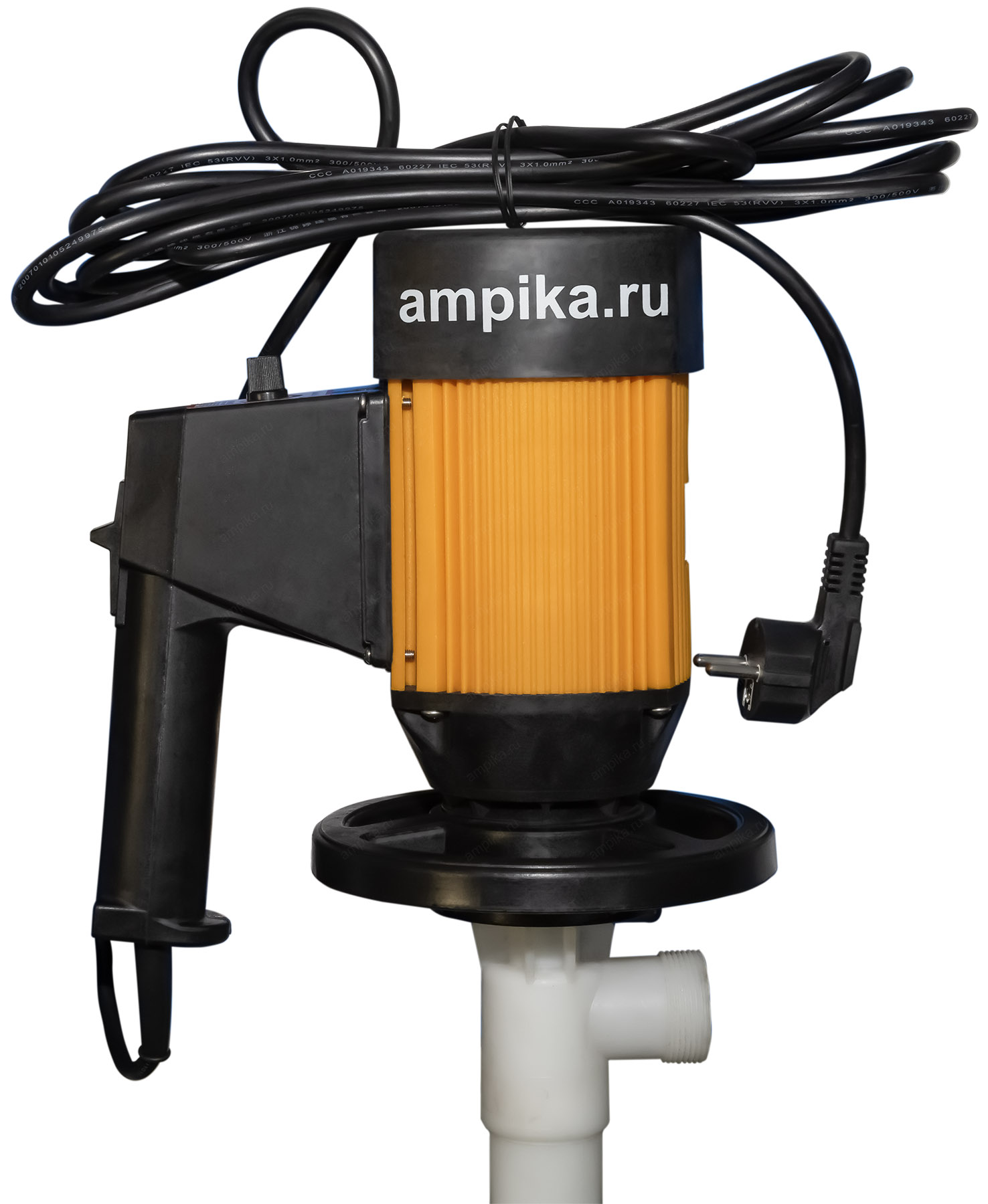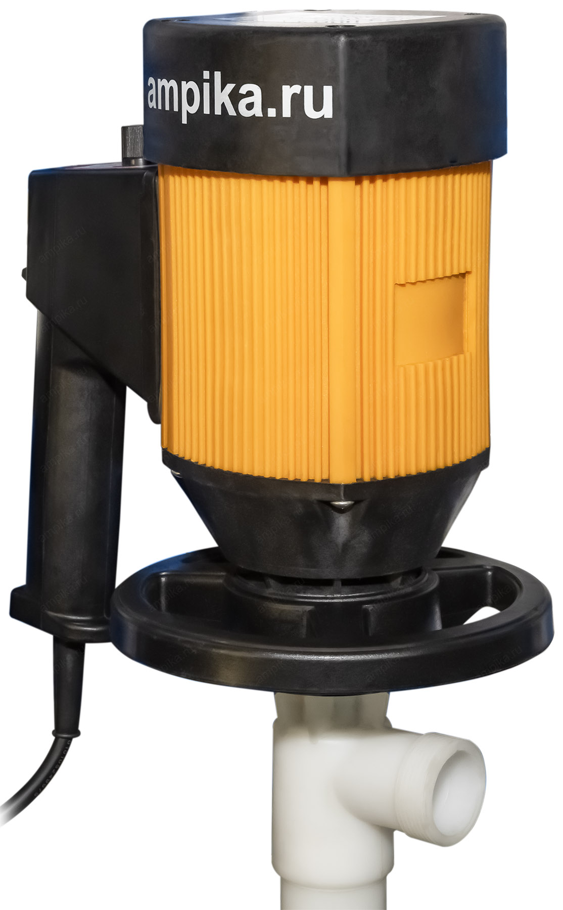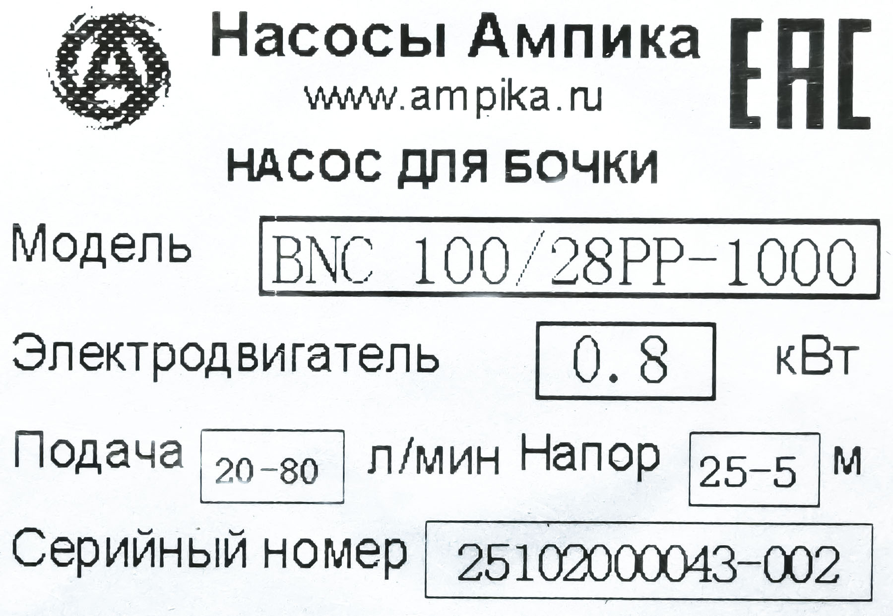 Бочковой химический насос Ампика BNC 100/28PP-1000Назначение Электрический бочковой насос BNС-100/28PP-1000 предназначен для выкачивания различных химически активных жидкостей без механических примесей из 60-литровых бочек (глубина - 700 мм) и из 200-литровых бочек (глубиной до 1000 мм). Максимальная вязкость перекачиваемой жидкости - 500 мПа*с. Следует помнить, что при перекачке вязких жидкостей может сильно уменьшиться производительность (подача и напор) насоса. Диаметр погружной части - 42 мм, штуцер на выходе из насоса - под шланг внутренним диаметром 25 мм. Этот насос не имеет уплотнения вала (при работе насоса жидкость не доходит до подшипникового узла). ВНИМАНИЕ! Насос следует хранить только в вертикальном положении!!! Хранение в горизонтальном положении может привести к попаданию перекачиваемой жидкости в подшипниковый узел. ВНИМАНИЕ! При работе насоса в паре с пневматическим двигателем, рабочие параметры подачи и напора химического бочкового насоса уменьшаются примерно на 50%. При выборе насоса ОБЯЗАТЕЛЬНО проконсультируйтесь с нашими специалистами! Расшифровка обозначения BNС 100/28PP-1000: «BNС» – бочковой насос химический, «100» - максимальная производительность 100 л/мин., «28» - максимальный напор, м, «PP» - корпус из полипропилена, вал из хастеллоя, крыльчатки из PTFE, «1000» - длина погружной части в миллиметрах. Насосы серии BNC поставляются в сборе с электродвигателями мощностью 800 Вт и оборотами 10000 об./мин. (IP44), с возможностью регулировки оборотов. *Возможна комплектация любого насоса пневматическим двигателем 375 Вт х 1000 об./мин или взрывозащищенным электродвигателем. ВНИМАНИЕ! Электродвигатели коллекторного типа. Режим работы - кратковременный: на максимальных оборотах не более 3 минут (достаточно, чтобы откачать бочку 200 литров), на оборотах 80% от номинала - не более 10-15 минут с перерывом на охлаждение. В таблице приведены габариты и вес упаковочной коробки. Параметры голого насоса в сборе: • длина: 250 мм, • ширина: 170 мм, • высота: 1300 мм, • вес: 5 кг. Паспорт насоса (его инструкция по эксплуатации) вложен в корробку. Другие модели этого типа