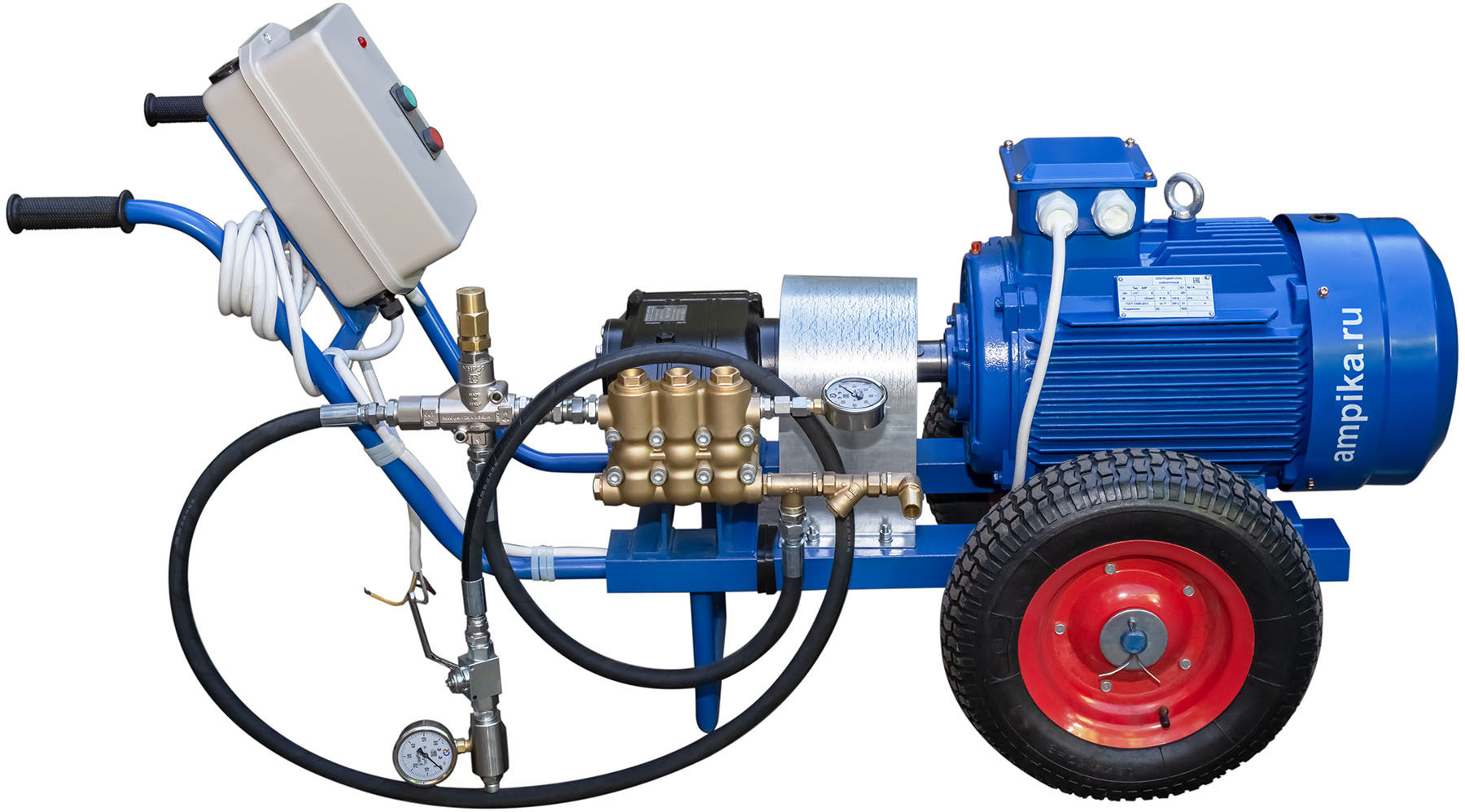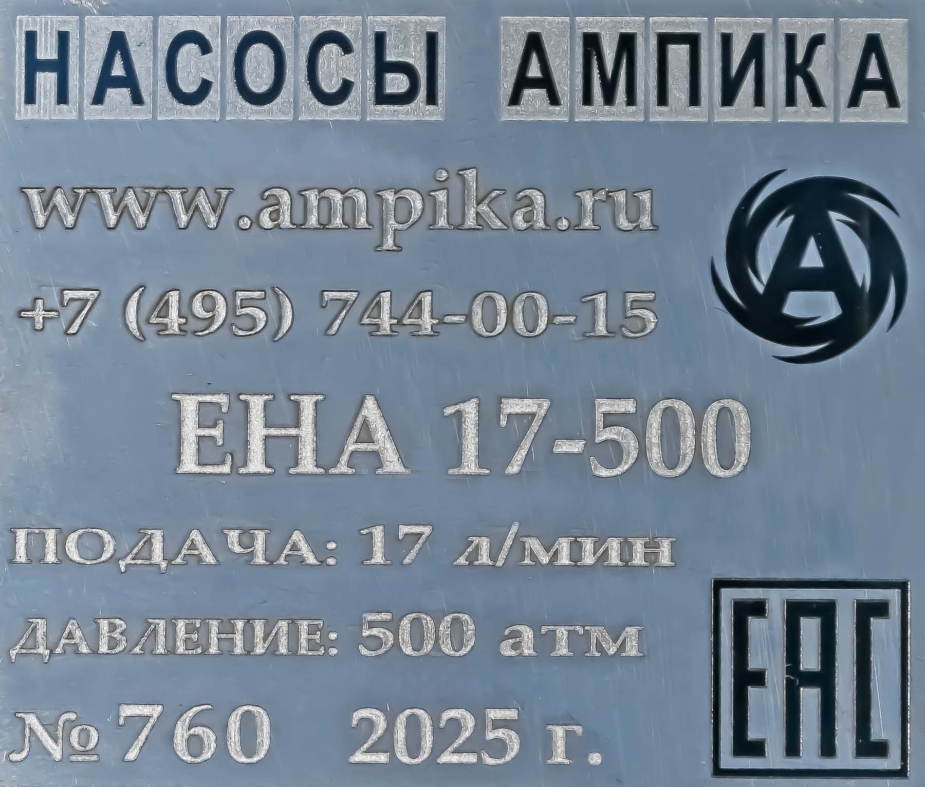 ![]() ![]() Опрессовщик Ампика ЕНА 17-500Мощный промышленный насос высокого давления и большой подачи ЕНА-17-500 предназначен для заполнения гидросистем и проведения гидроиспытаний различного оборудования давлением до 500 атмосфер. Конструктивно агрегат выполнен на базе трёхпоршневого насоса итальянского производства. Установка снабжена перепускным клапаном (байпасом) для регулировки выходного давления, фильтром на входе и манометром, который показывает давление насоса. В комплект поставки входит напорный шланг длиной 2 метра с запорной арматурой, с наружной резьбой 3/8`` BSP на выходе и манометром после задвижки. Это позволяет осуществить гидроиспытание: создать требуемое давление в испытуемом объекте, закрыть задвижку и смотреть возможное падение давления. Это готовая к использованию промышленная передвижная установка для создания большого давления на тележке. Мощность электродвигателя - 18,5 кВт. Насос является аналогом насоса Компакт-500-Электро, обладая при этом рядом преимуществ: - большая скорость подачи жидкости, - более низкая цена (ниже в 1,5 раза), - хорошая ремонтопригодность и доступность запасных частей, - соединение насоса с двигателем через муфту, что позволяет легко заменять только проточную часть (насос высокого давления) или электродвигатель в случае выхода из строя, - российский электродвигатель по ГОСТ (стоит в 4 раза дешевле, чем DIN у насоса Компакт-500-Электро), - удобная тележка для перевозки насоса (ручки выше: не находятся на уровне колен и не упираются в ноги), - пульт управления с защитой IP65 и тепловым реле, - манометры с поверкой, которые возможно снимать и сдавать для проведения поверки (у Компакт-500-Электро они вклеены). Для сброса давления после гидроиспытаний, возможна комплектация насоса клапаном сброса давления. Расшифровка обозначения ЕНА 17-500: ЕНА - серия промышленных электрических насосов высокого давления, 17 - максимальная подача, л/мин., 500 - максимальное давление, атм. В таблице характеристик указаны размеры и вес самого агрегата в собранном виде, но без упаковки. Для расчёта стоимости доставки транспортной компанией следует использовать параметры упакованного насоса на поддоне: • габариты: 1520х800х1080 (объём = 1.31 м³). • вес: 221 кг. Паспорт (инструкция по эксплуатации насоса) вложен в его упаковку. Другие модели этого типа![]() ЕНА 11-500 409000 ₽