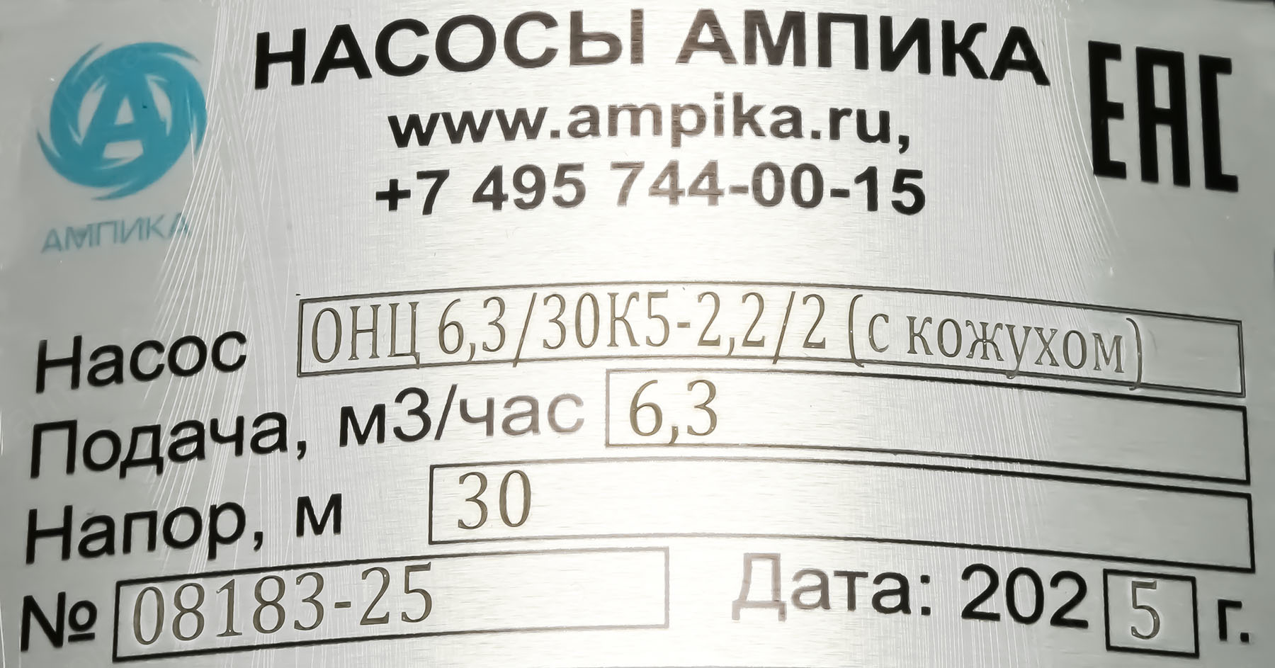 Пищевой центробежный насос ОНЦ 6,3/30К5-2,2/2 (с кожухом)