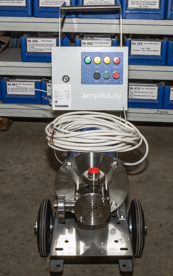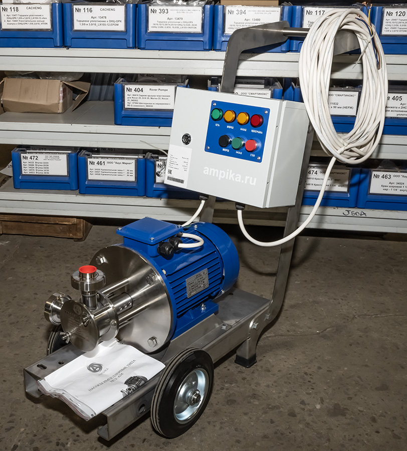 Шкаф управления для НСУ (0,55...0,75 кВт) с реверсом (380В)Щит управления с индикацией направления перекачки для насосов серии НСУ с электродвигателями мощностью 0,55 кВт и 0,75 кВт. Предназначен для защиты от перегрузки по току (тепловое реле), защиты от короткого замыкания и управления насосом в прямом и реверсивном режиме. Смонтирован в стальном ящике. Степень защиты IP54. На последних фотографиях изображён насос НСУ-1,8/12 на тележке с таким шкафом и кабелем 15 м. Другие модели этого типа