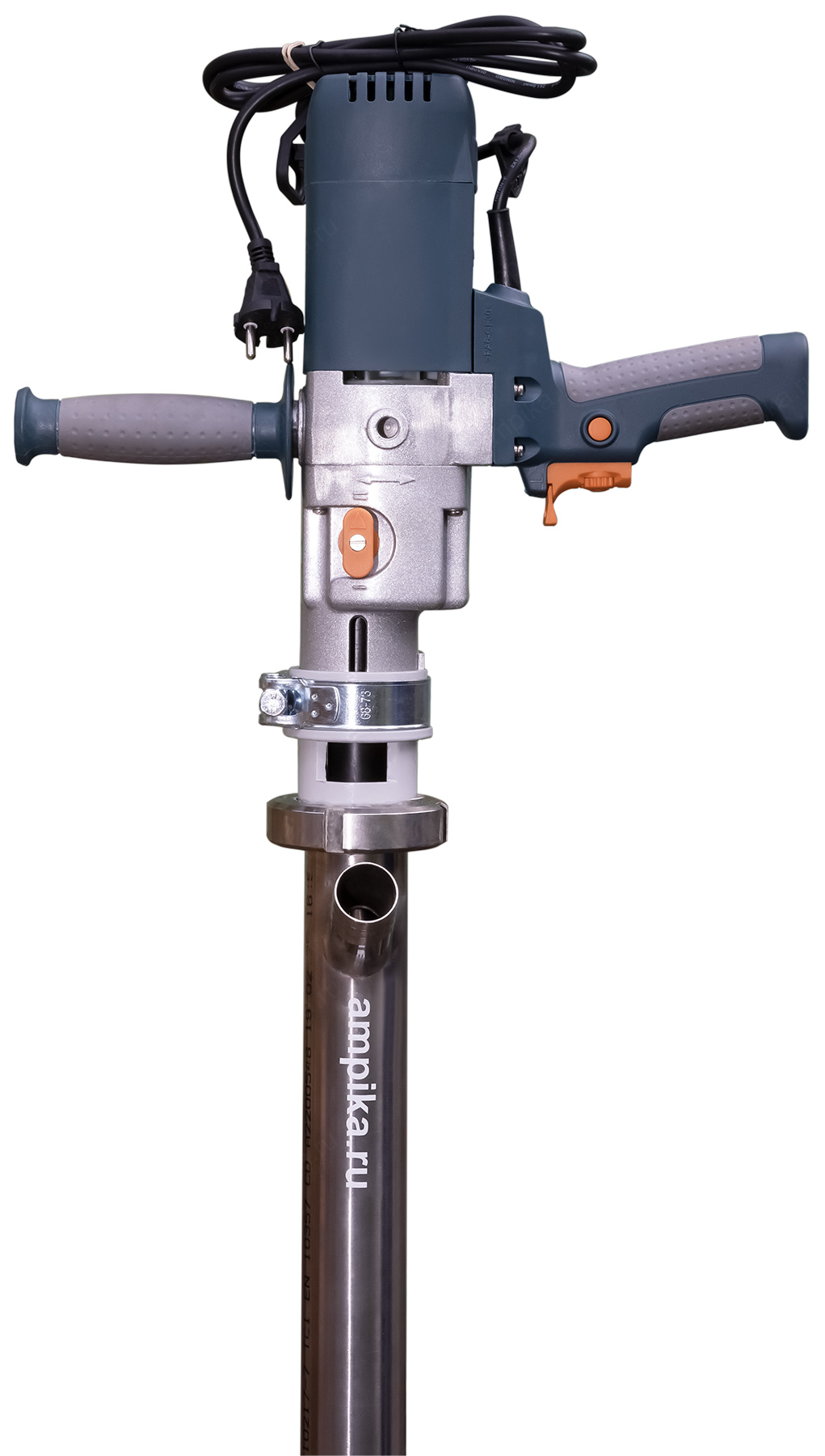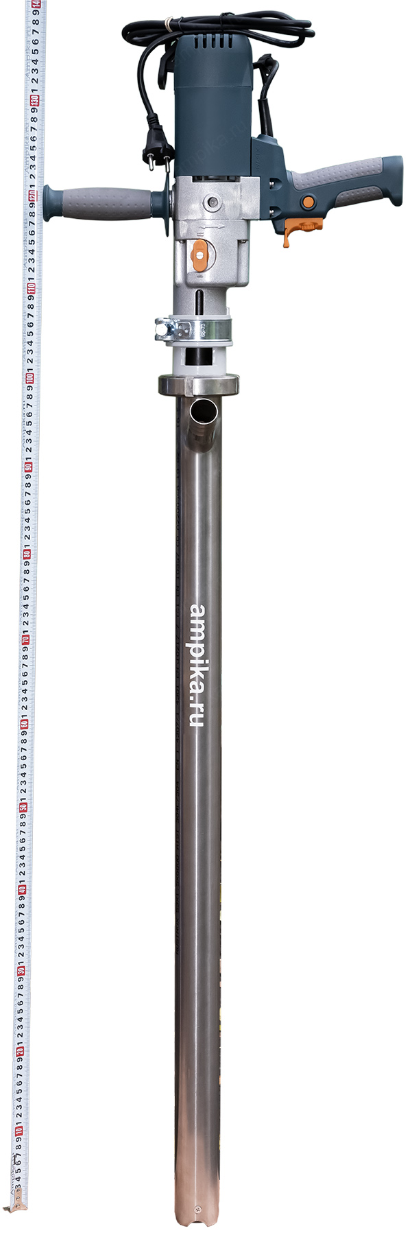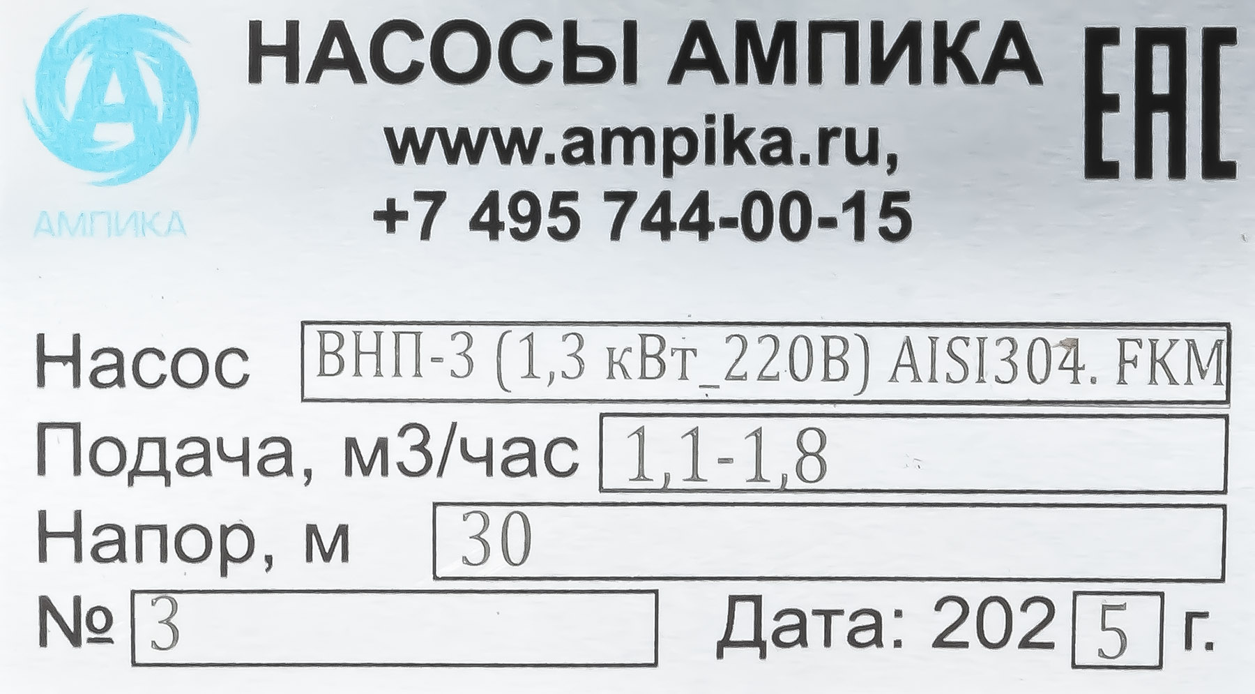 Винтовой бочковой насос Ампика ВНП-3 (1,3 кВт_220В) AISI304, FKMНазначение: Лёгкий электрический бочковой насос ВНП-3_1,3 кВт_220В_AISI304, в химическом исполнении FKM предназначен для выкачивания жидких химических веществ с вязкостью до 10000 мПа*с из бочек 200 л, 60 л, фляг (допустимая глубина погружения - до 1,2 м). Примеры перекачиваемых этим насосом жидкостей: краски, лаки, клеи на водной основе, масла, дизельное топливо, эпоксидные смолы, кислотные жидкостей с PH до 3 (ортофосфорная кислота, лимонная кислота, азотная кислота) и любые подобные жидкости, химически не агрессивные к материалам насоса. Исполнение по эластомерам: статор из фторкаучука, уплотнение вала из витона. ВНИМАНИЕ! Насос НЕ ПРЕДНАЗНАЧЕН для полиэфирных смол, отвердителей, кислот, щелочей, растворителей, хлорсодержащих жидкостей!!! Уточняйте возможность работы насоса с каждой конкретной жидкостью у наших специалистов!!! Винтовой насос на 220 вольт для выкачивания вязких веществ из бочек ВНП-3 подаёт в среднем 1,5 куба продукта в час с напором 30 метров. В качестве привода использован массовый и удобный в обращении электродвигатель от профессиональной дрели, позволяющий изменять скорость вращения ротора и подачу насоса в диапазоне от 1,1 до 1,8 м3/час. Питается от стандартной бытовой розетки. Запасные щётки идут в комплекте. Благодаря этому решению насос имеет небольшой вес и может легко транспортироваться от бочки к бочке. Технические характеристики: 1) Максимальная глубина погружения - 1200 мм (возможно изготовление с глубиной погружения до 2000 мм). 2) Размер пропускаемых частиц - до 3 мм, не более 10% по объёму. 3) Материал корпуса проточной части (погружной трубы) и внутренних деталей насоса (винт, торсион, наконечник вала электродвигателя, фланец под торцевое уплотнение): нержавейка AISI304. 4) Уплотнение вала торцевое, с парой из карбида кремния и эластомером из витона (фторкаучук). Возможна установка уплотнения из EPDM. 5) Материал обоймы: фторкаучук (витон, FKM). Возможна установка обойм из: - полиуретана (самый износостойкий материал). - пищевой резины 25-52-563 (NBR), - износостойкой МБС резины 7-В-14. 6) Наружный диаметр погружной части: 53 мм. 7) Выход насоса – штуцер под шланг Ду 38 мм. 8) Электродвигатель: щёточный, от дрели, однофазный, на 220 вольт, с возможностью регулировки оборотов. Режим работы периодический: 10-15 минут работа, затем перерыв до полного остывания электродвигателя. В комплекте идут запасные щётки электромотора и клин для съёма вала насоса, который вставляется в электропривод (там конус Морзе). Другие модели этого типа