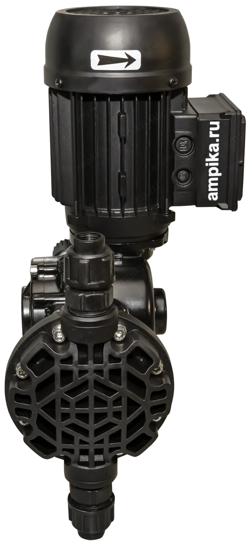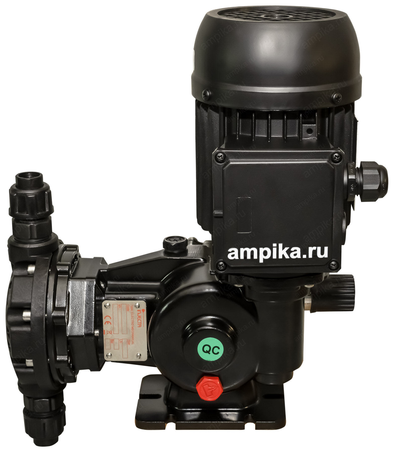 Мембранный дозирующий насос Injecta TM02094C_PP с 0,18 кВтНебольшой тихоходный промышленный дозировщик TM02094C_PP - это мембранный насос с корпусом из полипропилена и регулировкой подачи "на ходу" в диапазоне от 10% до максимума (от 0,07 до 0,7 л/мин.). Рабочая температура - до +45 ºC. Материалы проточной части: - головка насоса - полипропилен, - мембрана - тефлон (PTFE), - уплотнительные кольца - FPM, - клапаны - керамика, - сёдла клапанов - тефлон (PTFE). Расшифровка обозначения марки насоса TM02094C_PP: - "TM" - мембранный насос, - "02" - длина хода мембраны в мм, - "094" - диаметр мембраны в мм, - "C" - число ходов мембраны: 116 ходов в минуту, - "PP" - материал корпуса: полипропилен. Электродвигатель: Стандартное исполнение - трёхфазный общепромышленный, на 380 вольт, IP55. Возможна поставка насоса с однофазным электродвигателем на 220 вольт (+15000 рублей к цене), а также с электродвигателем во взрывозащищённом исполнении. В таблице характеристик насоса указаны его вес и размеры в упаковочной коробке. Параметры голого насоса: • длина: 290 мм, • ширина: 210 мм, • высота: 380 мм, • вес: 11 кг. Паспорт (инструкция по эксплуатации дозировочного насоса) вложен в его упаковочную коробку. В комплекте также идёт бутылочка трансмиссионного масла для редуктора. Для управления насосом по сигналу 4-20 mA, можно использовать 2 варианта: 1) Частотный преобразователь. С его помощью можно изменять подачу от 40% до 100% с приемлемой точностью: 1-3%. При снижении подачи частотником ниже 40%, точность дозирования начинает сильно падать, и может составлять 10-20% на подачах в диапазоне 5-20%. Также, при снижении оборотов электродвигателя ниже 600 мин⁻¹, встроенный вентилятор насоса не будет эффективно охлаждать мотор. В этом случае потребуется установка дополнительного внешнего вентилятора (можно приобрести у нас). Тем не менее, это достаточно распространённый вид управления подачей, т.к. это самый дешёвый вариант, да и не всегда требуется снижать подачу ниже 20% от номинала. 2) Специальный блок управления дозированием, который позволяет изменять подачу в диапазоне от 5 до 100%, обеспечивая точность дозирования 1-3%. Другие модели этого типа