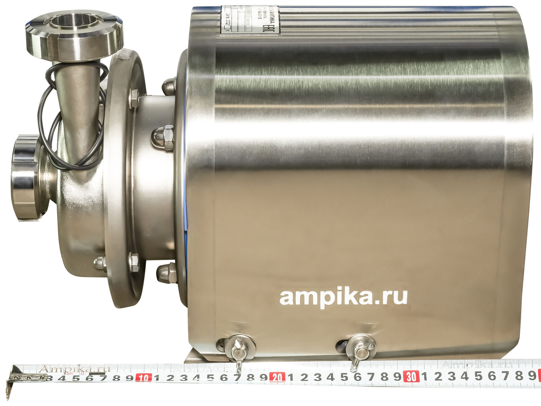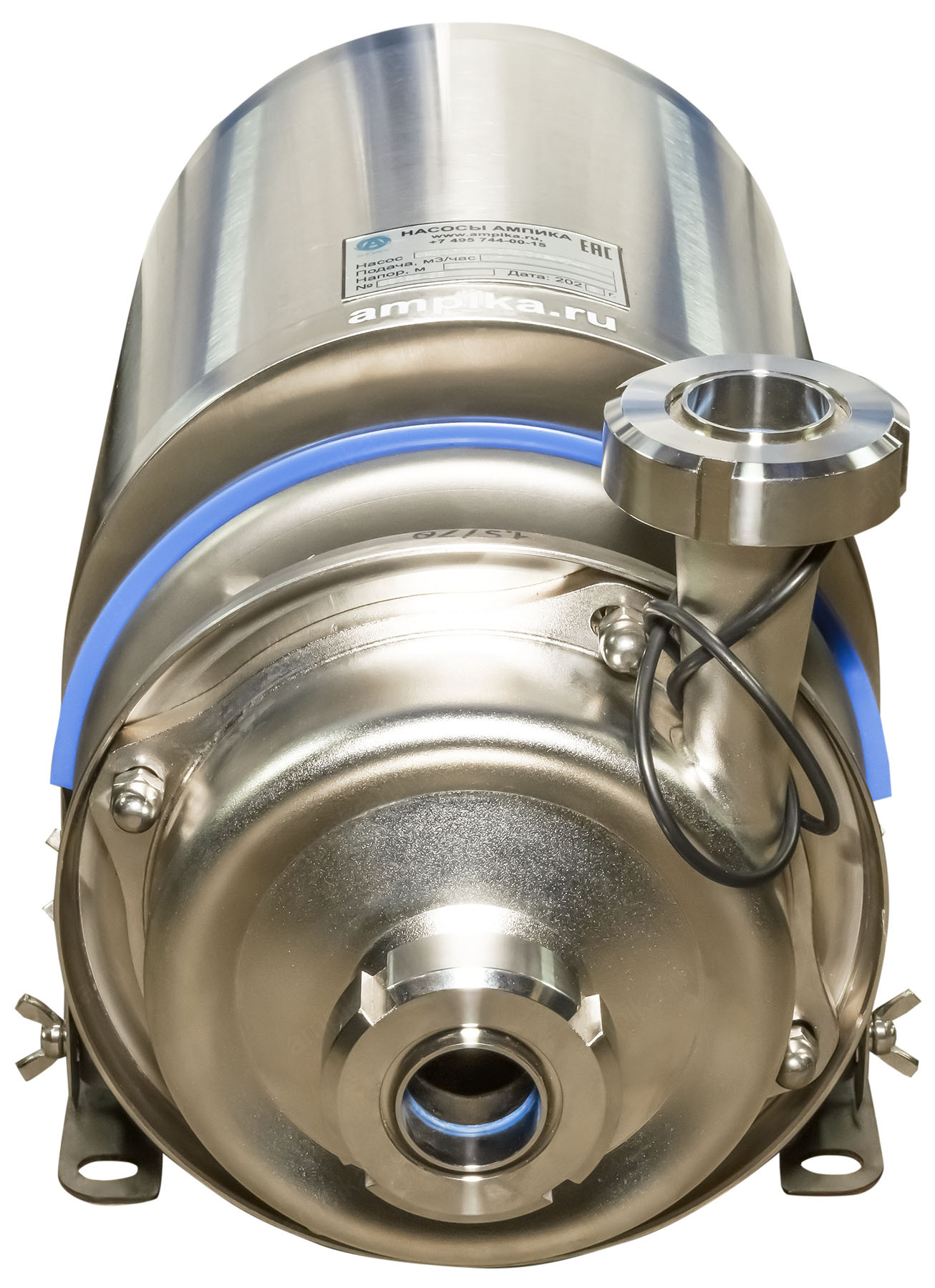 Цена с НДС 75400 ₽ Область применения: электронасосы центробежные серии ОНЦ предназначены для перекачивания молока и сходных с ним по вязкости и химической активности пищевых продуктов, соляных растворов, а также слабоагрессивных жидкостей с водородным показателем pH 5..10, и прочих нейтральных жидкостей (спирт, вино, пиво, соки, химические реактивы) с температурой не выше +105 °С (возможно изготовление до +140 °С). Концентрация механических примесей не должна превышать 0,1% по объёму, максимальный размер частиц – 0,2 мм. Поставляются как с нержавеющим кожухом на электродвигателе (написано "с кожухом"), так и без него. Рабочая камера перед пуском электронасоса в работу должна быть заполнена перекачиваемой жидкостью. По конструкции электронасосы одноступенчатые и смонтированы на фланце электродвигателя, с рабочим колесом открытого или закрытого типа. На электронасосах серии ОНЦ установлены торцевые уплотнения валов сильфонного типа. Материал проточной части: Корпус насоса, рабочее колесо, крышка корпуса, втулка вала, гайка колеса - из нержавеющей стали 12Х18Н10Т. Электродвигатель: по умолчанию электродвигатель насоса фланцевый или комбинированный общепромышленного исполнения. При комплектации двигателями во взрывозащищённом исполнении насосы можно использовать для перекачивания спирта, водки. Возможна комплектация рубашкой парового или электрообогрева, кожухом электродвигателя из нержавеющей стали, двойным торцевым уплотнением с автономным охлаждением. Дополнение к описанию: Небольшой промышленный центробежный насос ОНЦ-1,5/20К5-0,75/2 (с кожухом) предназначен для перекачивания воды и схожих с ней по вязкости жидких пищевых продуктов. Маленький промышленный пищевой насос с кожухом из нержавейки, с пищевым сертификатом. Электродвигатель общепромышленный трёхфазный, на 380 вольт, закрыт кожухом согласно нормам пищевых производств. Кожух электродвигателя съёмный, крепится четырьмя барашками. Вход-выход - молочные гайки Ду32. В комплекте идёт запасная прокладка корпуса насоса. Другие модели этого типа