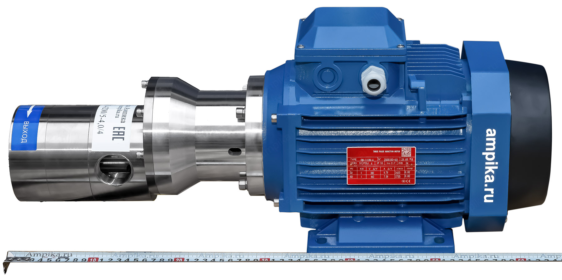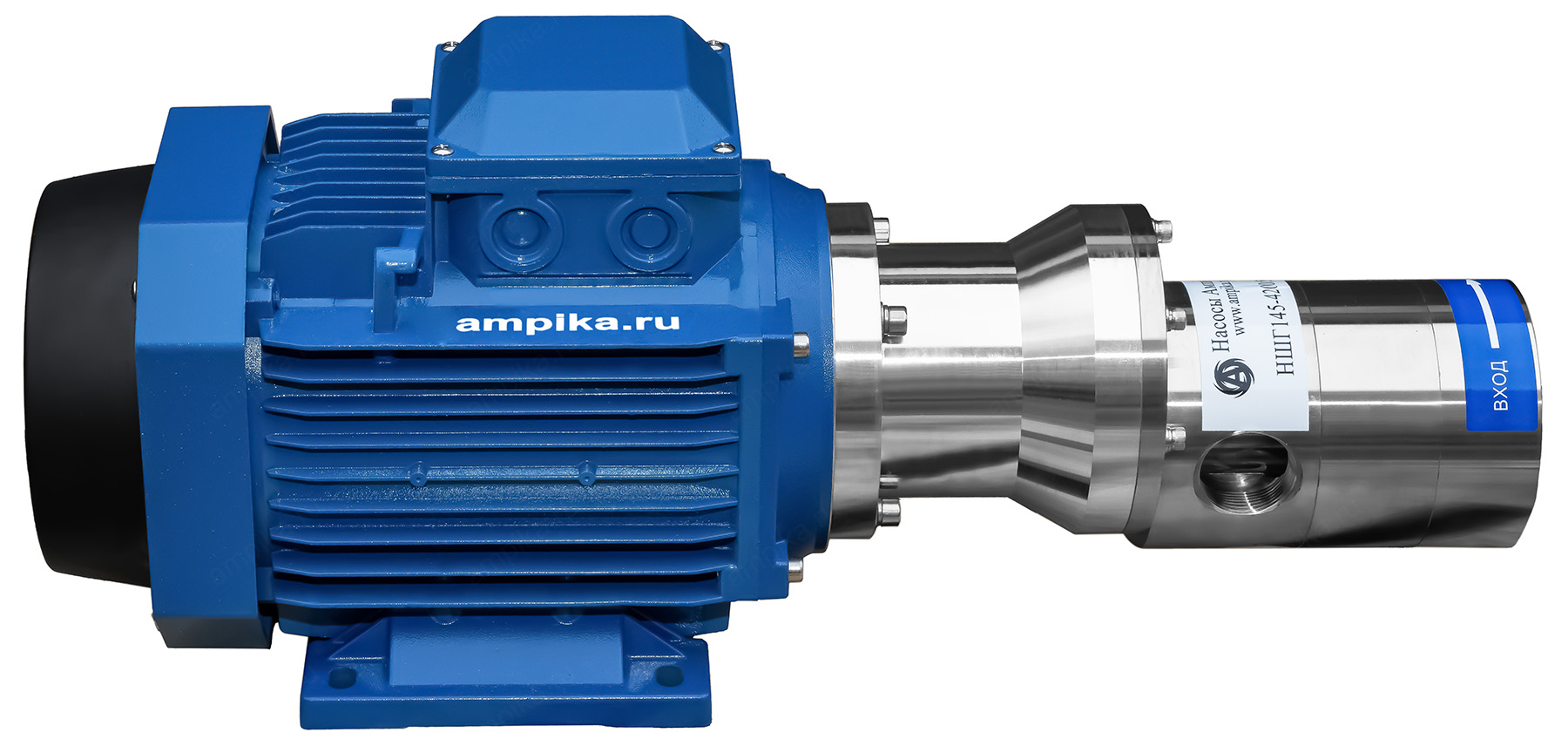 Промышленный шестерённый насос Ампика НШГ145-4200/5-4,0/4Мощный промышленный герметичный шестерённый насос с магнитной муфтой НШГ145-4200/5-4,0/4 предназначен для перекачивания различных жидкостей средней вязкости, химически не агрессивных к материалам насоса, без абразивных включений. Привод шестерни насосной части осуществляется с помощью магнитного поля сквозь герметичную стенку, то есть в насосе отсутствует такая уязвимая для химических насосов деталь, как уплотнение вала. Это самый большой насос из линейки шестерённых насосов НШГ. Примеры перекачиваемых жидкостей: вода, удобрения, масла, дизельное топливо, присадки, полиэфирные смолы, некоторые не хлорсодержащие кислоты (далеко не все - уточняйте у наших менеджеров), щёлочи и т.п. При установке взрывозащищенного электродвигателя возможна перекачка спиртов, растворителей. При перекачке жидкостей с низкой вязкостью (до 500 мПа*с), возможна установка электродвигателя со скоростью вращения вала 2900 об./мин. - подача насоса увеличится в 2 раза. Максимальная вязкость перекачиваемого вещества: 3000 мПа*с (зависит от оборотов, типоразмера головы и гидравлической схемы конкретного применения) при температуре от -40˚С до +70˚С. Насос самовсасывающий (высота самовсасывания - до 2 метров). Материалы конструкции проточной части: • корпус насоса, вал - нержавеющая сталь марки AISI 316L, • шестерни и втулка вала - PEEK, • прокладки корпуса - из PTFE, • втулка магнитной муфты - PPS. Электродвигатель общепромышленного исполнения, трёхфазный, на напряжение 380 вольт. Входной и напорный патрубки с внутренней трубной резьбой "дюйм с четвертью". Расшифровка условного обозначения насоса НШГ-145-4200/5-4,0/4: - «НШГ» – насос шестерённый герметичный, - «145» – типоразмер насосной части, - «4200» - максимальная производительность насоса в литрах в час, - «5» - давление насоса в средней рабочей точке в атмосферах, - «4,0» - мощность электродвигателя в киловаттах, - «4» - число полюсов электродвигателя (скорость вращения вала при частоте тока 50 Гц - 1450 об./мин.). Насос является прецизионным, что даёт возможность использовать его в качестве дозатора жидкостей при установке частотного преобразователя и дополнительного внешнего вентилятора охлаждения электромотора. В таблице характеристик насоса указаны его размеры и вес в упаковочной коробке. Параметры голого насоса: • длина: 640 мм, • ширина: 205 мм, • высота: 275 мм, • вес: 47,8 кг. Паспорт (инструкция по эксплуатации насоса) вложен в его упаковочную коробку. Другие модели этого типа