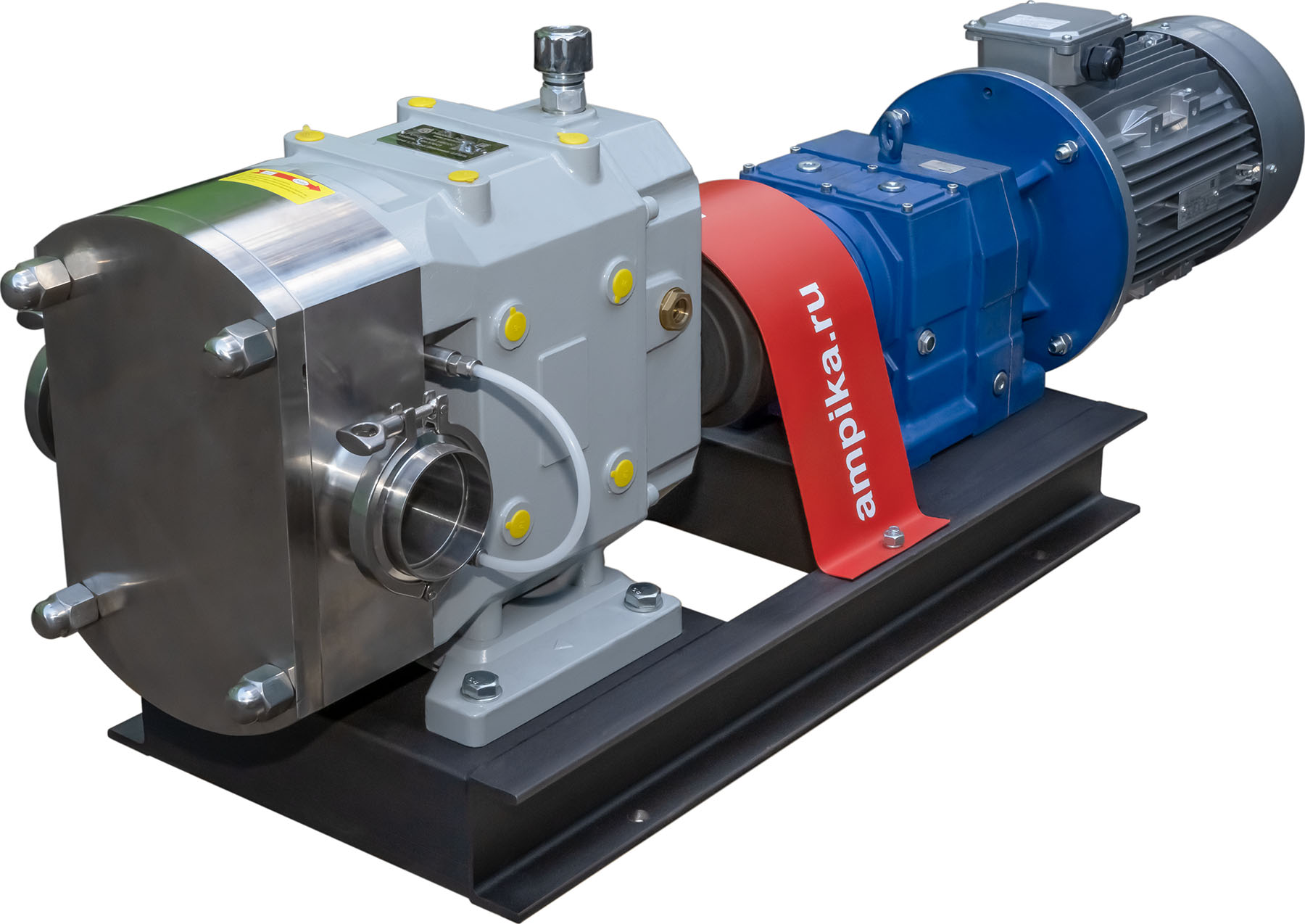 ![]() ![]() Кулачковый насос Ампика КН-070-П-МР (333) с э/д 5,5 кВтКулачковые насосы типа КН предназначены для перекачивания вязких жидкостей (максимальная вязкость до 100 000 мПа*с) при температуре до +120ºC. Насосы КН могут бережно перекачивать пищевые жидкости без разрушения их структуры. Проточная часть, роторы, вал изготовлены из пищевой стали AISI316, уплотнение вала - торцевое (SIC-SIC-Viton или TC-SIC-Viton). Обработка внутренних поверхностей насоса: Ra 3,2-1,6. В стандартном исполнении насосы комплектуются трёхлепестковыми или двухлепестковыми роторами. Поставляются как с рубашкой обогрева ("РО"), так и без неё. Кулачковые насосы - это насосы объёмного типа. То есть подача зависит от оборотов, давление - от мощности привода, вязкости и многих других параметров. Исполнение конкретного насосного агрегата (обороты валов роторов, мощность электродвигателя, создаваемое давление) зависит от свойств жидкости, сопротивления трубопроводов, температуры и подбирается после расчёта. Вход/выход - клампы с ответной частью под приварку (см. размеры в таблице). ВНИМАНИЕ!!! Давление, указанное в таблице, насосы развивают при вязкости жидкости от 1000 мПа*с. При низких оборотах и низкой вязкости давление на выходе насоса может сильно упасть. Для правильного подбора оборудования обращайтесь к нашим специалистам! В продаже есть как готовые решения (насосы с мотор-вариатором), так и отдельно "голые головы" насосов, которые по желанию клиента мы можем агрегатировать с мотор-редукторами после проведения расчётов по каждому конкретному техзаданию. В насосах в исполнении с мотор-вариатором ("МВ") возможна механическая регулировка подачи. В таблице указаны возможные диапазоны подачи насосов и создаваемого давления. Размеры пропускаемых частиц: - для 3-х лепестковых роторов: до 8 мм для КН-006, до 11 мм для КН-015, до 13 мм для КН-032, до 17 мм для КН070, до 26 мм для КН-170, до 30 мм для КН320, КН-520 и КН-830, - для 2-х лепестковых роторов: до 13 мм для КН-006, до 17 мм для КН-015, до 20 мм для КН-032, до 26 мм для КН070, до 40 мм для КН-170, до 46 мм для КН320, КН-520 и КН-830, Возможно доработать насосы (кроме КН-006) и установить вспомогательное уплотнение для возможности промывки торцевого уплотнения. Данная опция оговаривается при заказе. ВНИМАНИЕ!!! При большой вязкости и большом давлении, может потребоваться установка "головы" большего типоразмера. Для правильного подбора оборудования обращайтесь к нашим специалистам. Расшифровка обозначения: КН-015-П/РО-МВ(МР) (2К)(ПГ) (200-500) с э/д 1,5 кВт - "КН" - кулачковый насос, - "015" - производительность насоса в литрах за 100 оборотов вала насоса (015 = 0,15 л/оборот), - "П" - с возможностью промывки уплотнения, - "РО" - с рубашкой водяного обогрева (без "РО" - без обогрева), - "МВ" - с мотор-вариатором (с возможностью плавно изменять скорость вращения вала насоса), - "МР" - с мотор-редуктором (с фиксированными оборотами), - "(2К)" - с двухкулачковыми роторами типа бабочка (серповидными), - "(ПГ)" - с прямоугольной горловиной, - "(200-500)" - диапазон регулировки оборотов на вариаторе в об./мин., - "с э/д 1,5 кВт" - мощность электродвигателя, - "б/д, б/р" - без двигателя, без рамы: просто "голова" (проточная часть) насоса, без мотор-редуктора, муфты. Параметры на агрегаты указаны при вязкости от 1000 мПа*с на давлении 5 атм. ВНИМАНИЕ!!! Насосные агрегаты КН-006-МВ (200-800) с э/д 0,75 кВт имеют повышенные обороты и могут применяться для вязких жидкостей при оборотах до 3