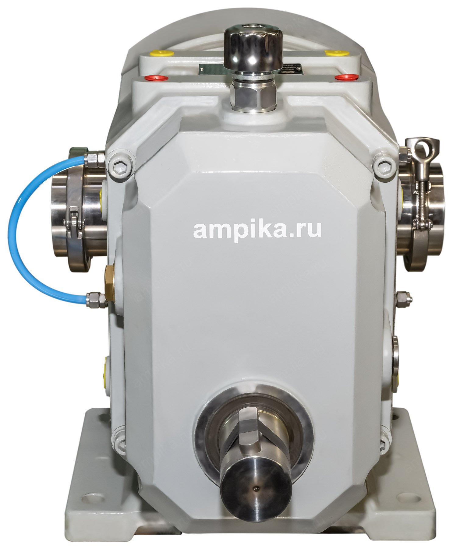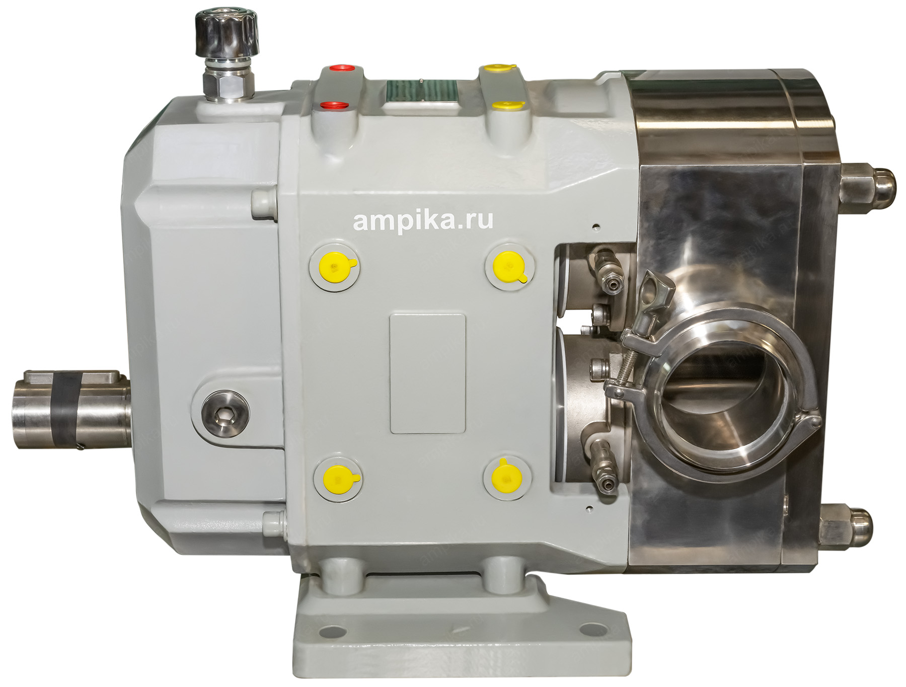 Кулачковый насос Ампика КН-170-П б/д, б/рБольшой промышленный насос из нержавеющей стали кулачкового принципа действия КН-170-П способен перекачивать различные жидкие вещества вязкостью до 100 000 мПа*с и температурой до +120 ºC. В зависимости от привода, он может перекачивать до 40 кубометров жидкости за час, создавая на своём выходе давление до 15 атмосфер. Параметры каждого конкретного насосного агрегата зависят от многих факторов - консультируйтесь с нашими специалистами. Такой тихоходный пищевой насос может бережно перекачивать пищевые продукты без разрушения их структуры. Подходит для вязких и горячих жидкостей. Это насос с возможностью промывки узла уплотнения, без рубашки обогрева. Проточная часть, роторы, вал изготовлены из пищевой стали AISI316, уплотнение вала - торцевое (SIC-SIC-Viton). Обработка внутренних поверхностей насоса: Ra 3,2-1,6. Вход/выход - клампы с ответной частью под приварку размером "три с половиной дюйма". В стандартном исполнении насос комплектуется трёхлепестковыми роторами. Максимальные размеры пропускаемых частиц: - для 3-х лепестковых роторов: до 26 мм, - для 2-х лепестковых роторов: до 40 мм. Указанное давление насос развивает при вязкости жидкости от 1000 мПа*с. При низкой вязкости перекачиваемого продукта давление на выходе насоса может сильно упасть. Для правильного подбора оборудования обращайтесь к нашим специалистам! Расшифровка обозначения марки насоса КН-170-П б/д, б/р: - "КН" - кулачковый насос, - "170" - производительность головки насоса в литрах за 100 оборотов вала (170 = 1,7 л/оборот), - "П" - с возможностью промывки узла уплотнения вала, - "б/д" - без двигателя, - "б/р" - без рамы. На чертеже диаметр вала насоса обозначен как Ø50js6. Это означает номинальный диаметр 50 мм с полем допуска js6, что представляет собой симметричное расположение допуска (js) 6-го квалитета. Для размера 50 мм js6 составляет (pm 0.008) мм (или (pm 8) мкм), то есть предельные размеры вала или отверстия находятся в диапазоне от 49.992 мм до 50.008 мм. Другие модели этого типа