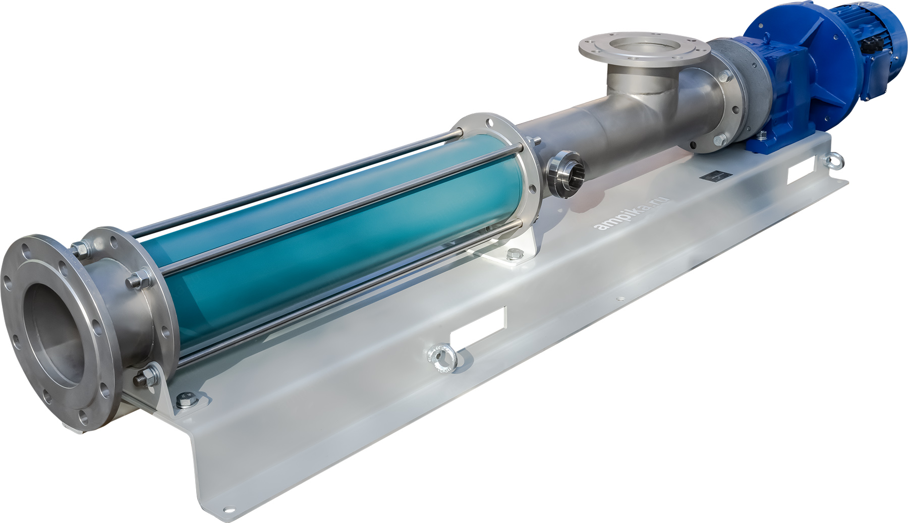 Винтовой насос Ампика ОВН-54-12,0/6-374 с 5,5 кВтВНИМАНИЕ! С указанной максимальной вязкостью могут работать не все насосы. Чем выше вязкость перекачиваемого продукта, тем меньшие обороты винта должен иметь насосный агрегат. При заказе уточняйте у менеджеров. Вход/выход - молочная муфта со штуцером под сварку. Возможно изготовление с фланцами или с клампами. Возможен вариант насосов с приёмным бункером или прямоугольной горловиной. Расшифровка условного обозначения насоса на примере ОВН-4-0,8/6-302(Ш)-(2ТБ)-(Ex)-(Р)-(О): - ОВН – одновинтовой насос; - 4 – производительность героторной пары на 100 оборотов винта в литрах; - 0,8 – производительность насоса в м³/час; - 6 – давление нагнетания, кгс/см²; - 302 – частота вращения винта, мин⁻¹; - Ш – шнековый питатель (опция); - СН – уплотнение вала - сальниковая набивка (опция); - 2Т – двойное торцевое уплотнение с промывкой из системы водопровода (опция); - 2ТБ – двойное торцевое с бачком для затворной жидкости (опция); - Ex – взрывозащищенный электродвигатель (опция); - Р – рубашка жидкостного обогрева (опция); - О – с дополнительным вентилятором принудительного охлаждения (опция). Другие модели этого типа