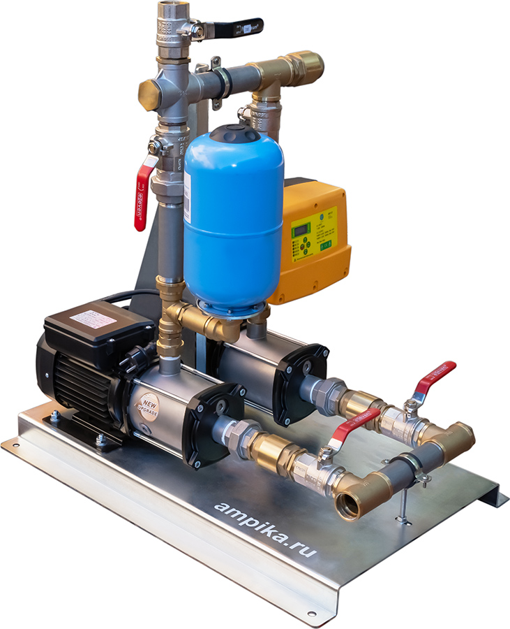 Горизонтальный многосекционный насос Ампика ЦМН 4-6 (380В)Небольшой промышленный универсальный горизонтальный шестисекционный насос ЦМН-4-6 предназначен для подачи относительно неагрессивных жидкостей под давлением до 6 атм. Многоступенчатая конструкция позволяет создавать довольно высокое давление при малых внешних габаритах. Он несамовсасывающий, работает под заливом, может всасывать жидкость с глубины, если будут полностью залиты всасывающий шланг и проточная часть насоса. Это самый мощный из четырёхкубовых насосов ЦМН, создаёт наибольший напор. Перекачиваемые жидкости: Вода, соки, некоторые разбавленные кислотные жидкости (какие именно - уточняйте возможность у продавца насоса), в том числе горячие, которые не активны с материалами насоса, без механических включений и волокон. Насос не предназначен для перекачки растворителей и вязких жидкостей. Рабочие характеристики: Оптимальный режим перекачки: подача 3,5 кубометра воды в час с создаваемым давлением 5 атмосфер. Температура перекачиваемой среды: -15°C…+120°C. Температура окружающей среды: -15°C…+40°C. Максимальное давление в насосе: 1,0 МПа (10 атмосфер). Плотность перекачиваемой жидкости: до 1100 кг/м³. Материал проточной части: нержавеющая сталь AISI304 (все детали, которые контактируют с жидкостью). Уплотнение вала: торцевое, керамика – графит – EPDM. Входной патрубок: с внутренней трубной резьбой "дюйм с четвертью". Напорный патрубок: внутренняя резьба "один дюйм". Электродвигатель: Полностью закрытый вентилируемый двухполюсный трёхфазный электромотор мощностью 1300 ватт. Класс защиты: IP 55. Класс изоляции: F. Режим работы: S1 (продолжительный, без частых включений/выключений). Напряжение: 380 вольт. Расшифровка обозначения модели на примере насоса "ЦМН 4-6 (380В)": «ЦМН» – Центробежный Многосекционный Насос, «4» - номинальная производительность насоса в м³/час, «6» - количество ступеней насоса, «380В» - питание трёхфазного электродвигателя насоса 380 вольт. Паспорт (инструкция по эксплуатации насоса) вложен в упаковочную коробку. Другие модели этого типа