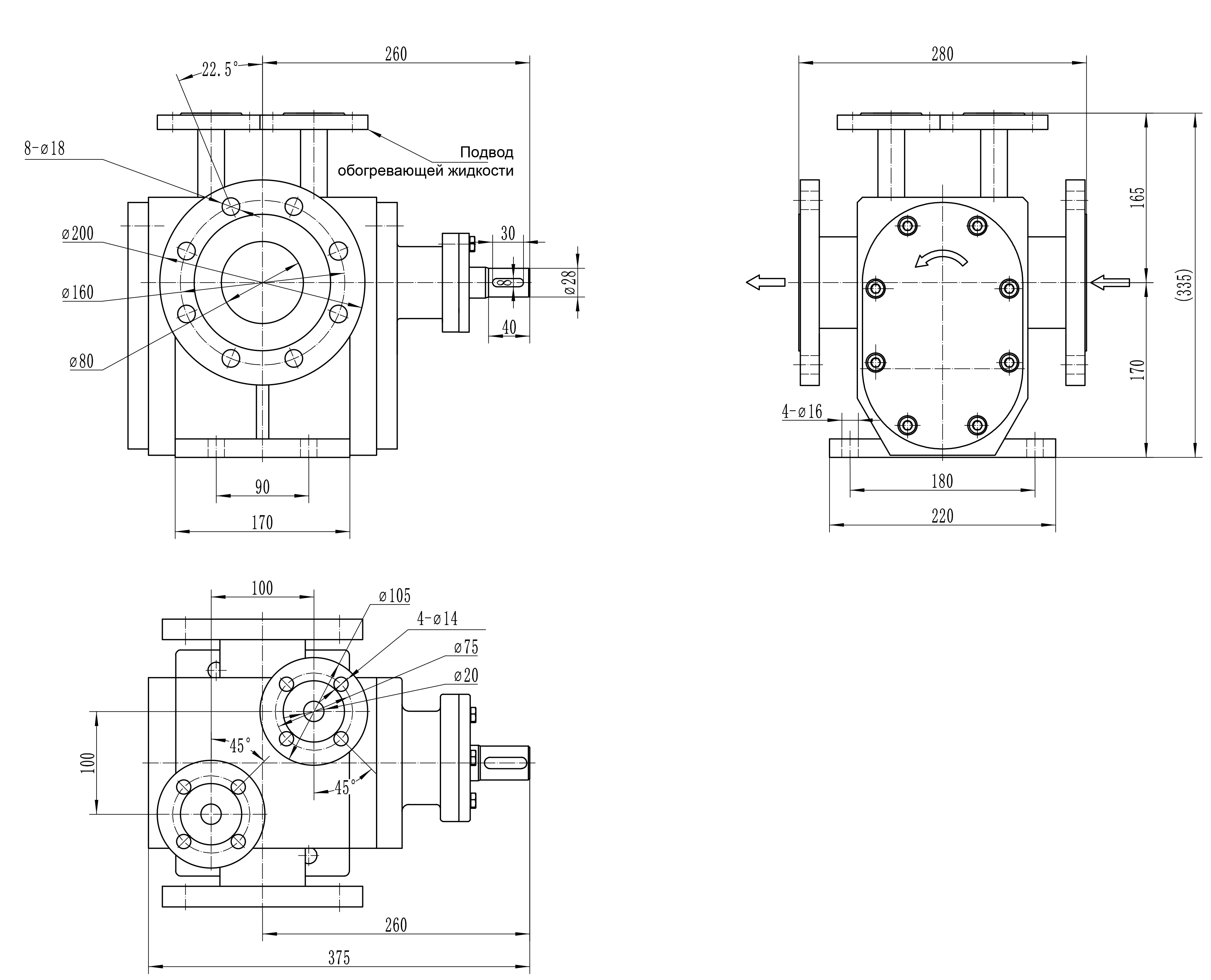 Шестерённый насос Ампика НШР-29-Ст (+300С) б/д, б/рБольшой промышленный высокотемпературный шестерёнчатый насос с рубашкой обогрева НШР-29-Ст предназначен для перекачивания химически нейтральных жидкостей с вязкостью от 5 до 1500 сСт, таких как мазут, битум, клей, краски (в т.ч. на растворителях), канифоль, парафин, воск, жир, масла и подобных жидкостей, химически не агрессивных к материалам насоса. Наличие у него рубашки жидкостного обогрева позволяет перекачивать жидкости, которые застывают (теряют текучесть) при низких температурах. Чтобы запустить насос, достаточно предварительно прогреть насосную часть жидким теплоносителем, циркулирующим в рубашке обогрева насоса. Патрубки контура обогрева выведены вверх. Высота самовсасывания – до 3 метров. Рабочая температура - до +300ºC. Производительность насоса при скорости вращения вала 1500 оборотов в минуту - 500 литров в минуту. Максимальное создаваемое насосом давление - 8 атмосфер. Уплотнение вал насоса – сальниковая набивка (3 кольца) + вспомогательное манжетное уплотнение. Валы вращаются на шарикоподшипниках. Условное обозначение: НШР-29-Ст (+300С) НШР – насос шестерённый с рубашкой жидкостного обогрева, 29 – подача в м³/час на максимальных оборотах 1500 об./мин., Ст – корпус из стали, +300ºC – максимальная температура перекачиваемой жидкости. Конструкционные материалы: - проточная часть – сталь Q235 (Ст3), - вал – сталь Ст45, - шестерни – сталь 40Cr. В таблице характеристик насоса указаны его вес и размеры в упаковочной коробке. Параметры голого насоса: • длина: 490 мм, • ширина: 280 мм, • высота: 335 мм, • вес: 71 кг. Это "голая" насосная часть от промышленных электронасосных агрегатов. Подача агрегата будет напрямую зависеть от скорости вращения вала электродвигателя. Обычный срок сборки готового агрегата - 3 дня. Другие модели этого типа