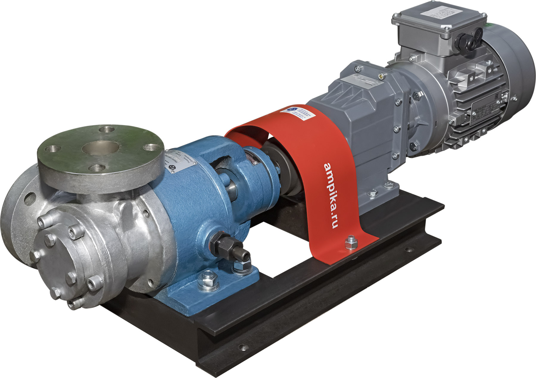 Шестерённый насос Ампика НШВ-80,0/РО-Ч-С/МР-224 (до 20000 мПа*с)Такие насосы применяются в различных областях нефтяной и химической промышленностях, для перекачивания густых красок, густой смазки, вязких герметиков, битумов, лаков, паст, масел и т.п. В нержавеющем исполнении: косметики (кремов, зубной пасты и т.п) и пищевых продуктов (мёд, патока, вязкие начинки карамельные и т.п.). Насосы имеют рубашку обогрева, что позволяет перекачивать жидкости, которые могут застывать при низкой температуре после остановки насоса. Для запуска насоса достаточно разогреть продукт внутри насоса, используя жидкий теплоноситель, который подаётся в рубашку обогрева. Условное обозначение: НШВ-7,0/РО-Ч-С/МР-604 (до 20000 мПа*с)