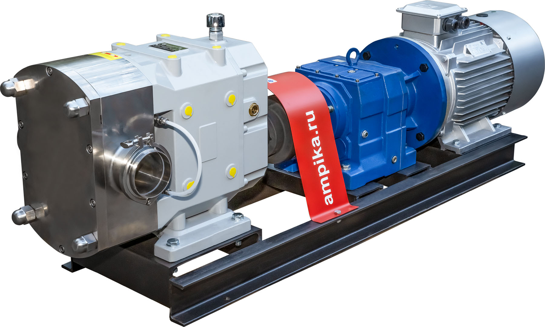 ![]() ![]() КН-015-П/РЭО б/д, б/р (с электрообогревом)Кулачковые насосы типа КН предназначены для перекачивания вязких жидкостей (максимальная вязкость до 100 000 мПа*с) при температуре до +120ºC. Насосы КН могут бережно перекачивать пищевые жидкости без разрушения их структуры. Проточная часть, роторы, вал изготовлены из пищевой стали AISI316, уплотнение вала - торцевое (SIC-SIC-Viton или TC-SIC-Viton). Обработка внутренних поверхностей насоса: Ra 3,2-1,6. В стандартном исполнении насосы комплектуются трёхлепестковыми или двухлепестковыми роторами. Поставляются как с рубашкой обогрева ("РО"), так и без неё. Кулачковые насосы - это насосы объёмного типа. То есть подача зависит от оборотов, давление - от мощности привода, вязкости и многих других параметров. Исполнение конкретного насосного агрегата (обороты валов роторов, мощность электродвигателя, создаваемое давление) зависит от свойств жидкости, сопротивления трубопроводов, температуры и подбирается после расчёта. Вход/выход - клампы с ответной частью под приварку (см. размеры в таблице). ВНИМАНИЕ!!! Давление, указанное в таблице, насосы развивают при вязкости жидкости от 1000 мПа*с. При низких оборотах и низкой вязкости давление на выходе насоса может сильно упасть. Для правильного подбора оборудования обращайтесь к нашим специалистам! В продаже есть как готовые решения (насосы с мотор-вариатором), так и отдельно "голые головы" насосов, которые по желанию клиента мы можем агрегатировать с мотор-редукторами после проведения расчётов по каждому конкретному техзаданию. В насосах в исполнении с мотор-вариатором ("МВ") возможна механическая регулировка подачи. В таблице указаны возможные диапазоны подачи насосов и создаваемого давления. Размеры пропускаемых частиц: - для 3-х лепестковых роторов: до 8 мм для КН-006, до 11 мм для КН-015, до 13 мм для КН-032, до 17 мм для КН070, до 26 мм для КН-170, до 30 мм для КН320, КН-520 и КН-830, - для 2-х лепестковых роторов: до 13 мм для КН-006, до 17 мм для КН-015, до 20 мм для КН-032, до 26 мм для КН070, до 40 мм для КН-170, до 46 мм для КН320, КН-520 и КН-830, Возможно доработать насосы (кроме КН-006) и установить вспомогательное уплотнение для возможности промывки торцевого уплотнения. Данная опция оговаривается при заказе. ВНИМАНИЕ!!! При большой вязкости и большом давлении, может потребоваться установка "головы" большего типоразмера. Для правильного подбора оборудования обращайтесь к нашим специалистам. Расшифровка обозначения: КН-015-П/РО-МВ(МР) (2К)(ПГ) (200-500) с э/д 1,5 кВт - "КН" - кулачковый насос, - "015" - производительность насоса в литрах за 100 оборотов вала насоса (015 = 0,15 л/оборот), - "П" - с возможностью промывки уплотнения, - "РО" - с рубашкой водяного обогрева (без "РО" - без обогрева), - "МВ" - с мотор-вариатором (с возможностью плавно изменять скорость вращения вала насоса), - "МР" - с мотор-редуктором (с фиксированными оборотами), - "(2К)" - с двухкулачковыми роторами типа бабочка (серповидными), - "(ПГ)" - с прямоугольной горловиной, - "(200-500)" - диапазон регулировки оборотов на вариаторе в об./мин., - "с э/д 1,5 кВт" - мощность электродвигателя, - "б/д, б/р" - без двигателя, без рамы: просто "голова" (проточная часть) насоса, без мотор-редуктора, муфты. Параметры на агрегаты указаны при вязкости от 1000 мПа*с на давлении 5 атм. ВНИМАНИЕ!!! Насосные агрегаты КН-006-МВ (200-800) с э/д 0,75 кВт имеют повышенные обороты и могут применяться для вязких жидкостей при оборотах до 300-350 об./ми