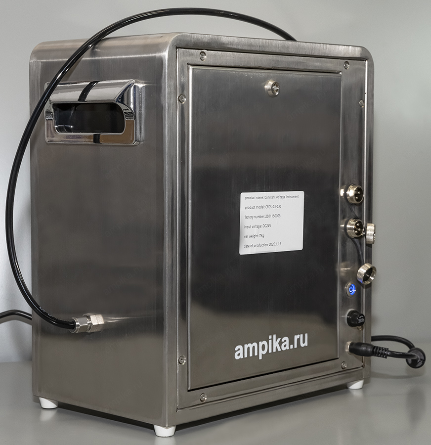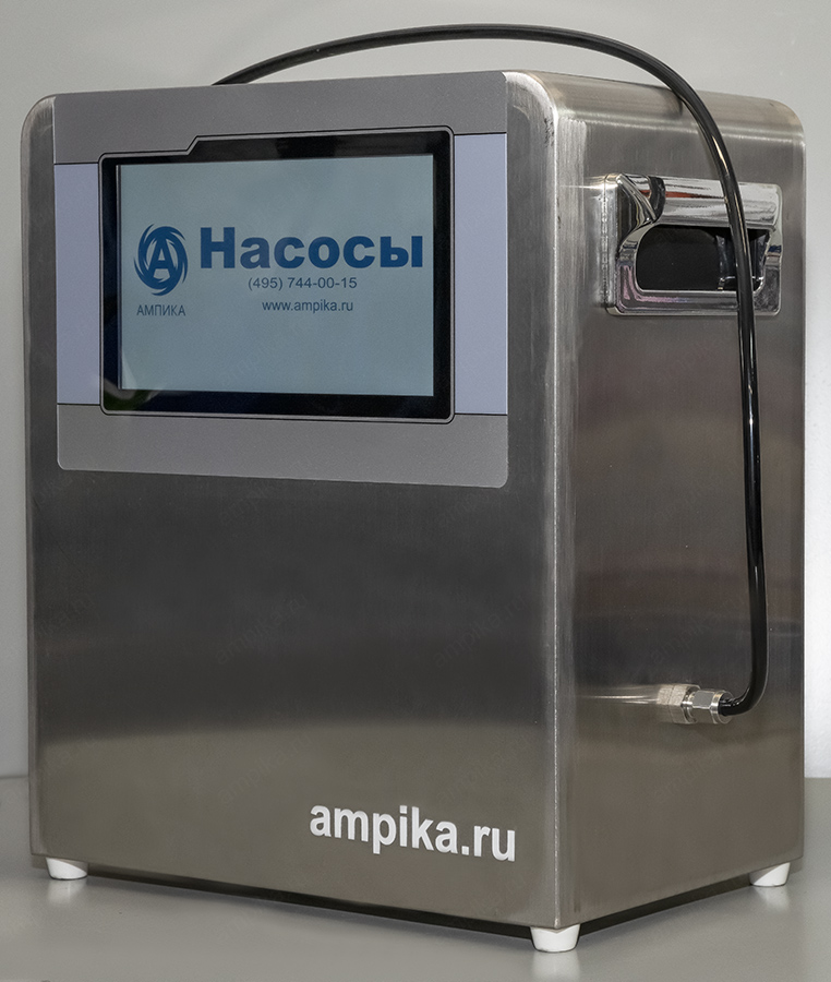 Дозатор химический электронный Ампика ДНШГ 30-300Небольшой химический дозатор с герметичным насосом ДНШГ 30-300 представляет собой комплексное устройство для дозирования химически активных жидкостей. Установка состоит из шестерённого герметичного насоса с магнитной муфтой малой производительности серии НШГ, расходомера, панели управления, сенсорного дисплея и электронной платы, которые установлены в компактном корпусе из нержавеющей стали. Всё управление осуществляется с панели сенсорного дисплея, но его можно и интегрировать в производственные линии с удалённым управлением от внешнего контроллера по сигналу 4-20 mA или по протоколу Modbus. Корпус оснащён ручками для переноски. Дозирование осуществляется по трубке 4х6, подключаемой к цанговым зажимам по бокам корпуса. Направление перекачки - слева направо, если смотреть на дисплей. Описание насоса: Насос шестерённый герметичный с магнитной муфтой НШГ предназначен для перекачивания различных жидкостей, не агрессивных к материалам насоса, без абразивных включений, с максимальной вязкостью до 500 мПа*с, при температуре от -40˚С до +70˚С. Материал корпуса насоса, вала - нержавеющая сталь AISI 316L, шестерни и втулка вала - PEEK, прокладки корпуса - PTFE, втулка магнитной муфты – PPS. Насос самовсасывающий, самовсасывание с глубины до 1 метра. Электродвигатель на 24В, бесщёточный, с возможностью постоянной работы. Установка ДНШГ позволяет выполнять следующие функции: - просто перекачивать жидкости (ручной режим), - дозировать жидкость по времени работы насоса, - дозировать жидкость по объёму. Есть возможность нагнетать жидкость под давлением до 4 атмосфер. Есть возможность дозирования с заданной производительностью: подача насоса регулируется в диапазоне от 1,8 до 18 литров в час. Есть возможность управления насосом по сигналу 4-20 mA. Есть возможность управления по шине RS-485, протокол Modbus. Питание установки – 220 вольт, адаптер питания внешний. Комплект поставки: - кабель питания со стандартной бытовой вилкой и преобразователем питания на 24 вольта, - 2 ответных разъёма для подключения внешних устройств (для RS-485 и 4-20 mA), - 2 ключа для открытия/закрытия корпуса, - чёрная трубка 4х6 (внутренний диаметр 4 мм, внешний - 6) длиной 1 метр, - сетчатый фильтр-игла на всасывание (размер ячейки - 45 микрон). В таблице характеристик дозатора указаны его вес и размеры в упаковочной коробке. Параметры самого дозировщика без упаковки: • длина: 260 мм, • ширина: 165 мм, • высота: 310 мм, • вес: 7,2 кг. |
