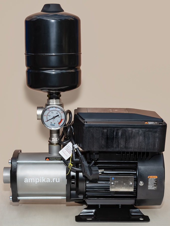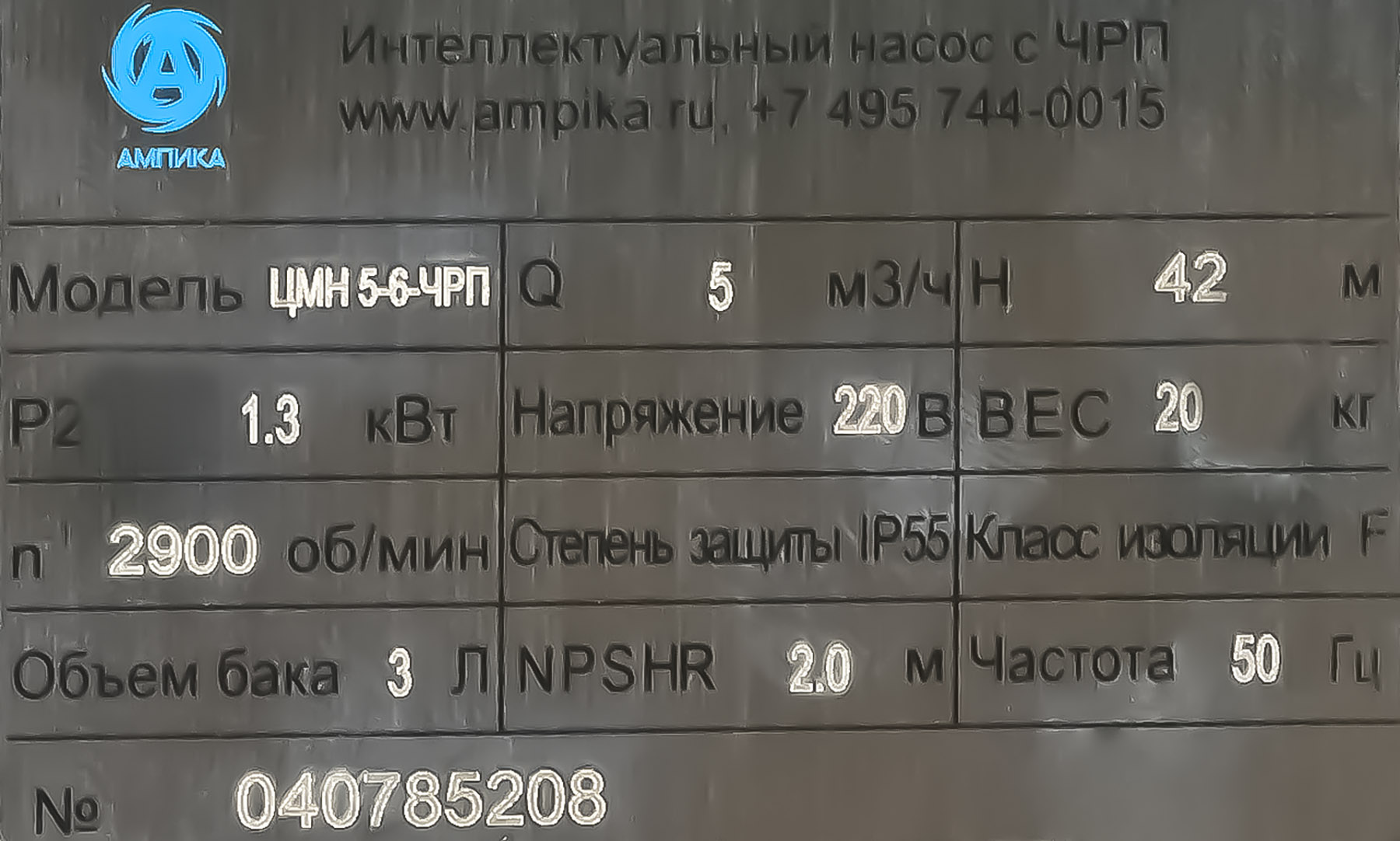 ![]() ![]() Станция повышения давления Ампика ЦМН 5-6-ЧРПМонофазная насосная станция ЦМН-5-6-ЧРП представляет из себя интеллектуальный самовсасывающий насос с асинхронным электродвигателем и преобразователем частоты нового поколения. Состоит из контроллера, электродвигателя, несамовсасывающего насоса из нержавеющей стали, датчика давления, соединительной арматуры и маленького (объёмом 3 л) гидроаккумулятора. Питается от бытовой розетки на 220 В. Эта насосная станция отличается стабильной работой, низким уровнем шума, компактной структурой, простотой монтажа (достаточно подключить трубопроводы и воткнуть вилку в розетку) и эксплуатации (нужно просто выставить нужное давление кнопками на панели управления). Этот насос автоматически, с помощью всторенного частотного преобразователя, регулирует частоту вращения вала, меняя свою производительность в соответствии с текущим потреблением воды, чтобы обеспечить постоянное давление в трубопроводной сети и сделать работу всей системы водоснабжения более эффективной и энергосберегающей. Такой современный, управляемый электроникой насос - идеальное решение для повышения давления в водопроводе и поддержания его на высоком (до 5,5 атмосфер) и стабильном уровне. Технические характеристики: • Тип насоса: центробежный моноблочный многоступенчатый несамовсасывающий; • Максимальная подача: 6 кубов в час; • Максимальный создаваемый насосом напор: 57 м; • Оптимальный режим работы насоса (рабочая точка): подача 4-5 м³/час с давлением 4,8-4,4 атм.; • Вход (с переднего торца насоса): стандартная трубная внутренняя резьба "дюйм с четвертью"; • Выход (из пятиходового разветвителя): стандартная трубная внутренняя резьба "один дюйм"; • Напряжение питания: однофазное 220 вольт, 50 Гц; • Электродвигатель: степень защиты IP55, класс изоляции F, режим работы S1, мощность 1300 ватт; • Высота места установки не должна превышать 1000 м над уровнем моря; • Температура окружающей среды: от -5°С до +40°С; • Температура воды: от +1°С до +68°С; • Максимальное давление в корпусе насоса: 10 атм.; • Влажность окружающей среды: 10–90 % относительной влажности (без конденсации); • Устройства отображения информации: механический манометр, светодиодный дисплей. Расшифровка обозначения марки ЦМН 5-6-ЧРП: «ЦМН» - центробежный многосекционный насос, «5» - производительность в рабочей точке, м³/час, «6» - максимальное давление насоса, в атмосферах, «ЧРП» - частотно-регулируемый привод. В таблице характеристик станции указаны её вес и размеры в упаковочной коробке. Массогабаритные параметры самой насосной станции: • длина: 450 мм, • ширина: 180 мм, • высота: 580 мм, • вес: 20 кг. Паспорт (инструкция по эксплуатации насосной станции) вложен в её упаковочную коробку.
