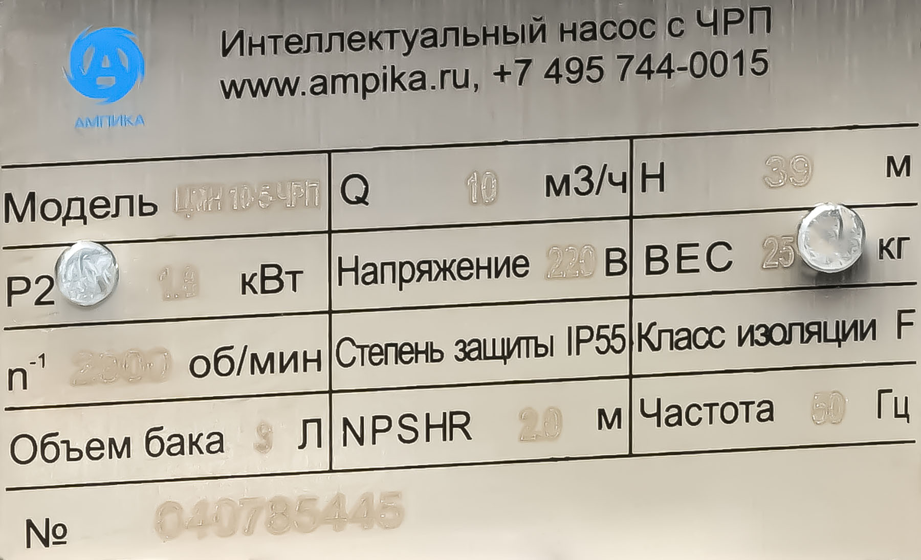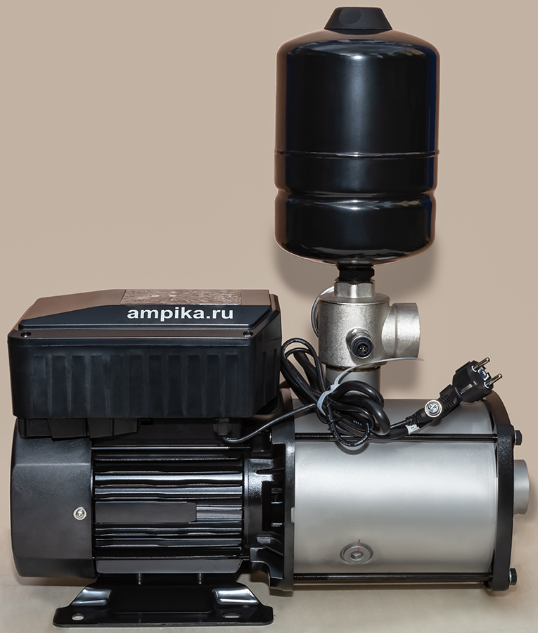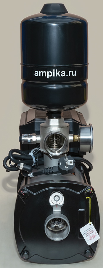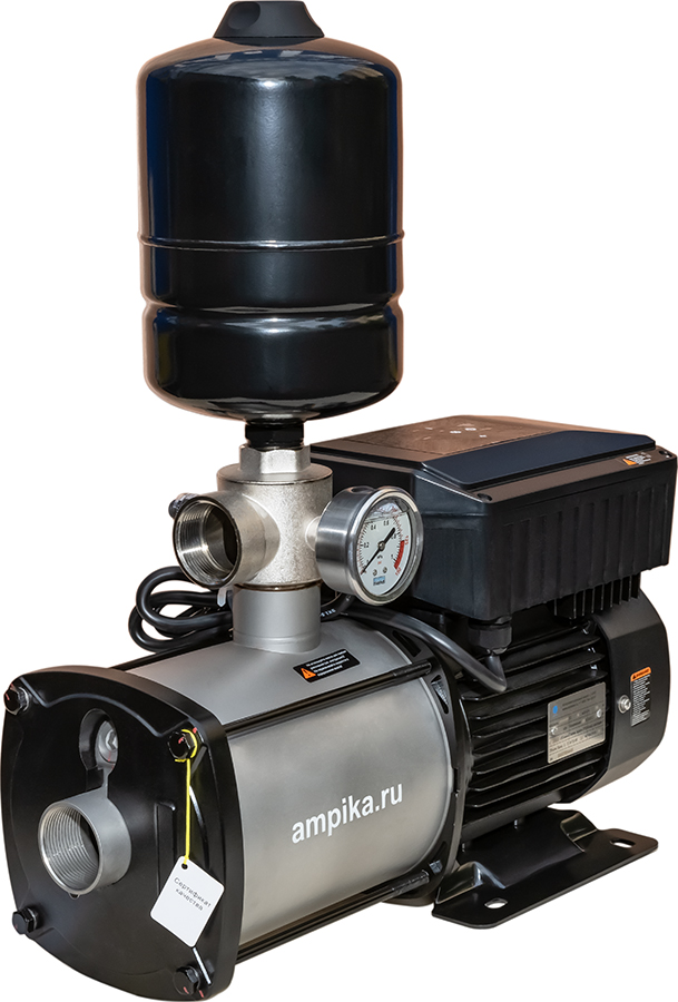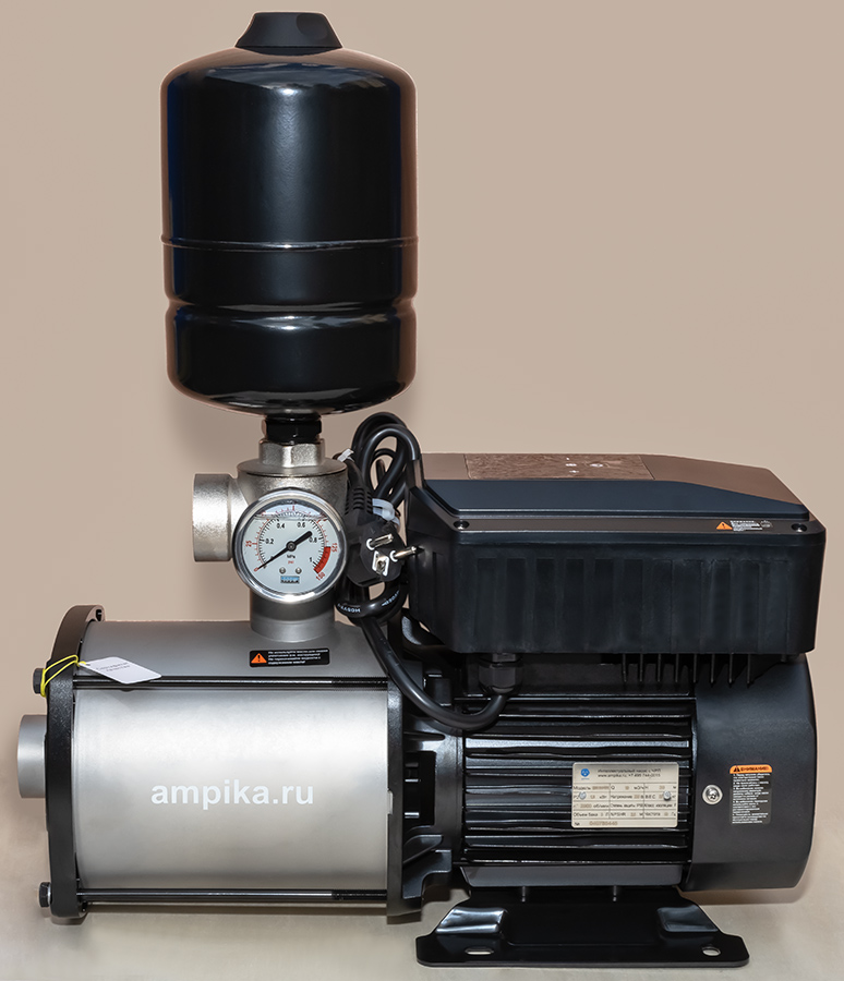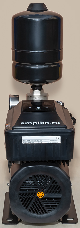 ![]() ![]() Мощная однофазная насосная станция Ампика ЦМН 10-5-ЧРПВысокопроизводительная однофазная насосная станция ЦМН-10-5-ЧРП представляет из себя современный интеллектуальный самовсасывающий насос с асинхронным электродвигателем и преобразователем частоты нового поколения. Состоит из контроллера, электродвигателя, несамовсасывающего насоса из нержавеющей стали, датчика давления, соединительной арматуры и маленького (объёмом 3 л) гидроаккумулятора для сглаживания гидроударов. Питается от бытовой розетки. Это самый мощный автоматический многоступенчатый насос на 220 вольт. Такая насосная станция отличается стабильной работой, низким уровнем шума, компактной структурой, простотой монтажа (достаточно подключить трубопроводы и вставить вилку в розетку) и последующей эксплуатации (нужно просто выставить нужное давление кнопками на панели управления). Этот насос автоматически, с помощью всторенного частотного преобразователя, регулирует частоту вращения вала, меняя свою производительность в соответствии с текущим потреблением воды, чтобы обеспечить постоянное давление в трубопроводной сети и сделать работу всей системы водоснабжения более эффективной и энергосберегающей. Такой современный, управляемый электроникой насос - идеальное решение для повышения давления в водопроводе и поддержания его на высоком (до 5,5 атмосфер) и стабильном уровне. Технические характеристики: • Тип насоса: центробежный моноблочный многоступенчатый несамовсасывающий; • Максимальная подача: 14 кубов в час; • Максимальный создаваемый насосом напор: 59 м; • Оптимальный режим работы насоса (рабочая точка): подача 10 м³/час с давлением 4,5 атм.; • Вход (с переднего торца насоса) и выход (из тройника): трубная внутренняя резьба "полтора дюйма"; • Встроенный в тройник (пятиходовой разветвитель) обратный клапан; • Напряжение питания: однофазное 220 В, 50 Гц; • Электродвигатель: степень защиты IP55, класс изоляции F, режим работы S1, мощность 1800 ватт; • Высота места установки не должна превышать 1000 м над уровнем моря; • Температура окружающей среды: от -5°С до +40°С; • Температура воды: от +1°С до +68°С; • Максимальное давление в корпусе насоса: 10 атм.; • Влажность окружающей среды: 10–90 % относительной влажности (без конденсации); • Устройства отображения информации: механический манометр, светодиодный дисплей. Расшифровка обозначения марки ЦМН 10-5-ЧРП: «ЦМН» - центробежный многосекционный насос, «10» - производительность в рабочей точке, м³/час, «5» - максимальное давление насоса, в атмосферах, «ЧРП» - частотно-регулируемый привод. В таблице характеристик станции указаны её вес и размеры в упаковочной коробке. Массогабаритные параметры самой насосной станции: • длина: 490 мм, • ширина: 180 мм, • высота: 570 мм, • вес: 25,5 кг. Паспорт (инструкция по эксплуатации насосной станции) вложен в её упаковочную коробку.