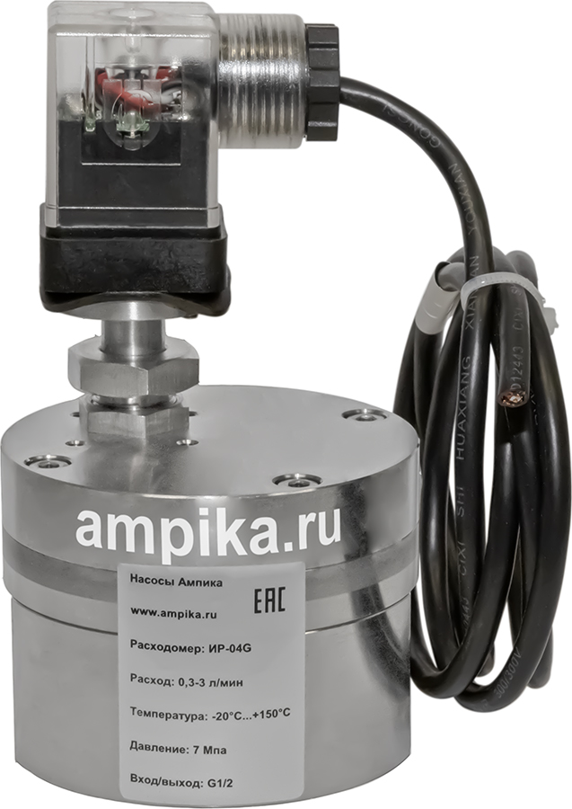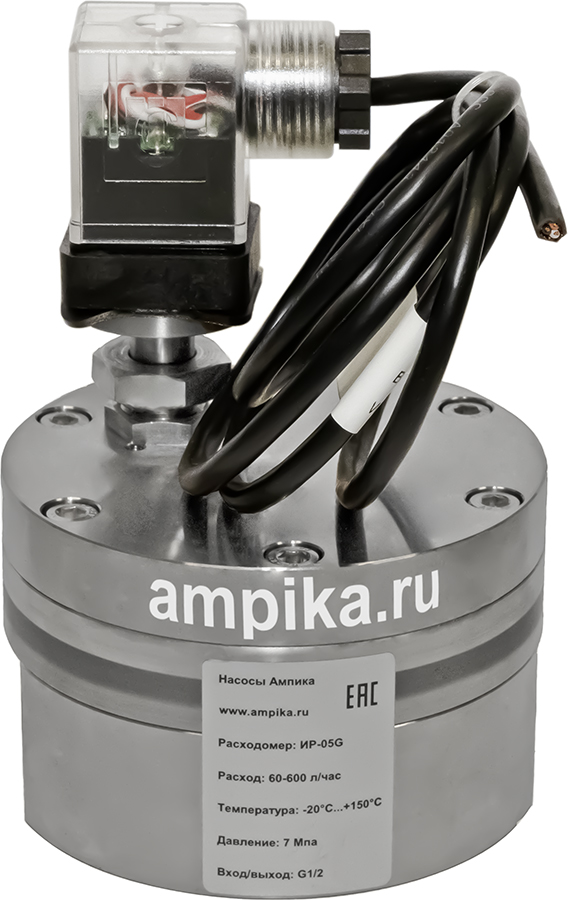 Импульсный расходомер малого потока Ампика ИР-02GМаленький импульсный расходомер из нержавеющей стали ИР-02G предназначен для точного измерения малого расхода (от 0,24 до 24 литров в час) и выдачи импульсов, количество которых пропорционально объёму перекачиваемой жидкости. Он может быть использован для таких жидкостей как: дизельное топливо, керосин, масла, смазки, парфюмерия, растворители, спирты, удобрения и других вязких жидкостей, по отношению к которым материалы, из которых изготовлен счётчик, химически устойчивы. Материалы конструкции: - корпус:DIN Nr.1.4404 (316L), - шестерни:DIN W.Nr.1.4462 (2205, X2CrNiMoN22-5-3), - шарикоподшипник: нержавеющая сталь, - прокладка корпуса:FKM. Технические характеристики: Принцип действия - шестерённый, с круглыми шестернями. Тип датчика – датчик Холла (питание - 24 вольта). Вязкость жидкости - от 1 до 10000 мПа*с. Температура жидкости - от -20˚С до +150˚С. Точность измерения зависит от вязкости жидкости: - для вязкости 1 мПа*с: +/-1%, - для вязкости 2…100 мПа*с: +/-0,5%, - для вязкости 100-10000 мПа*с: +/-0,1%. Минимальное давление, при котором работает счётчик, – 1 атм. Максимальное давление в корпусе – до 70 атм. Присоединение к трубопроводам - внутренняя трубная резьба "одна восьмая дюйма". ВНИМАНИЕ!!! Для нормального функционирования счётчика необходимо перед ним поставить фильтр с тонкостью фильтрации не менее 30 микрон. Отсутствие фильтра на входе может привести к выходу из строя рабочих органов расходомера. Неисправность такого рода не является гарантийным случаем! |