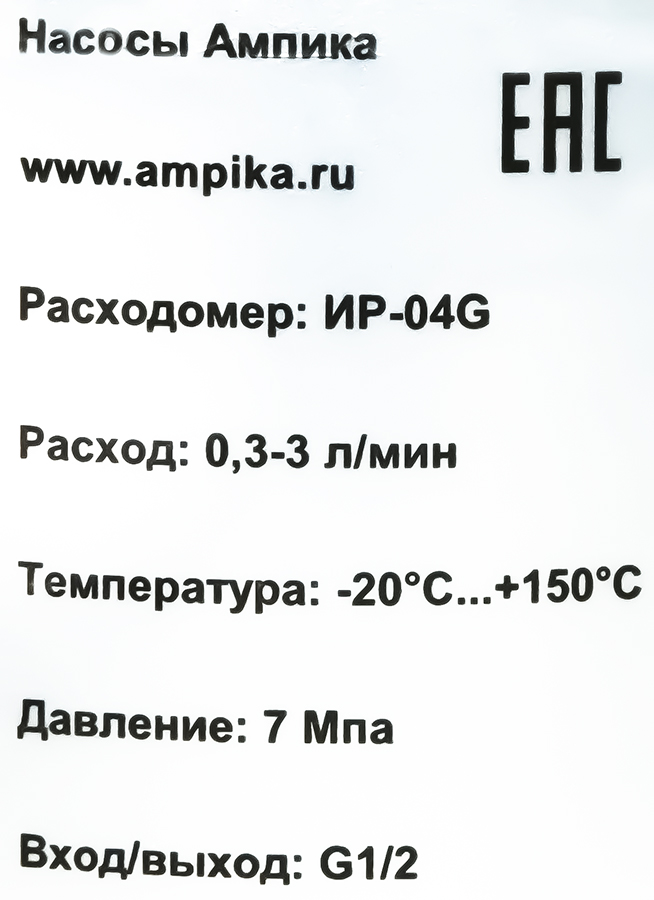 Импульсный расходомер Ампика ИР-04GНебольшой импульсный расходомер из нержавеющей стали ИР-04G предназначен для точного измерения малого потока (от 1,8 до 180 литров в час) и выдачи импульсов, количество которых пропорционально объёму перекачиваемой жидкости. Он может быть использован для таких жидкостей как: дизельное топливо, керосин, масла, смазки, парфюмерия, растворители, спирты, удобрения и других вязких жидкостей, по отношению к которым материалы, из которых изготовлен счётчик, химически устойчивы. Материалы конструкции: - корпус:DIN Nr.1.4404 (316L), - шестерни:DIN W.Nr.1.4462 (2205, X2CrNiMoN22-5-3), - шарикоподшипник: нержавеющая сталь, - прокладка корпуса:FKM. Технические характеристики: Принцип действия - шестерённый, с круглыми шестернями. Тип датчика – датчик Холла (питание - 24 вольта). Вязкость жидкости - от 1 до 10000 мПа*с. Температура жидкости - от -20˚С до +150˚С. Точность измерения зависит от вязкости жидкости: - для вязкости 1 мПа*с: +/-1%, - для вязкости 2…100 мПа*с: +/-0,5%, - для вязкости 100-10000 мПа*с: +/-0,1%. Минимальное давление, при котором работает счётчик, – 1 атм. Максимальное давление в корпусе – до 70 атм. Присоединение к трубопроводам - внутренняя трубная резьба "одна вторая дюйма". ВНИМАНИЕ!!! Для нормального функционирования счётчика необходимо перед ним поставить фильтр с тонкостью фильтрации не менее 30 микрон. Отсутствие фильтра на входе может привести к выходу из строя рабочих органов расходомера. Неисправность такого рода не является гарантийным случаем! |