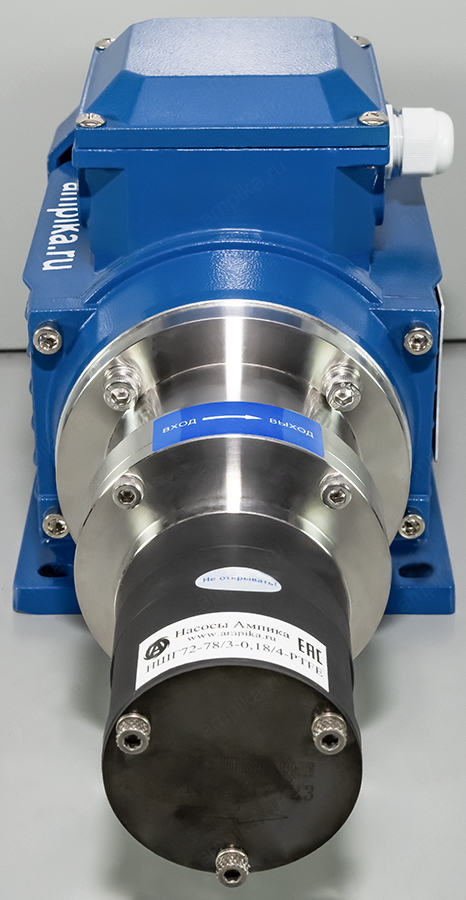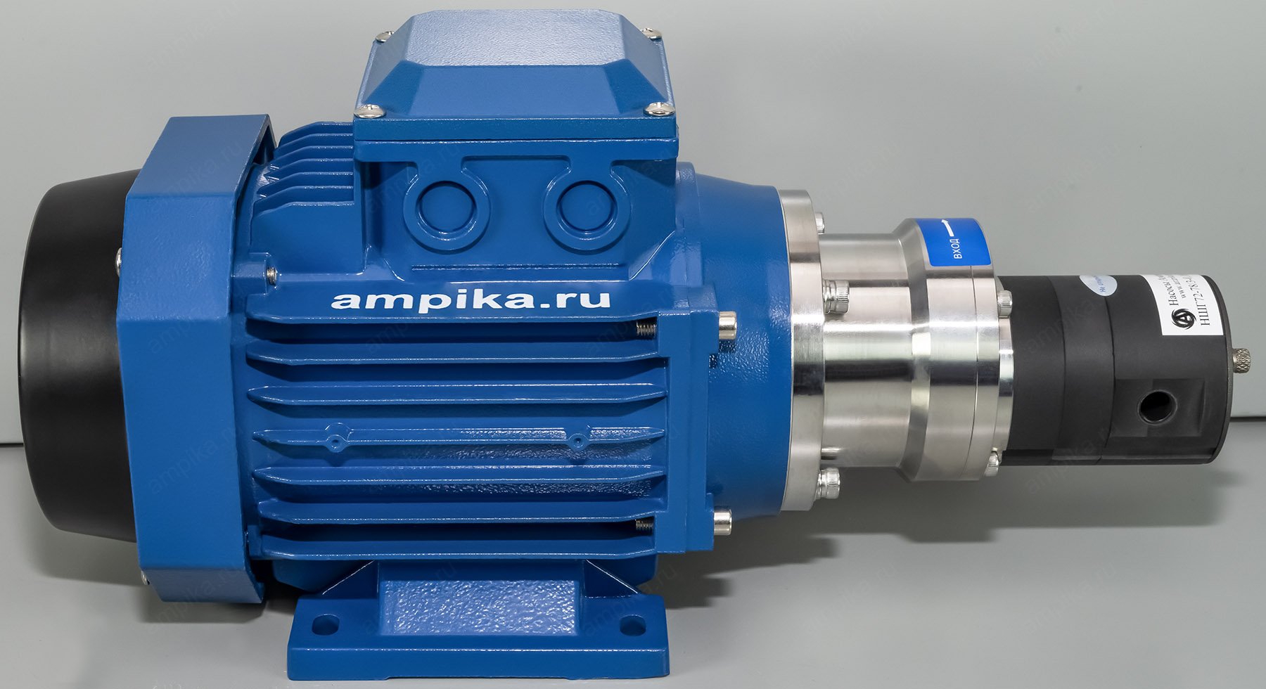 Химический насос Ампика НШГ72-78/3-0,18/4-PTFEМаленький химический шестерённый насос НШГ-72-78/3-0,18/4-PTFE не имеет уплотнения вала, то есть является герметичным, шестерни приводятся магнитной муфтой. Питание: промышленная трёхфазная электросеть на 380 вольт. Насос имеет объёмный принцип работы, что позволяет его использовать в качестве дозатора при условии оснащения частотным преобразователем тока и дополнительным вентилятором охлаждения электродвигателя. Подача составляет 0,9 миллилитра жидкости за один оборот двигателя. Замедление скорости вращения мотора может сделать его насосом очень маленькой производительности, что необходимо при регулируемой подаче химических жидкостей в различных производственных процессах. Он предназначен для перекачивания различных жидких химических веществ, не агрессивных к материалам насоса, как например: кислоты (серная, азотная, соляная, фосфорная), щёлочи, растворители, катализатор для фурана (смесь органических и минеральных кислот). При установке взрывозащищённого электродвигателя, насосом возможно перекачивать спирты, растворители и подобные легковоспламеняющиеся жидкости (ЛВЖ). Перекачиваемое вещество не должно содержать абразивных включений. ВНИМАНИЕ!!! При выборе насоса консультируйтесь с продавцом о возможности перекачивания каждого конкретного вещества! Максимальная вязкость перекачиваемой жидкости: 1500 мПа*с. ВНИМАНИЕ!!! При перекачке жидкости с максимальной вязкостью, следует учитывать сопротивление трубопроводов на входе и выходе, а также обороты электродвигателя. Диапазон температуры продукта: от -40˚С до +50˚С. ВНИМАНИЕ!!! Не допускается кристаллизация/полимеризация или застывание перекачиваемой жидкости внутри проточной части. Это может привести к выходу насоса из строя без возможности восстановления. Принцип действия насоса: шестерённый с наружным зацеплением. Материал корпуса насоса - PTFE, вал - из керамики, шестерни - высокопрочный модифицированный PTFE, прокладки корпуса - из FFKM. Конструкция корпуса герметичная, что полностью предотвращает утечки из проточной части. Максимально допустимое давление в корпусе насоса: 6 атм. Максимальная производительность насоса: 4 кубометра в час. Максимальное создаваемое давление: 6 атмосфер. Присоединительные отверстия: внутренняя трубная резьба "одна восьмая дюйма". Расшифровка условного обозначения насоса НШГ72-78/3-0,18/4-PTFE: - «НШГ» – насос шестеренный герметичный, - «72» – диаметр насосной части, - «78» - максимальная производительность насоса в литрах в час, - «3» - давление насоса в средней рабочей точке в атмосферах, - «0,18» - мощность электродвигателя в киловаттах, - «4» - число полюсов электродвигателя (задаёт скорость вращения вала 1450 оборотов в минуту), - «PTFE» - материал корпуса и шестерён. В таблице характеристик насоса указаны его вес и размеры в упаковочной коробке. Параметры голого насоса: • длина: 315 мм, • ширина: 125 мм, • высота: 150 мм, • вес: 5,5 кг. Паспорт (инструкция по эксплуатации насоса) вложен в его упаковочную коробку. Другие модели этого типа