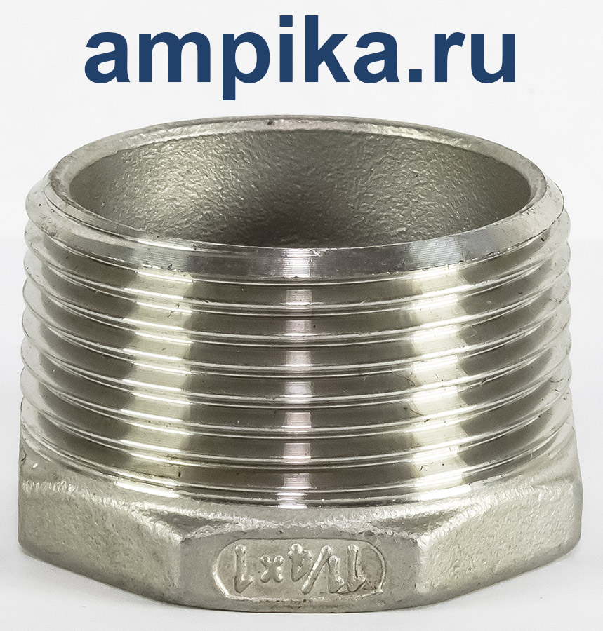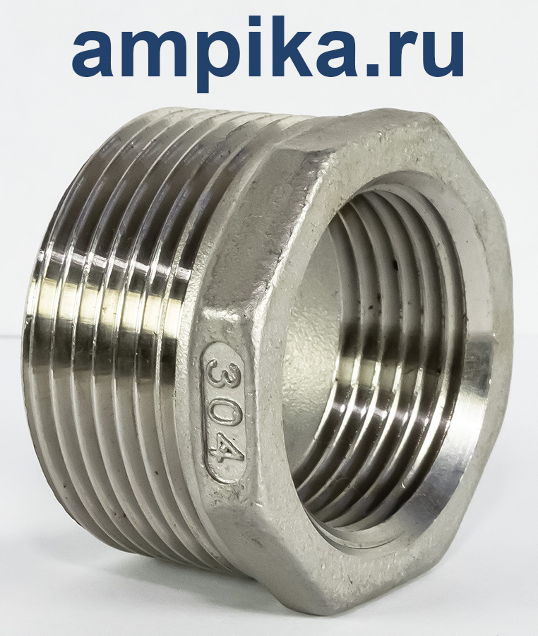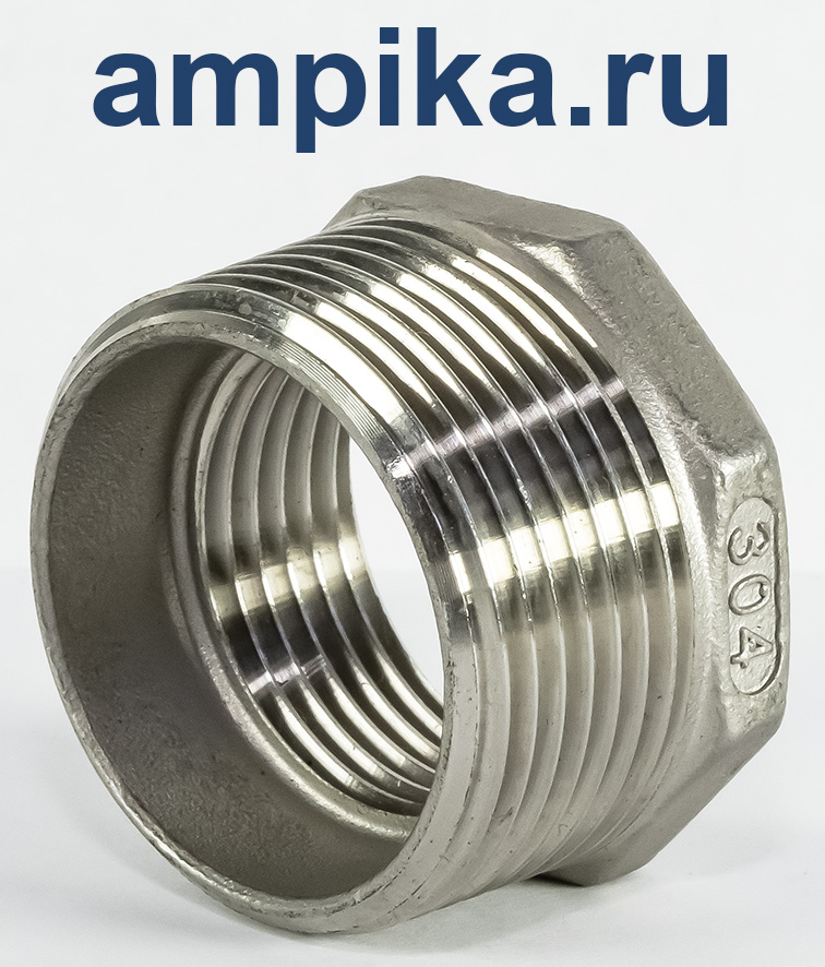 Или, говоря иначе, футорка - это уменьшитель диаметра внутренней резьбы. Как правило, они используются именно для этого. С точки зрения успешной работы насосов, нежелательно сильно уменьшать диаметры патрубков, особенно всасывающего, но, если скорость потока невелика, а жидкость не сильно вязкая, то обычно это допустимо. Футорки сделаны по умолчанию - из латуни, нержавеющие - из нержавеющей стали. Резьба - стандартная трубная дюймовая (BSP). В обозначении сначала указывается размер наружной резьбы (большей), затем внутренней (меньшей). Дополнение к описанию: На гранях отлиты символы: типоразмер футорки - "дюйм с четвертью на дюйм" и марка нержавеющей стали по стандарту AISI - "304". Другие модели этого типа |
