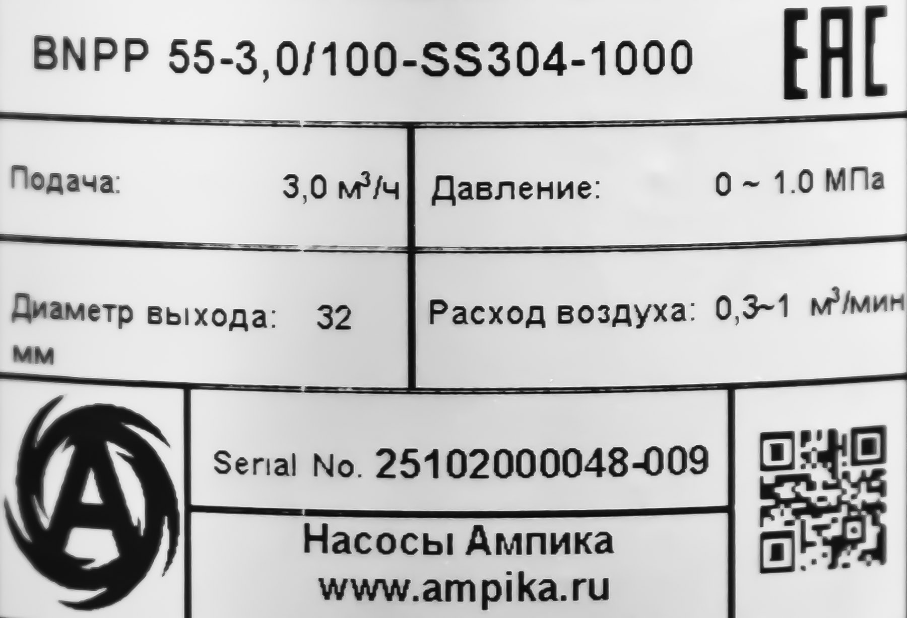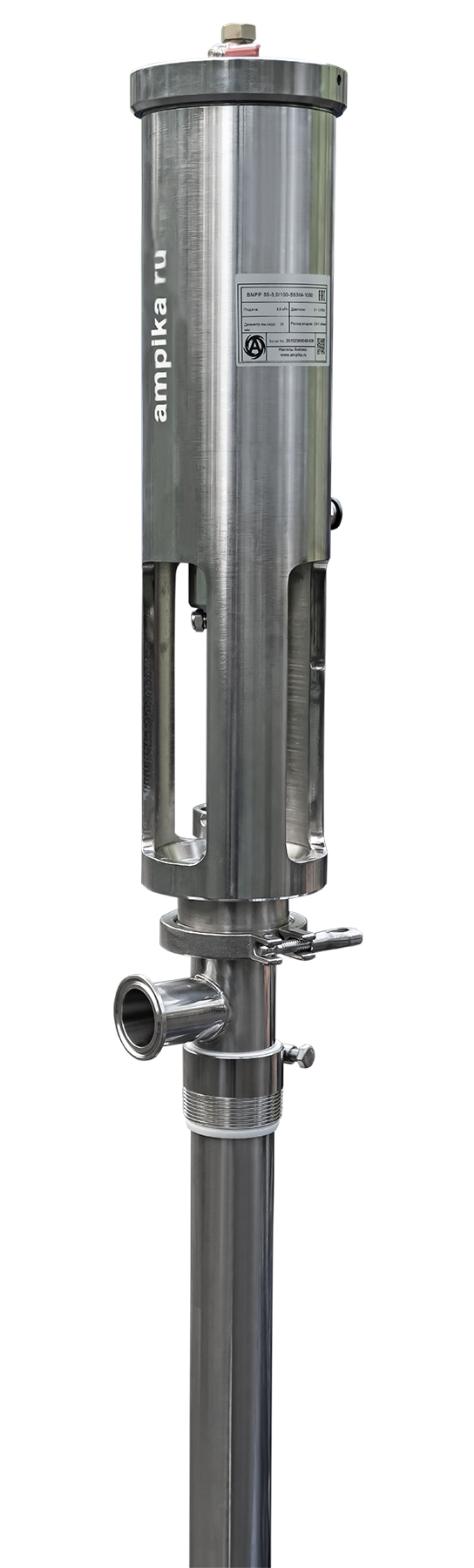 Насос для бочек поршневой пневматический, из нержавеющей стали, Ампика BNPP 55-3,0/100-SS304-1000Пневматический бочковой насос из нержавеющей стали BNPP-55-3,0/100-SS304-1000 предназначен для выкачивания различных химически активных жидкостей из бочек. Примерами перекачиваемых жидкостей могут служить: - пищевые жидкости: масла, патока, мёд, сметана, йогурт, сузьма и т.п., - технический жидкости: ГСМ, промышленные масла, полиолы, изоционаты, смолы, клеи, лаки, краски и подобные жидкости. Следует помнить, что при перекачке вязких жидкостей могут сильно уменьшиться подача и напор насоса. ВНИМАНИЕ! При выборе насоса ОБЯЗАТЕЛЬНО проконсультируйтесь с нашими специалистами! Расшифровка обозначения BNPP 55-3,0/100-SS304-1000: «BNPP» – бочковой насос поршневой пневматический, «55» - диаметр погружной части в мм (диаметр 55 мм подходит для большинства бочек с несъёмной крышкой), «3,0» - подача насоса по воде в м³/час, «100» - максимальный напор насоса в метрах водяного столба, «SS304» - материал проточной части насоса - нержавеющая сталь AISI304, «1000» - длина погружной части в миллиметрах. Технические характеристики: • Материал прокладок и уплотнения вала – кислотостойкая PTFE. • Максимальная вязкость перекачиваемой жидкости – 120 000 мПа*с. • Максимальный размер частиц в жидкости - Ø 3 мм. • Подача насоса - регулируемая от 0 до 3 м³/час. • Напор насоса пропорционален давлению приводящего воздуха в диапазоне 0-100 м (0-1 МПа). • Максимальное давление питающего воздуха - 10 атм. • Расход воздуха - 0,3-1,0 м³/мин. • Вход для подсоединения воздушной магистрали - резьба PT3/8″. Коэффициент усиления давления 2:1 Диаметр цилиндра, мм 100 • Диаметр выходного штуцера - 32 мм. В таблице характеристик насоса указаны его вес и размеры в упаковочной коробке (прочный ящик из толстой фанеры). Параметры голого насоса (без упаковки): • длина: 1570 мм, • ширина: 140 мм, • высота: 125 мм, • вес: 11,5 кг. Паспорт (инструкция по эксплуатации насоса) вложен в его упаковочную коробку. |