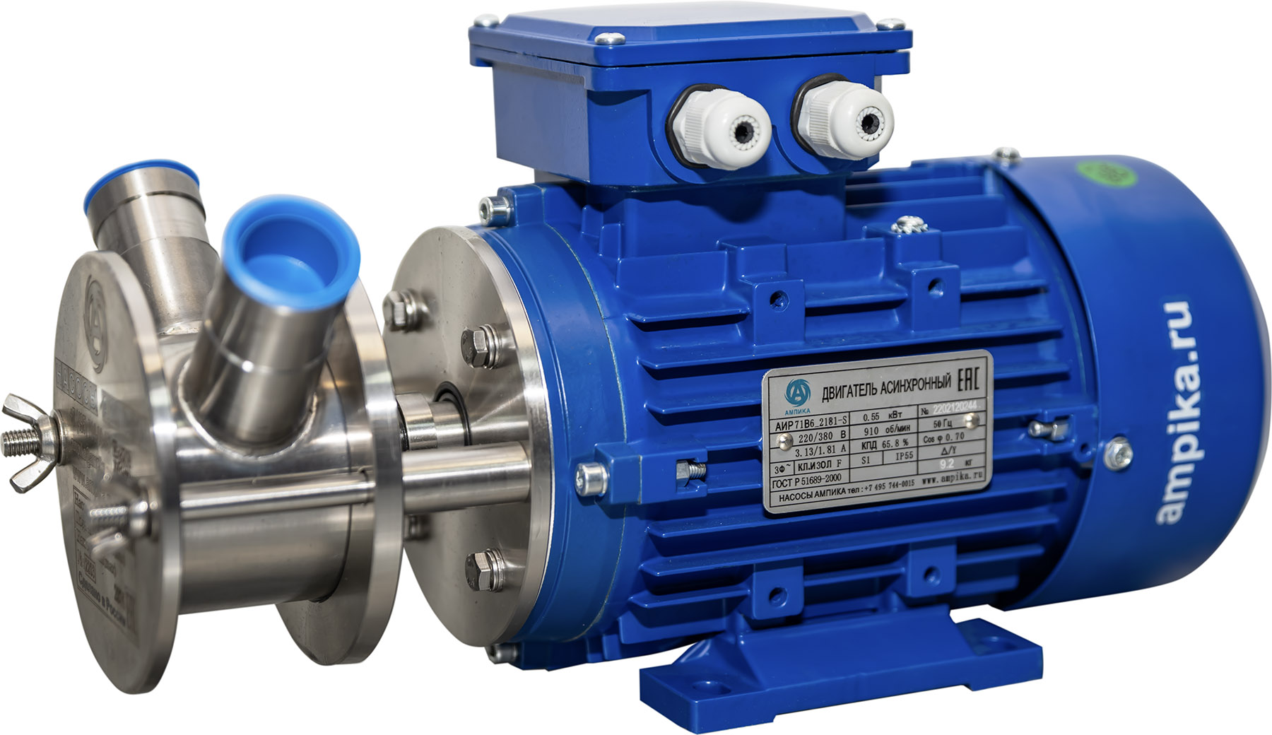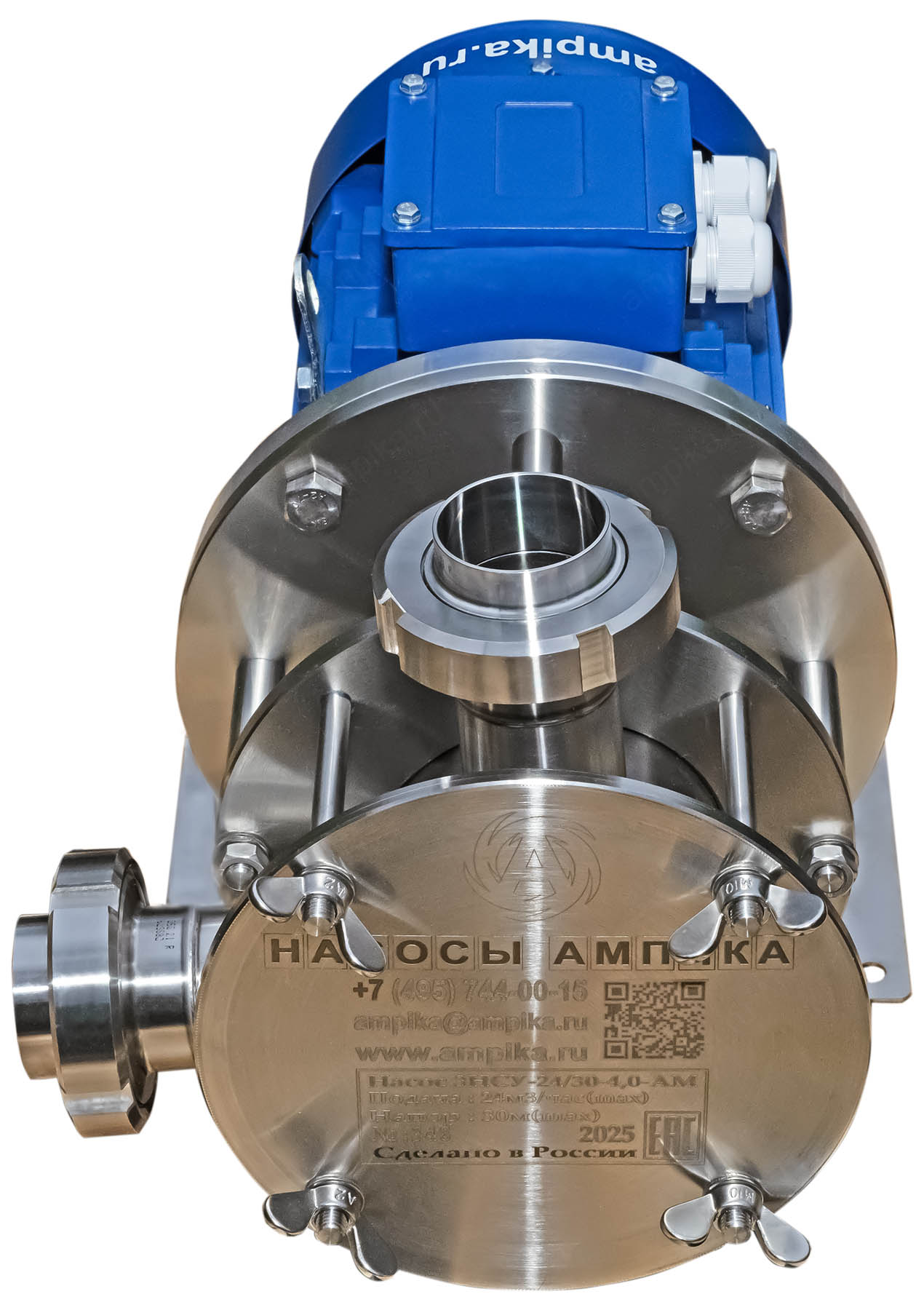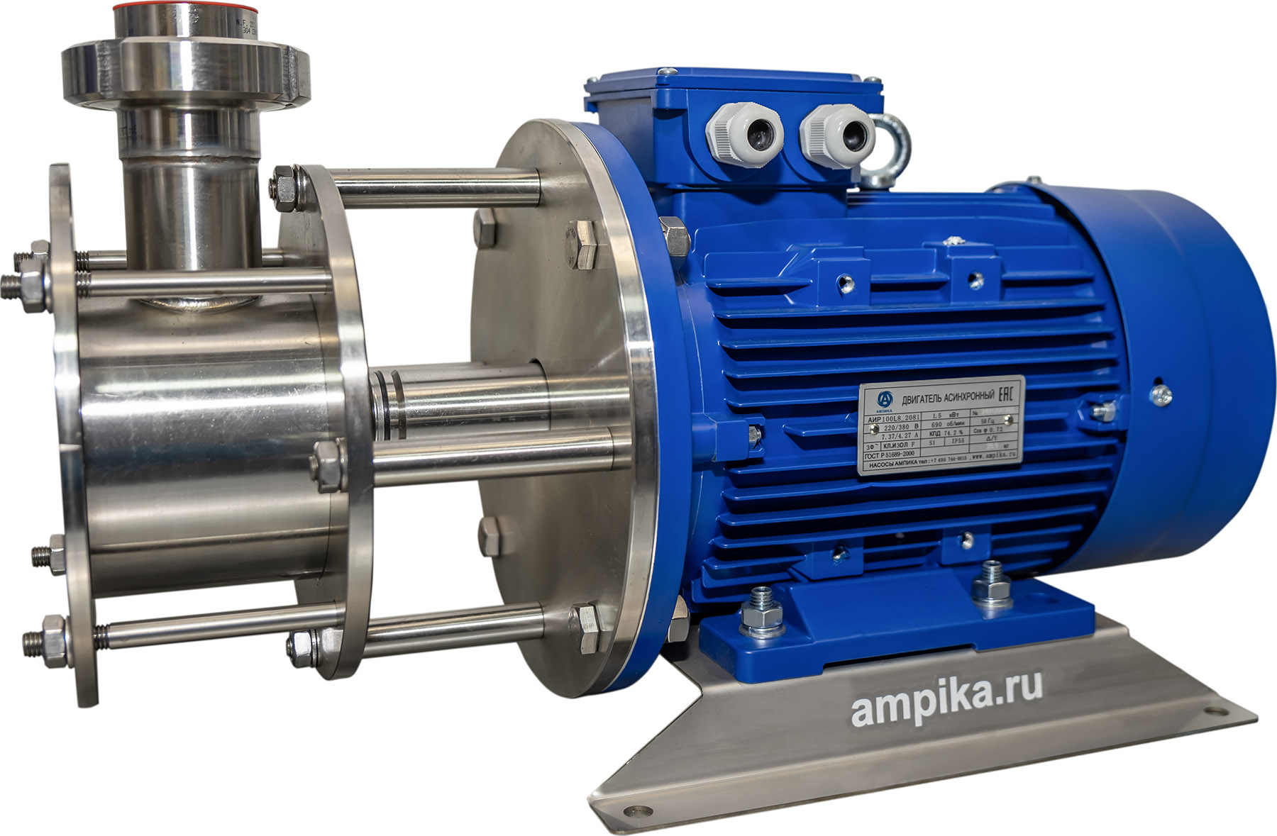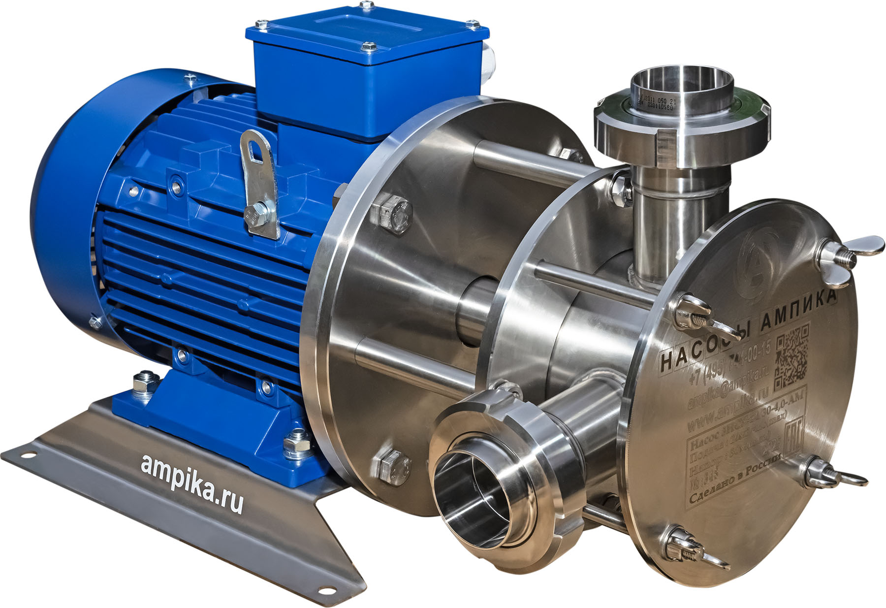 Импеллерный насос Ампика 3НСУ-24/30-4,0-АМ с э/д 4 кВт (крыльчатка и уплотнение EPDM)Мощный промышленный пищевой насос 3НСУ-24/30 с щёлочестойкими резиновыми деталями. С 2025 года все наши насосы НСУ идут с барашками крепления передней крышки для быстрой ручной разборки-сборки. Насос с мягким ротором 3НСУ-24-30 оснащён общепромышленным мощным трёхфазным асинхронным электродвигателем, что позволяет качать довольно вязкие продукты, в том числе и горячие. Насос предназначен для перекачки пищевых продуктов, таких как: сметана, блинное тесто, майонез, высоковязкий джем с ягодой и кусочками фруктов, высоковязкие сиропы, в том числе шоколадные, майонезные соусы, кетчуп, сок, морс, молоко, соевый соус, льезол, рыбий жир, растопленный животный жир, растительное масло, морские водоросли (чука), сырное зерно, закваска, квас, пивной затор, пивное сусло, пивные дрожжи, вино, мезга, виноматериалы, жидкий мёд, и подобных по вязкости нейтральных непищевых жидкостей: пенообразователь, глицерин, крахмальный клейстер, жидкое мыло, вазелиновое масло, крем, бальзам, органические удобрения. Температура жидкостей - до +90ºC. Возможно перекачивание жидкостей с частицами до 7 мм. Насос самовсасывающий, высота самовсасывания - до 4 метров. Максимальное создаваемое давление - 3 атм. Проточная часть выполнена из нержавейки 12Х18Н10Т. Уплотнение вала - одинарное торцевое, материалы подбираются под перекачиваемую жидкость. Этот насос является аналогом ещё совсем недавно популярных у нас насосов FIP50 шведской компании Jonson Pumps, но при этом имеет гораздо более приятную цену вследствие импортозамещения. Пример расшифровки маркировки насоса: 3НСУ-24/30-4,0-АМ - 3 - типоразмер крыльчатки увеличен (FIP50, диаметр 118 мм, высота 89 мм), - НСУ - насос самовсасывающий универсальный, - 24 - максимальная производительность в кубометрах в час (по воде, при свободном изливе), - 30 - максимальный напор в метрах водяного столба (по воде), - 4,0 - мощность трёхфазного электродвигателя, кВт, - АМ - производитель Ампика®. Стандартное исполнение корпуса (вход-выход): молочные муфты Ду50 мм. Возможно изготовление со штуцерами под шланг внутренним диаметром 50 мм. Большой промышленный насос с мягким ротором 3НСУ-24/30-4,0-АМ - это спецверсия повышенной мощности для работы с частотным регулятором. Установка более мощного двигателя позволяет запускать насос на низких оборотах, т.к. на низкой частоте у стандартного электродвигателя не хватает пускового момента. Можно работать без дополнительного внешнего вентилятора на частотах до 20 Гц. При снижении частоты ниже 20Гц, требуется установка дополнительного вентилятора принудительного охлаждения. Мы можем укомплектовать насос таким вентилятором, если он необходим. Другие модели этого типа |