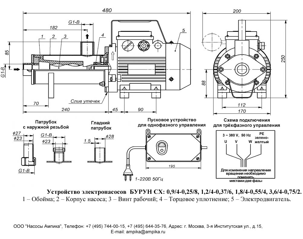 Винтовой насос Ливгидромаш Бурун СХ 1,8/4-0,55/4-А (химстойкий, 380В)