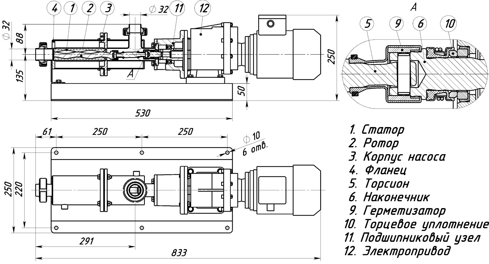 ОВН-2-0,1/6-180-Р (с рубашкой обогрева)ВНИМАНИЕ! С указанной максимальной вязкостью могут работать не все насосы. Чем выше вязкость перекачиваемого продукта, тем меньшие обороты винта должен иметь насосный агрегат. При заказе уточняйте у менеджеров. Вход/выход - молочная муфта со штуцером под сварку. Возможно изготовление с фланцами или с клампами. Возможен вариант насосов с приёмным бункером или прямоугольной горловиной. Расшифровка условного обозначения насоса на примере ОВН-4-0,8/6-302(Ш)-(2ТБ)-(Ex)-(Р)-(О): - ОВН – одновинтовой насос; - 4 – производительность героторной пары на 100 оборотов винта в литрах; - 0,8 – производительность насоса в м³/час; - 6 – давление нагнетания, кгс/см²; - 302 – частота вращения винта, мин⁻¹; - Ш – шнековый питатель (опция); - СН – уплотнение вала - сальниковая набивка (опция); - 2Т – двойное торцевое уплотнение с промывкой из системы водопровода (опция); - 2ТБ – двойное торцевое с бачком для затворной жидкости (опция); - Ex – взрывозащищенный электродвигатель (опция); - Р – рубашка жидкостного обогрева (опция); - О – с дополнительным вентилятором принудительного охлаждения (опция). Другие модели этого типа
